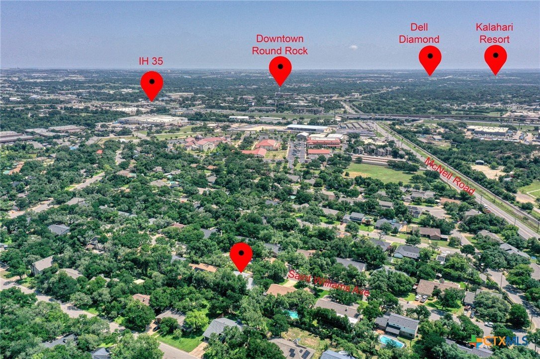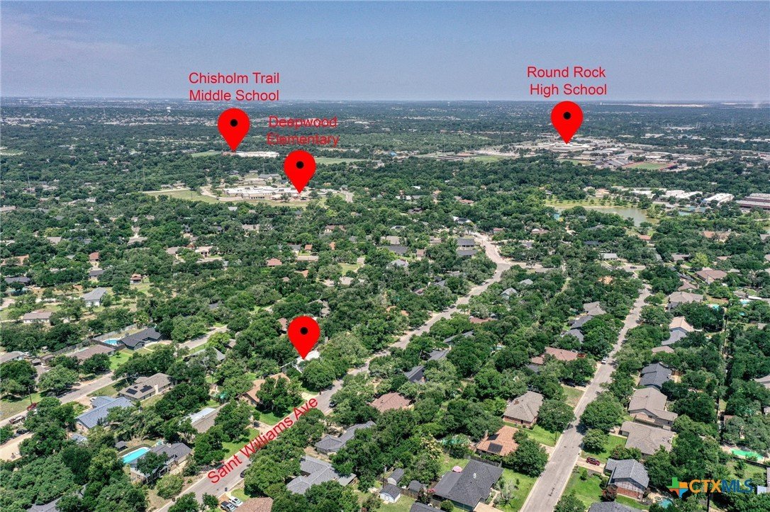 Nestled in the highly sought-after Round Rock West subdivision, this spacious 5-bedroom, 3-bathroom home offers limitless potential. Situated in an excellent location with access to highly rated schools, this home is perfect for families seeking both convenience and room to grow. With three bedrooms located downstairs and two upstairs, the floor plan offers versatile living options. The upstairs bedrooms, featuring cathedral ceilings, could easily serve as bonus rooms, and one even boasts its own private balcony. The expansive living room is a true standout, with beamed ceilings and a striking stone wall surrounding a cozy wood-burning fireplace, creating a welcoming focal point for the space. Built in 1976, this home has solid bones and is ready for a transformation. Whether you’re looking to preserve its timeless charm or modernize it to fit your style, this property offers a blank canvas for your vision. Make it your own and enjoy all the benefits of a well-established neighborhood with easy access to major routes, shopping, and dining.