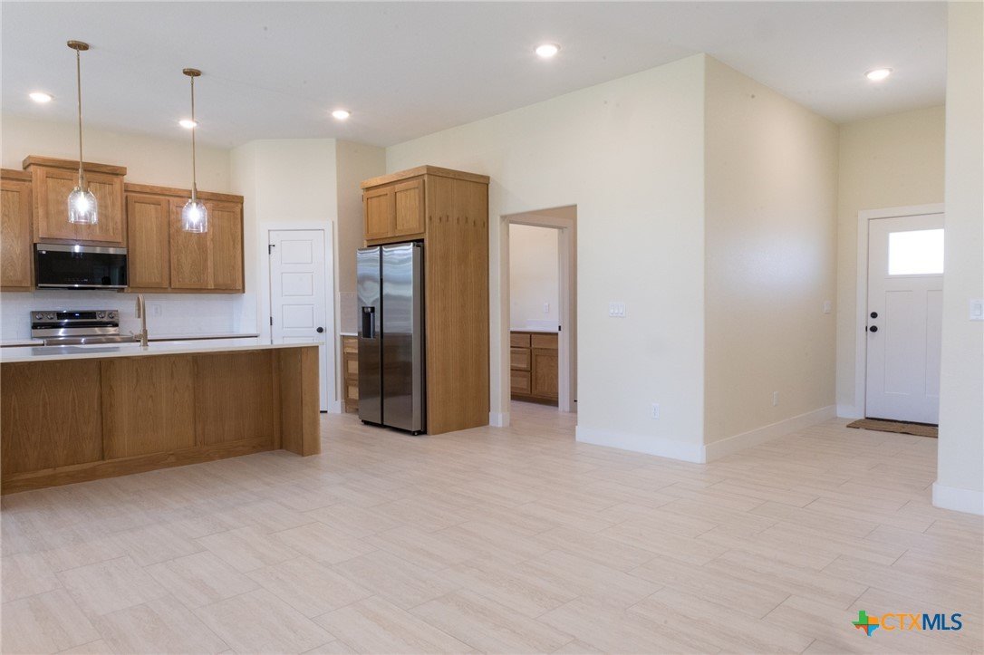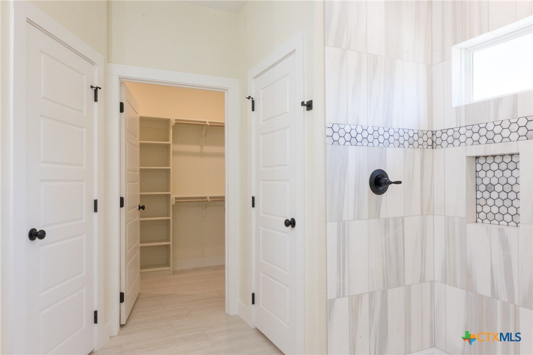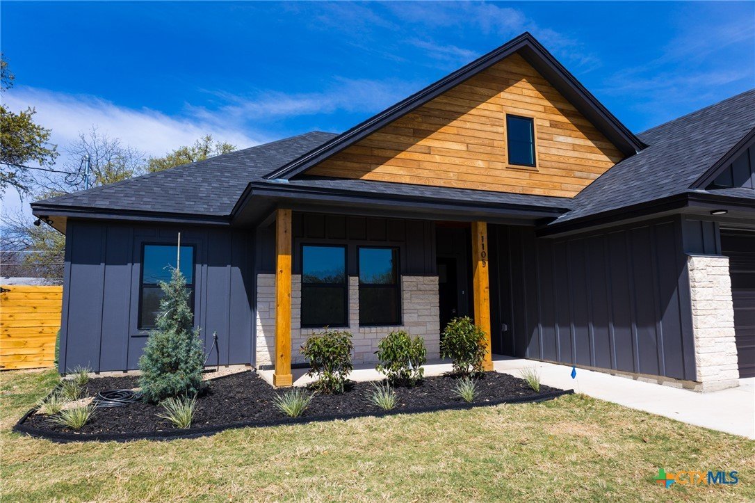 You are going to love this New Construction home at first sight - and it only gets better once you go inside! Contemporary 3 bed, 2 bath, 2 car garage. Lots of extras! Open floor plan with living, kitchen and dining. High ceilings, big windows with lots of natural light. LED lighting. Ceramic tile throughout. Dolomite Marble shower surrounds. Quartz countertops throughout house with undermount sinks. You will love the closets. Mixture of Black and Champaigne hardware, fixtures, and lighting. Custom white oak cabinets with "soft close" drawers and doors. Kitchen features upgraded Stainless Steel Samsung appliances - Smooth Top Range (including Convection and Air Fry mode), Dishwasher, large glass front OTR Microwave, AND side-by-side Fridge with Ice & Water in door. Large laundry room with cabinets and nice size countertop. Large "mud room" off garage entry with storage. Garage door opener including exterior combo keypad. Front and rear porches. You will also love the extra-large lot complete with mature live oak trees and finished with sod and irrigation system. Rear yard fenced; gate on each side. Call and let's go see this unique home before it's gone! Owner / Agent.