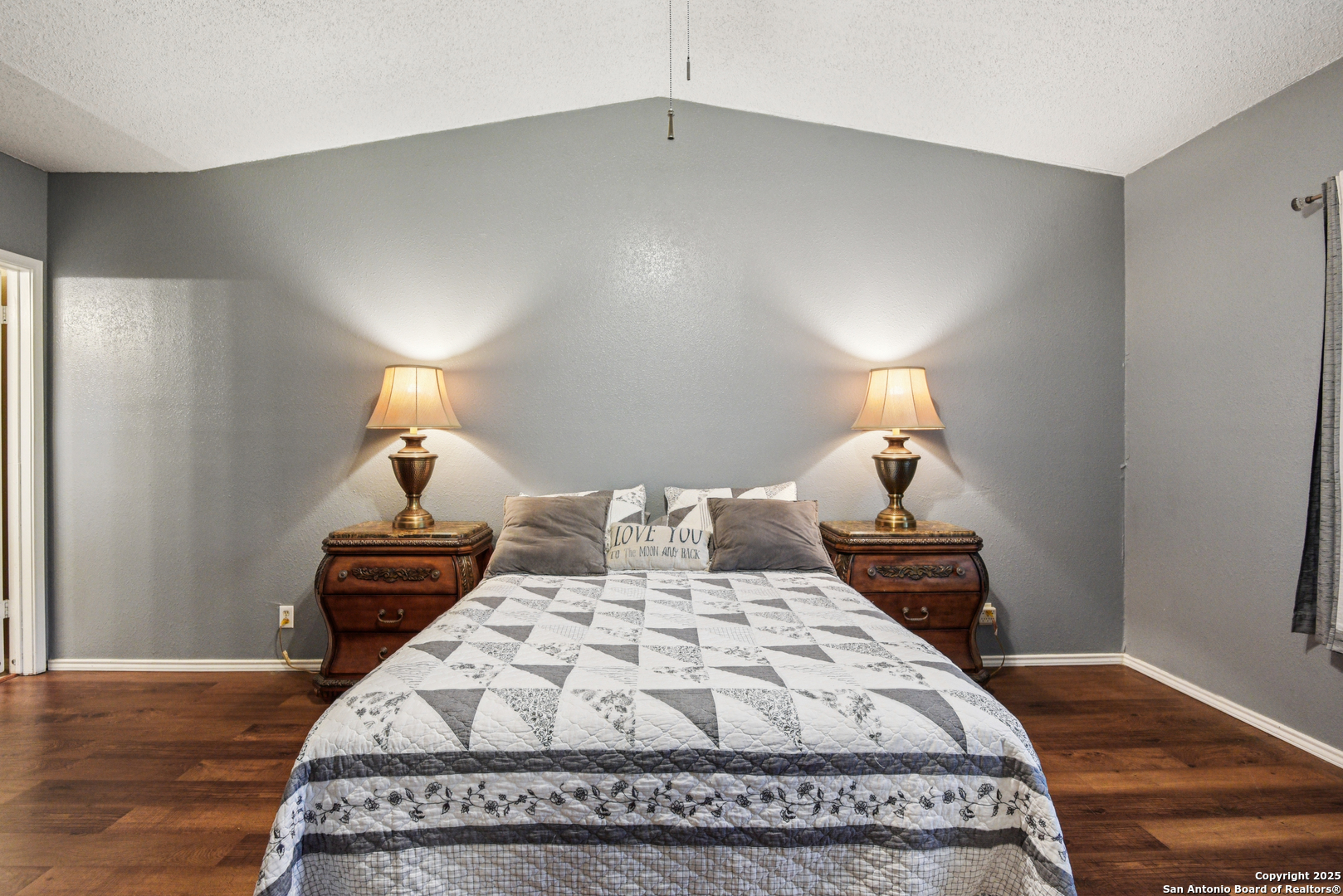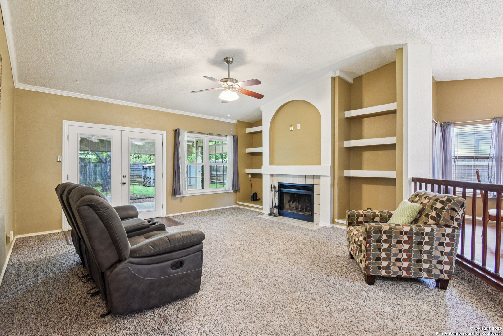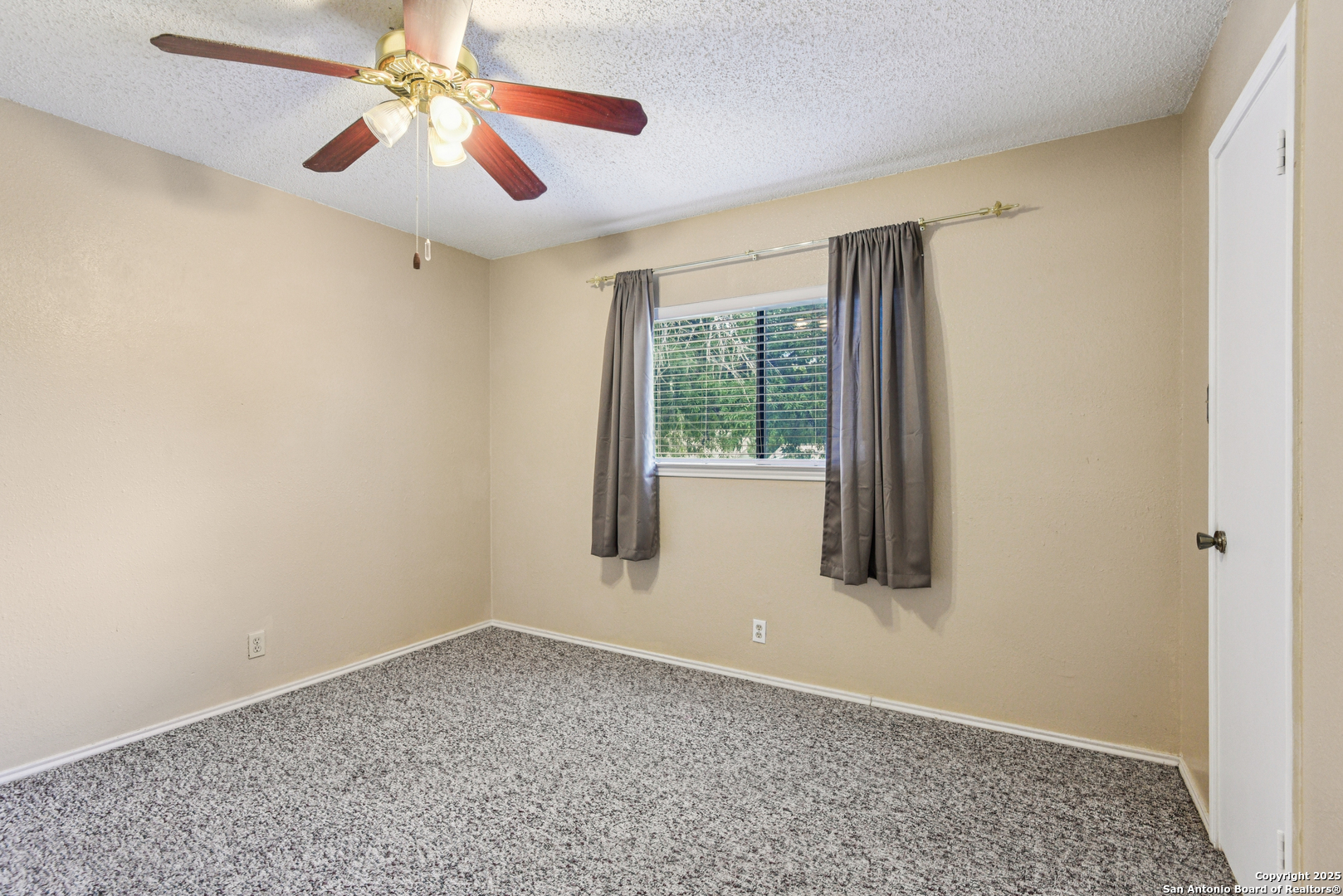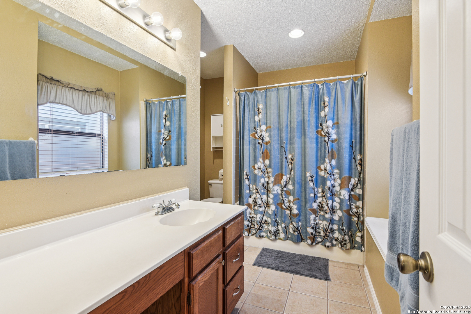 Welcome to your dream home in the highly sought-after Parkwood neighborhood! This stunning 3-bedroom, 2.5-bathroom residence is nestled amidst beautiful mature oak trees and meticulously maintained homes, offering an idyllic setting. Step inside and be greeted by brand new vinyl plank flooring, installed in 2025, that flows seamlessly through the dining room and into the spacious kitchen. The kitchen boasts ample counter space and abundant cabinetry, perfect for all your culinary needs. Relax and entertain in the generously sized living room, featuring impressive built-ins and a cozy wood-burning fireplace. The private primary bedroom, conveniently located on the first floor, is a true retreat with vaulted ceilings and a refreshing ceiling fan. Its ensuite bathroom offers a bath and shower combo, a single vanity with extra counter space, and a large walk-in closet. Upstairs, you'll find two spacious secondary bedrooms, each with closets and ceiling fans, along with a convenient secondary bathroom. A half bath downstairs provides added convenience for guests. The exterior is equally inviting, showcasing a gorgeous backyard with mature trees and an expansive covered patio, ideal for outdoor living and entertaining. Located close to shopping, grocery stores and restaurants! Easy Commute to Lackland Air Force Base, USAA, Medical Center, I-10, and Loop 1604. Discover the perfect blend of comfort and charm in this beautiful Parkwood home!