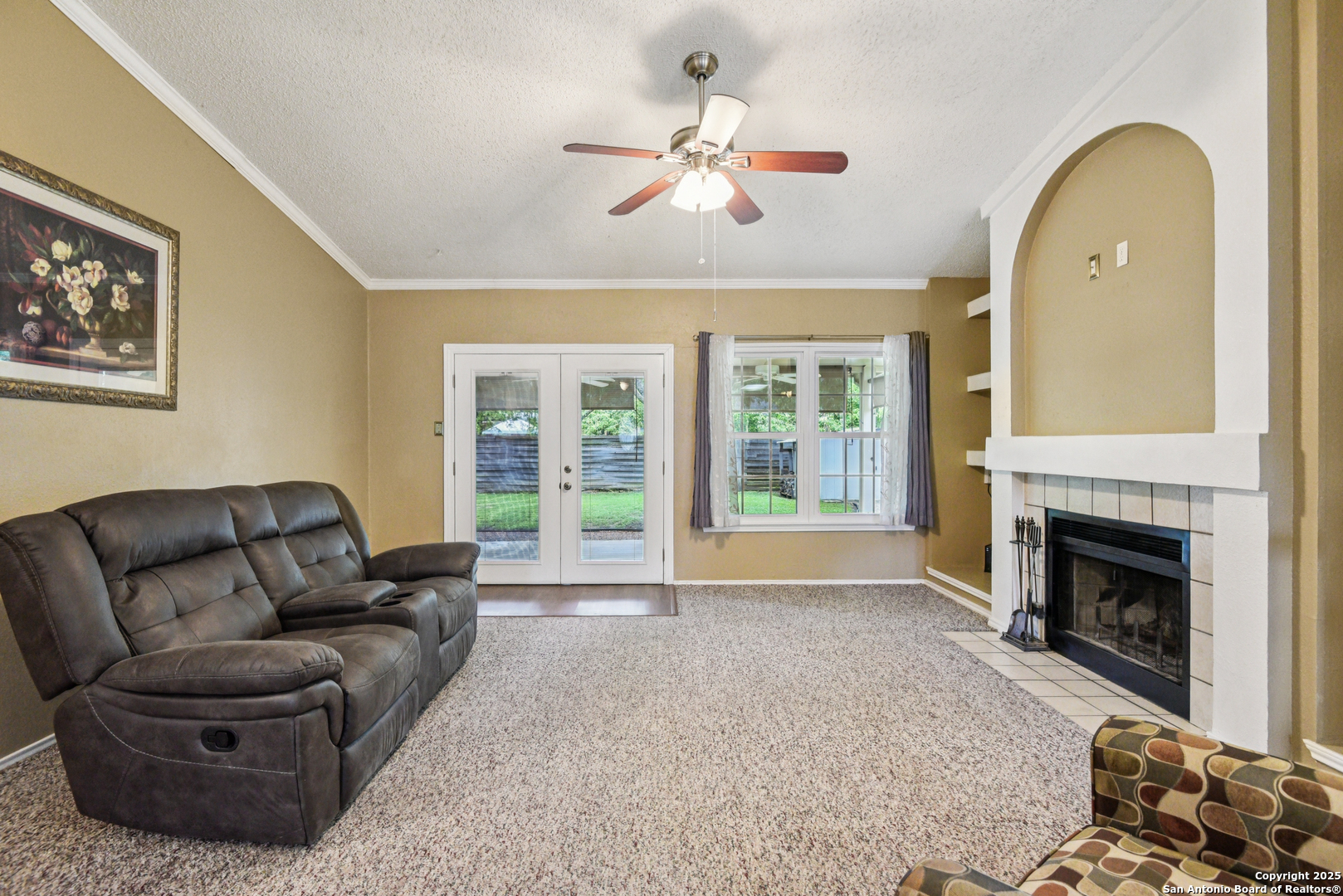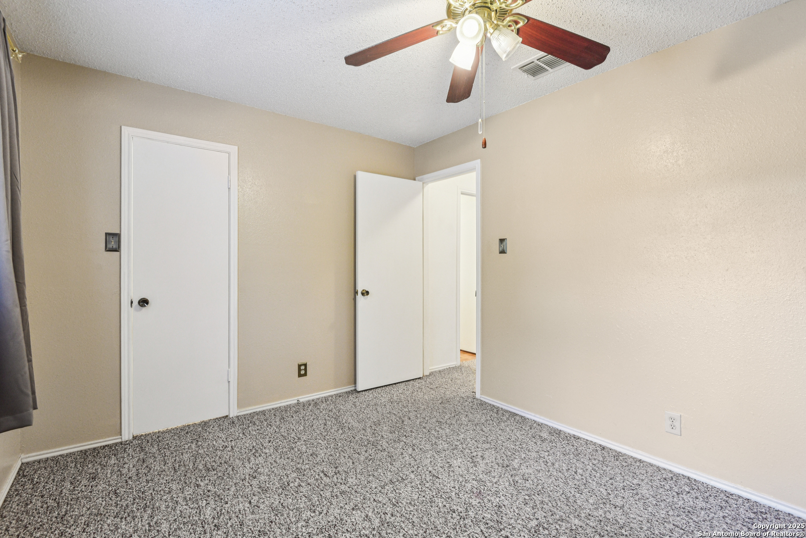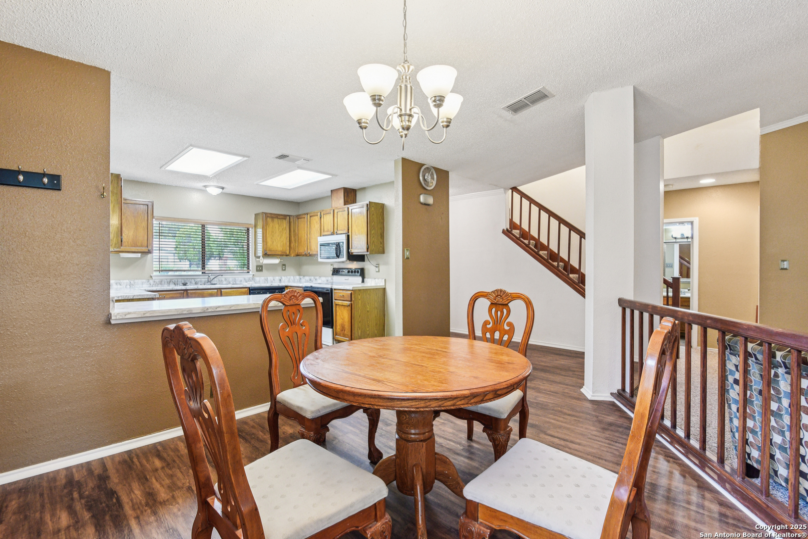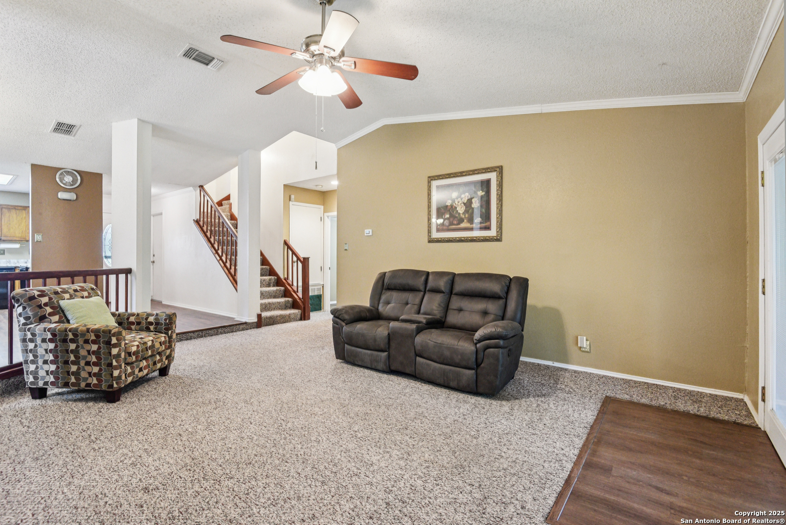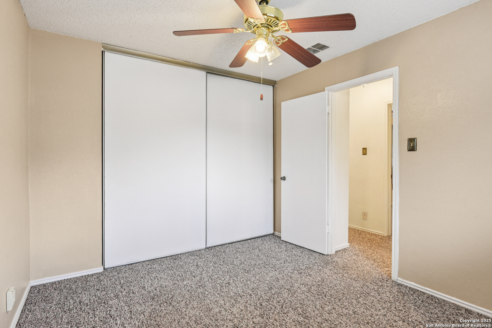 Welcome to your dream home in the highly sought-after Parkwood neighborhood! This stunning 3-bedroom, 2.5-bathroom residence is nestled amidst beautiful mature oak trees and meticulously maintained homes, offering an idyllic setting. Step inside and be greeted by brand new vinyl plank flooring, installed in 2025, that flows seamlessly through the dining room and into the spacious kitchen. The kitchen boasts ample counter space and abundant cabinetry, perfect for all your culinary needs. Relax and entertain in the generously sized living room, featuring impressive built-ins and a cozy wood-burning fireplace. The private primary bedroom, conveniently located on the first floor, is a true retreat with vaulted ceilings and a refreshing ceiling fan. Its ensuite bathroom offers a bath and shower combo, a single vanity with extra counter space, and a large walk-in closet. Upstairs, you'll find two spacious secondary bedrooms, each with closets and ceiling fans, along with a convenient secondary bathroom. A half bath downstairs provides added convenience for guests. The exterior is equally inviting, showcasing a gorgeous backyard with mature trees and an expansive covered patio, ideal for outdoor living and entertaining. Located close to shopping, grocery stores and restaurants! Easy Commute to Lackland Air Force Base, USAA, Medical Center, I-10, and Loop 1604. Discover the perfect blend of comfort and charm in this beautiful Parkwood home!