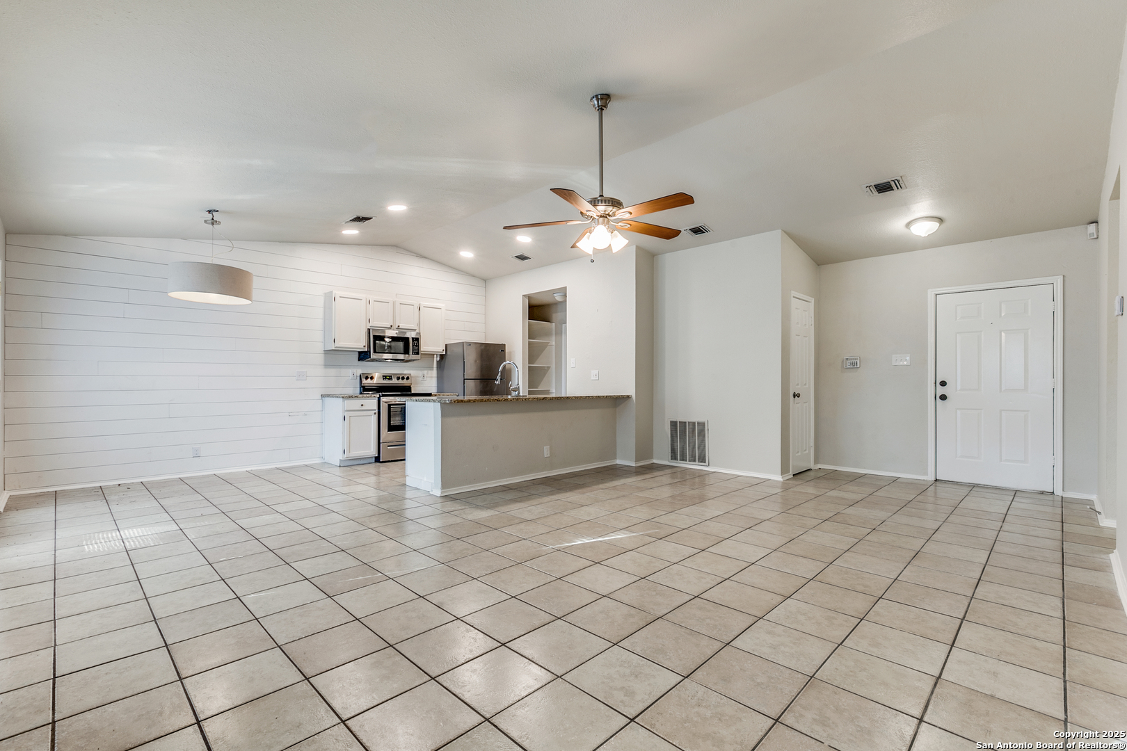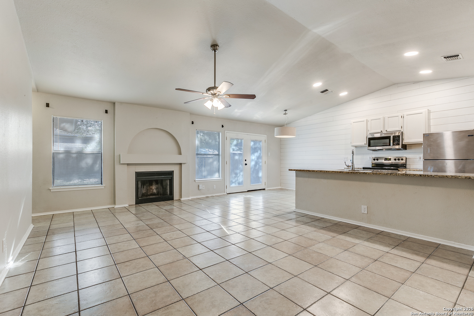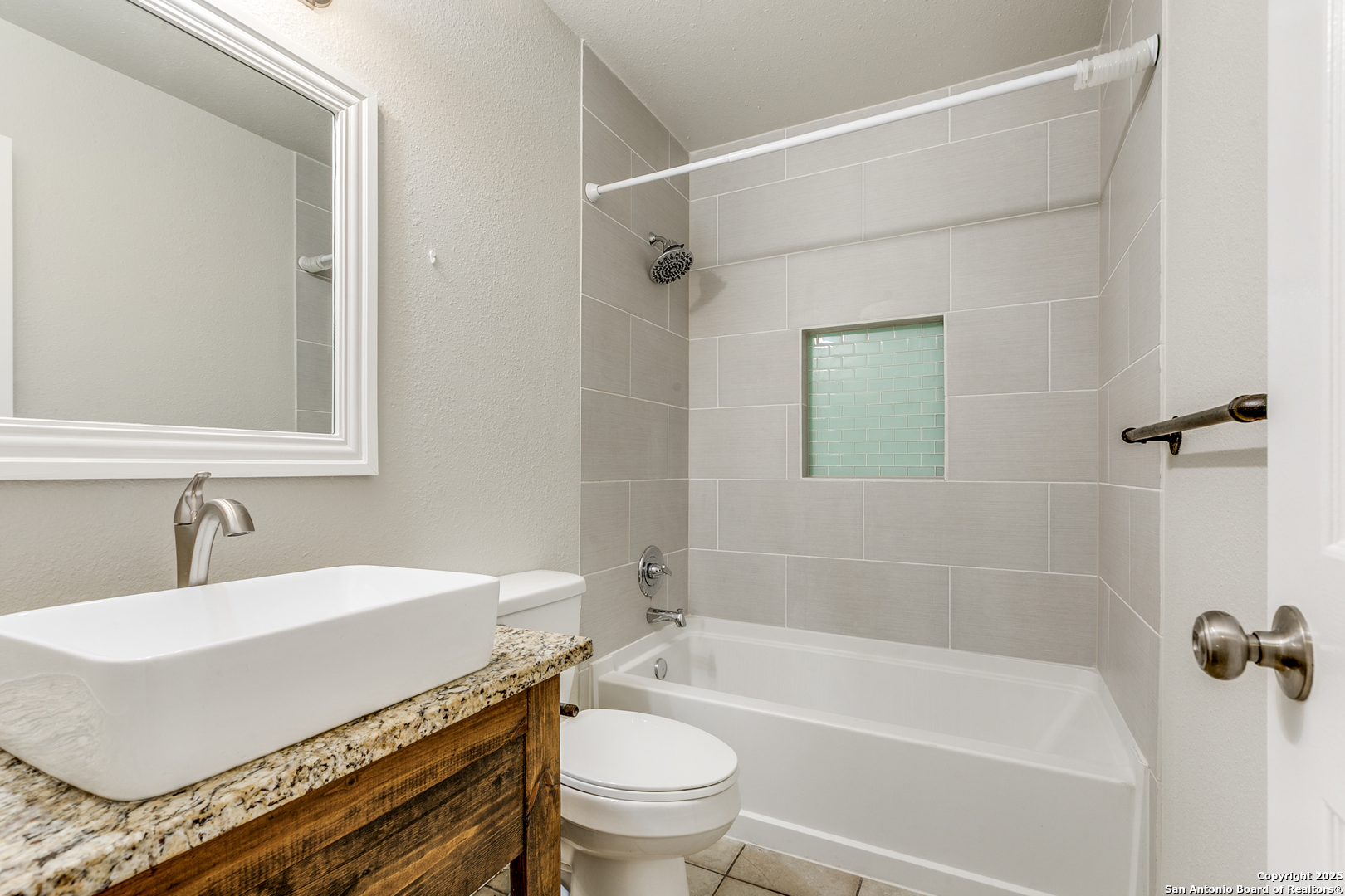 This 4 BR/2 BA home features an open floorpan and high ceilings. Open kitchen features stainless steel appliances, granite counter tops and large pantry. Updated bathrooms with custom wood vanities and vessel sinks, and tile surrounds in both showers. This pet-friendly house has porcelain tile throughout and a fully fenced backyard. The community pool is also available for use during your lease.