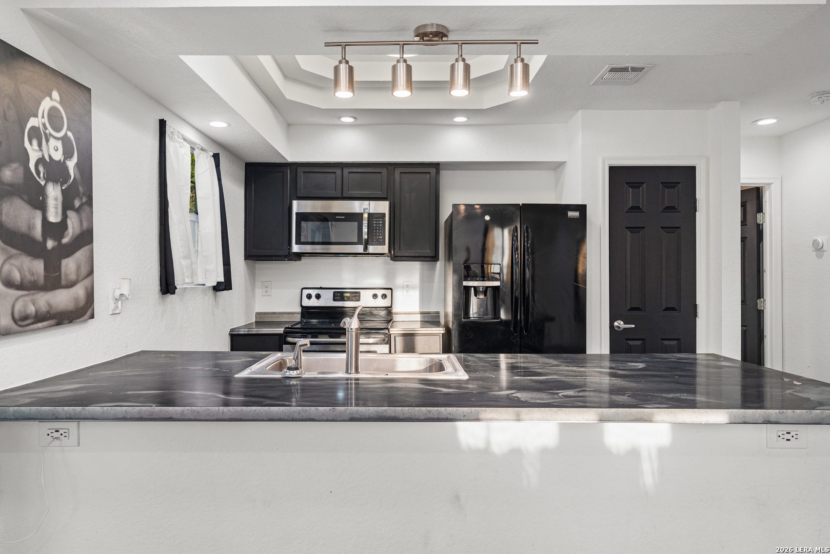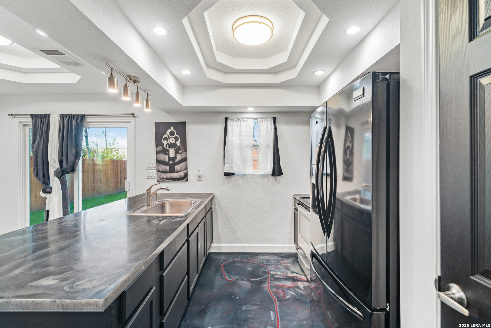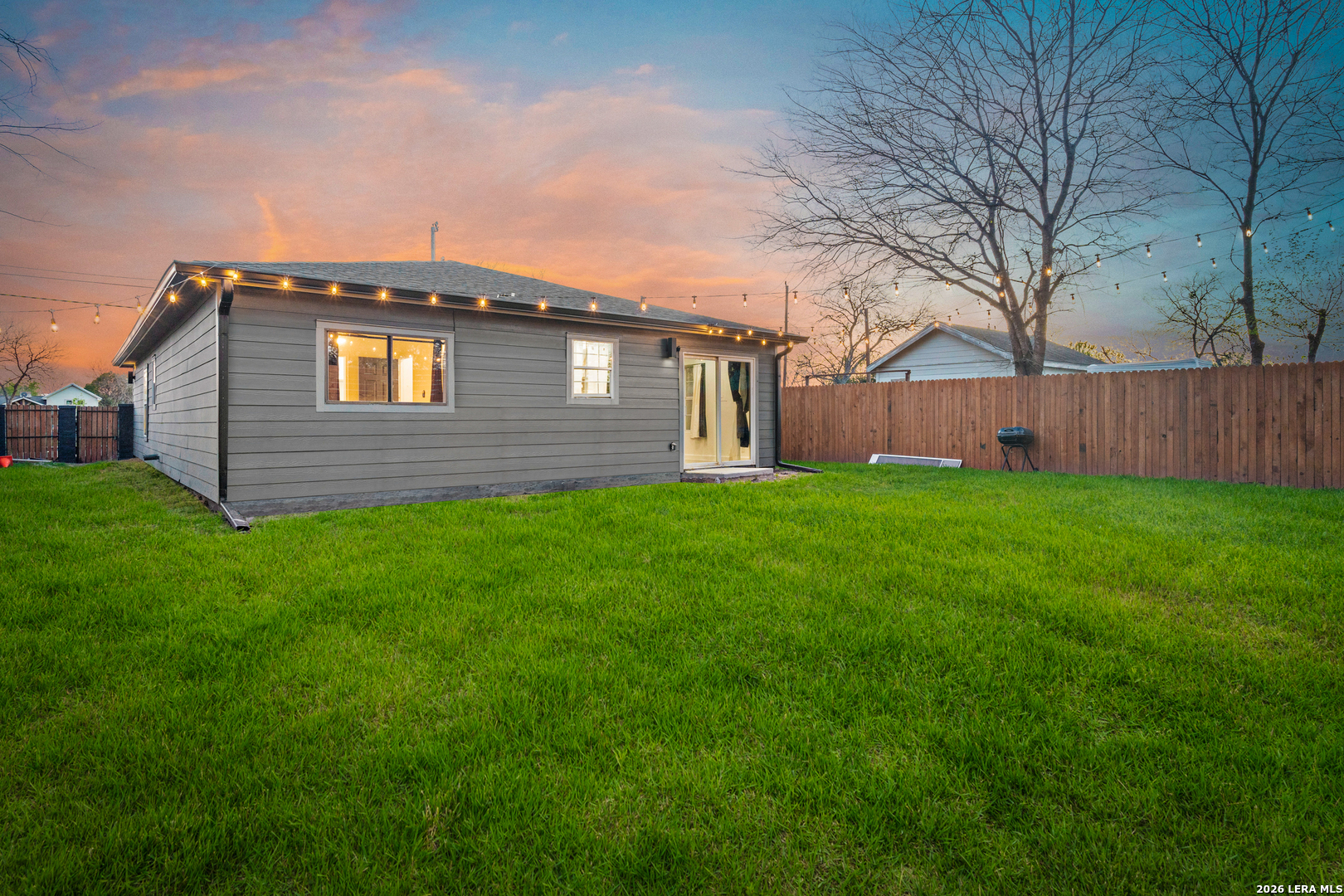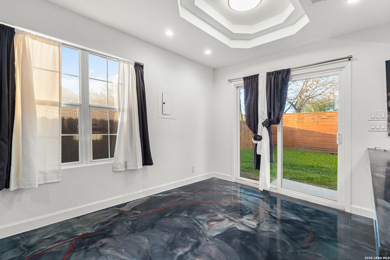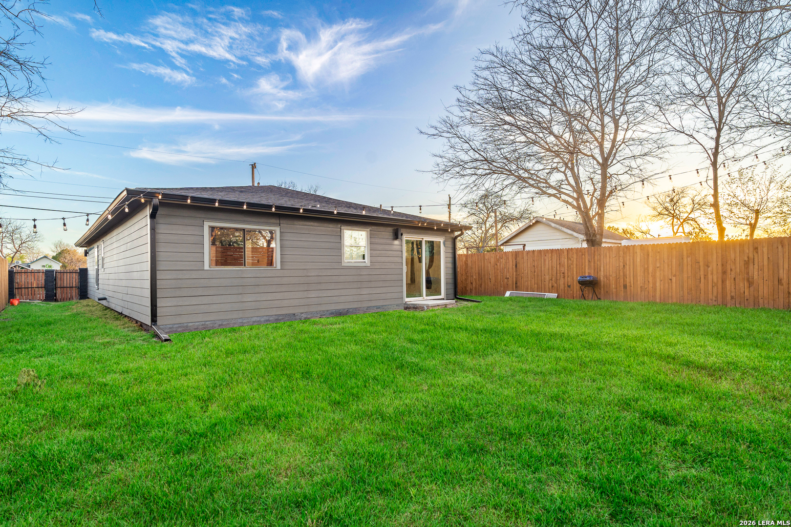 Looking for the flexibility of 4 bedrooms AND an office space with an updated open concept? This home features fresh paint with elegant epoxy and tile floors and is move-in ready. Maybe you're looking for an investment property for that long or short term rental you've been looking to add to your portfolio? Located in the Alamo City's inner west side, this home is 9 mins from the Lackland AFB visitor gate, 15 mins west of the Alamo, and 20 mins south of the medical center area with quick access to US 90 and Hwy 151. This home's curb appeal features a gated, low-maintenance xeriscape front yard, a widened 2-car driveway, a covered outdoor entertaining area complete with dimmable led lighting, a front yard firepit, and home camera system complete with four cameras and a doorbell that conveys. Inside you'll find a light filled open floorplan with a combined living/dining/kitchen area, a breakfast bar and all appliances. Epoxy flooring throughout the main living area is accented by elegant coffered and tray ceilings, recessed led lighting, ceiling fans, new paint and an outlet for your wall mounted TV. The primary bedroom features an ensuite bath with a walk in closet. The split floorplan features 3 additional bedrooms and a bonus room that is perfect for an office, den, or craft area all with tile floors. Sliding glass doors lead from the kitchen/dining area to a fully fenced backyard featuring a 10 foot decorative rear fence for added privacy. This entire house has been nicely updated and made ready for a new owner!