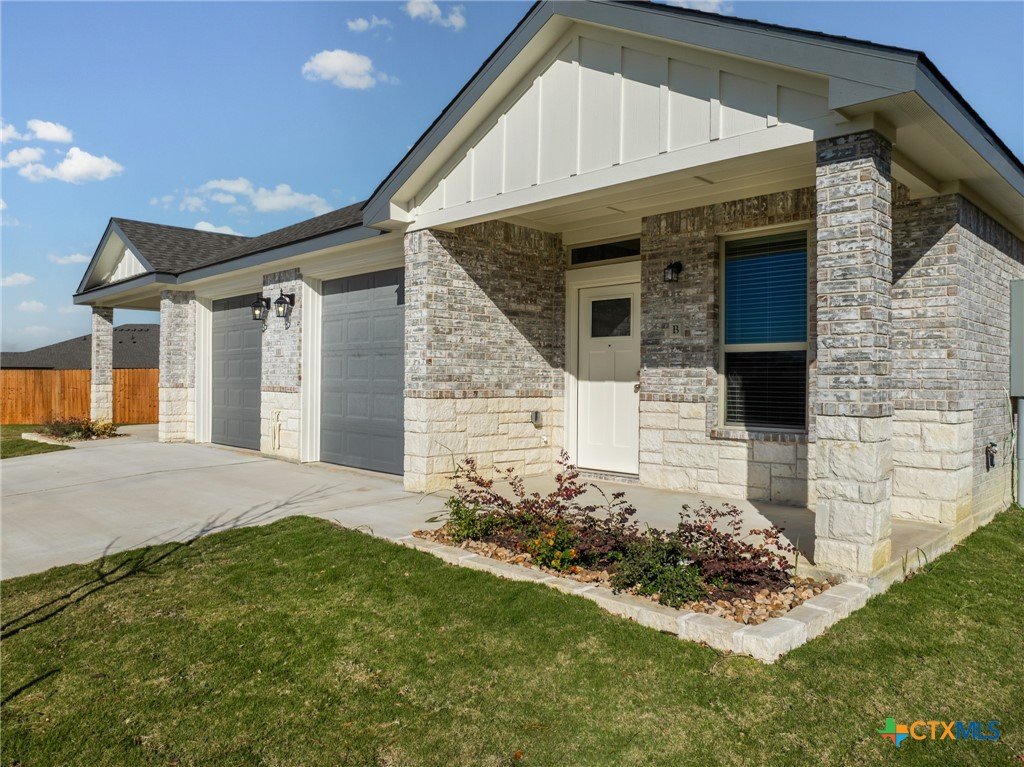 Welcome home to modern comfort, style, and convenience. This brand-new duplex is thoughtfully designed to elevate everyday living with a perfect blend of elegance and functionality. Featuring 3 spacious bedrooms and 2 baths, this home offers an open, airy layout ideal for both relaxing and entertaining. The heart of the home is the stunning kitchen—complete with granite countertops, elegant chandelier and a layout that flows effortlessly into the living area. A trendy sliding barn door adds a touch of character and contemporary charm, while durable vinyl flooring throughout ensures both style and easy maintenance. Tucked away in a quiet cul-de-sac within an affluent neighborhood, this home provides a sense of privacy and peace, while keeping you close to everything that matters. Enjoy quick access to shopping, dining, and everyday essentials, and a short commute to Fort Hood's Clear Creek Gate, making it ideal for professionals and military families alike. Whether you're unwinding after a long day or hosting those you love, this home offers the perfect backdrop to create memories, comfort, and a true sense of belonging. Modern living starts here—schedule your tour today and fall in love.