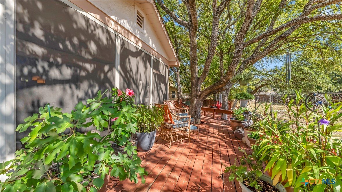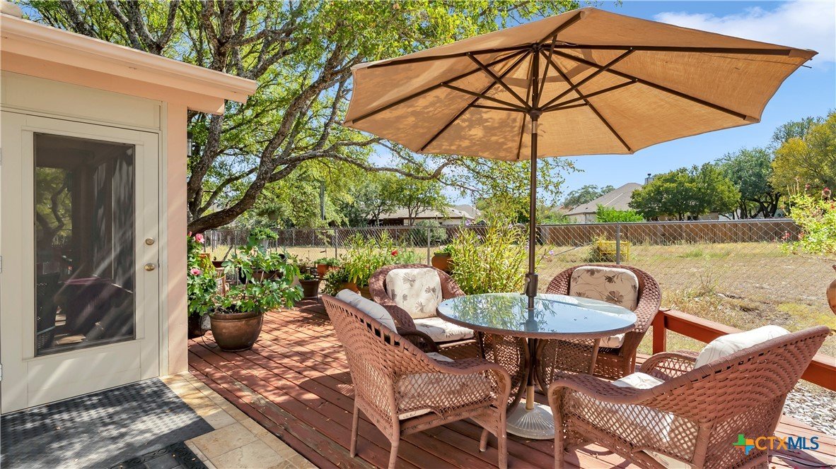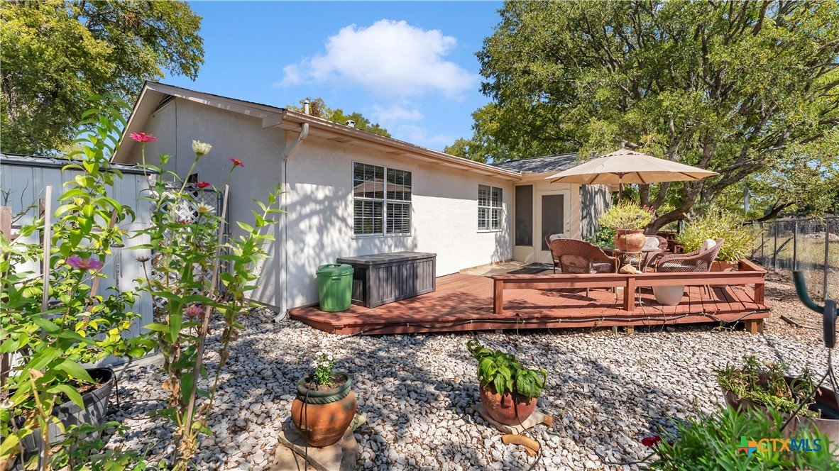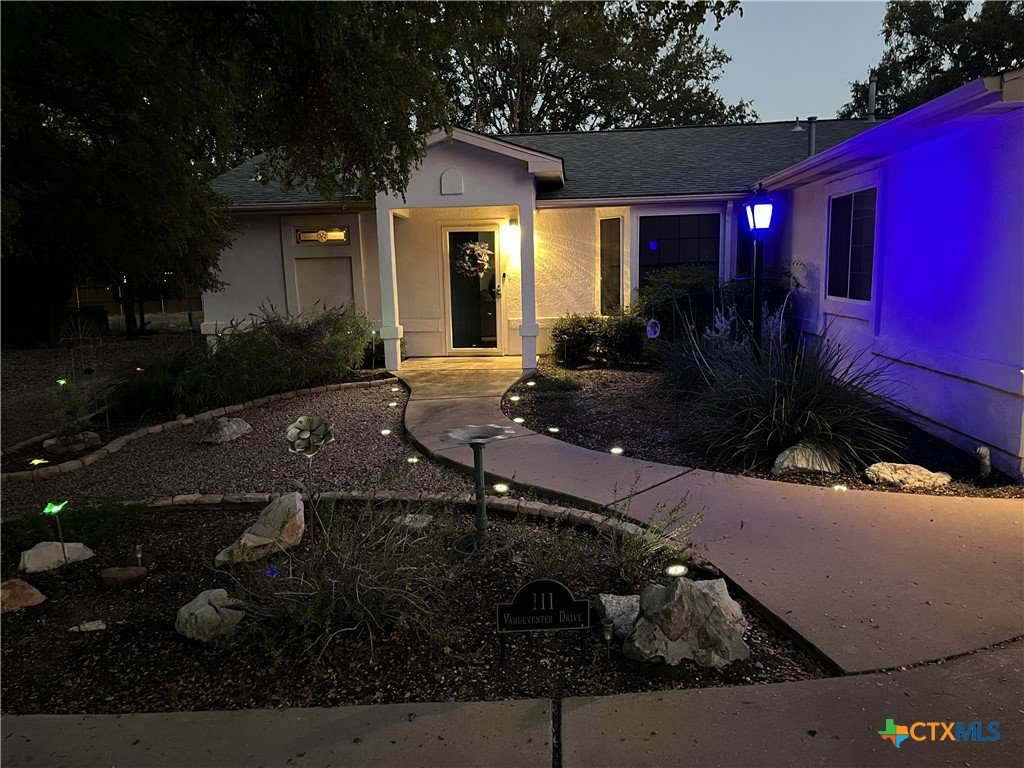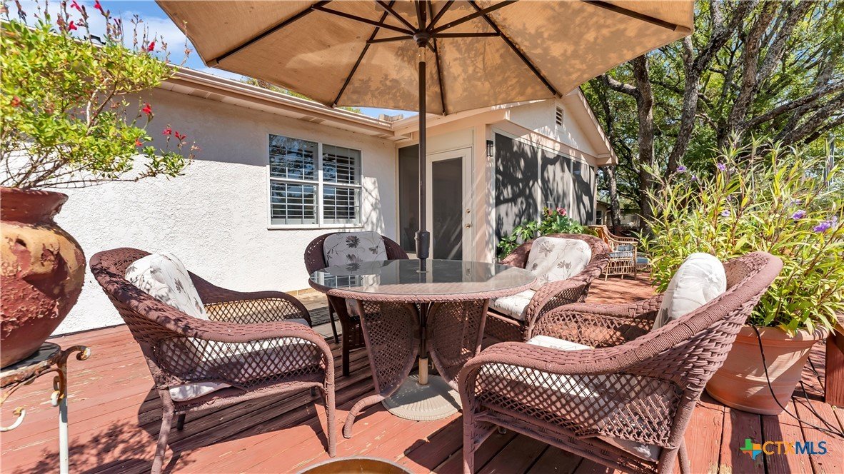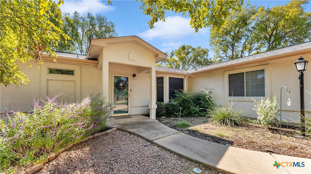 Beautiful home in Delaware Springs, Burnet's Premiere Golf Course Subdivision. This 3 bedroom, 2 bathroom, with 1634 sq.ft. of living space is just one block from the Club House, Driving Range and Putting Green. Charming neighborhood covered in large trees, great for a stroll or cruising on the golf cart. Low maintenance zero-scape yard with beautifully kept plant beds. Expansive back deck with abundant space to host guests and create an outdoor oasis with planters. Master bedroom has ensuite with enclosed walk-in shower and large dressing closet. The kitchen features a breakfast nook, large island, pantry and gas stove. Home also showcases a large screened-in sunroom for relaxing of an evening and enjoying the deer ambience. Circular driveway with extra parking pad make for plenty of space for visitors. Separate Garage entrance for parking your golf cart.