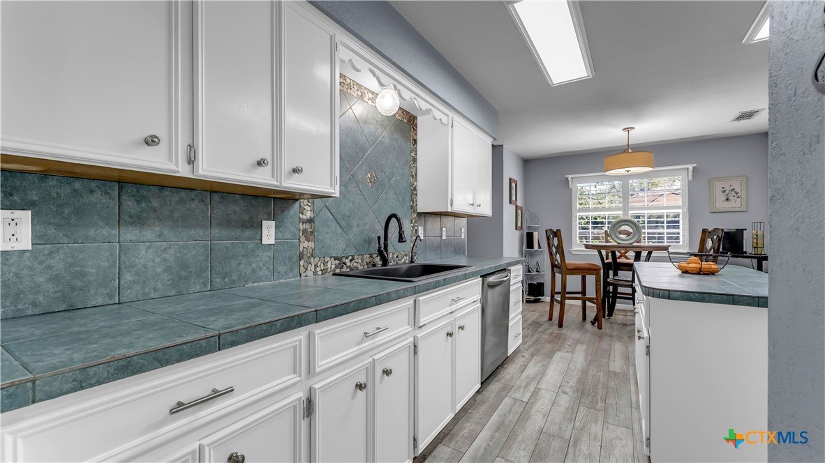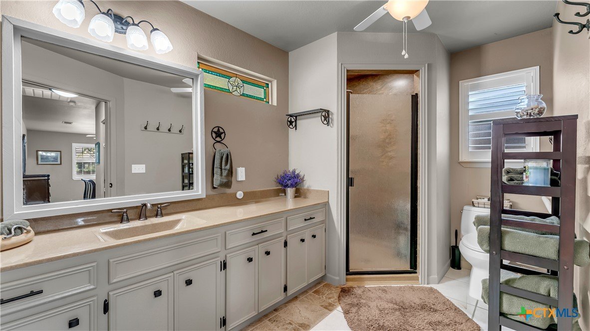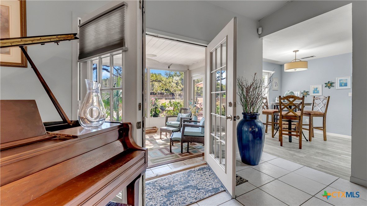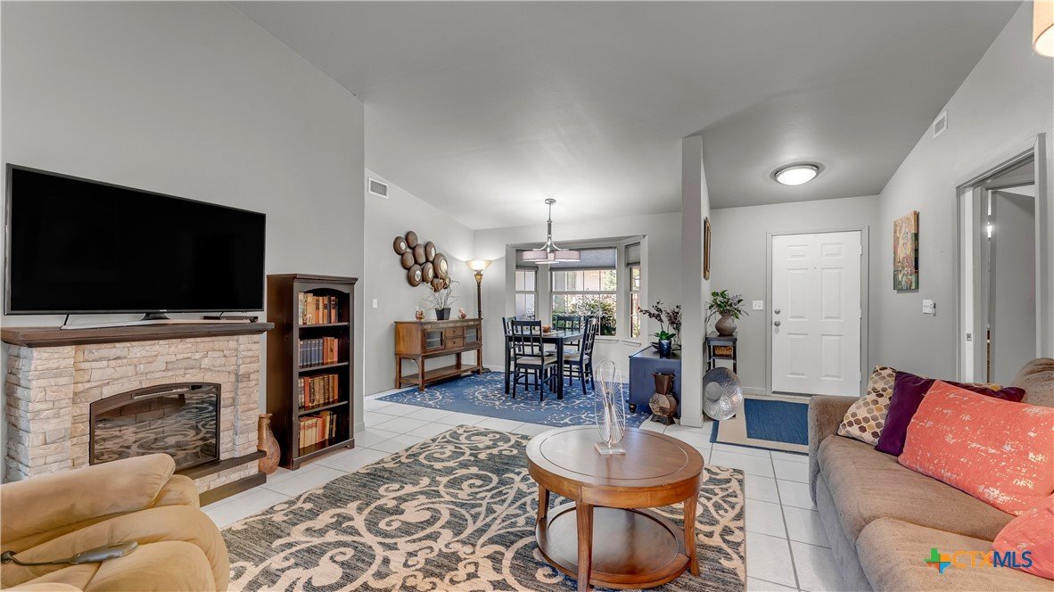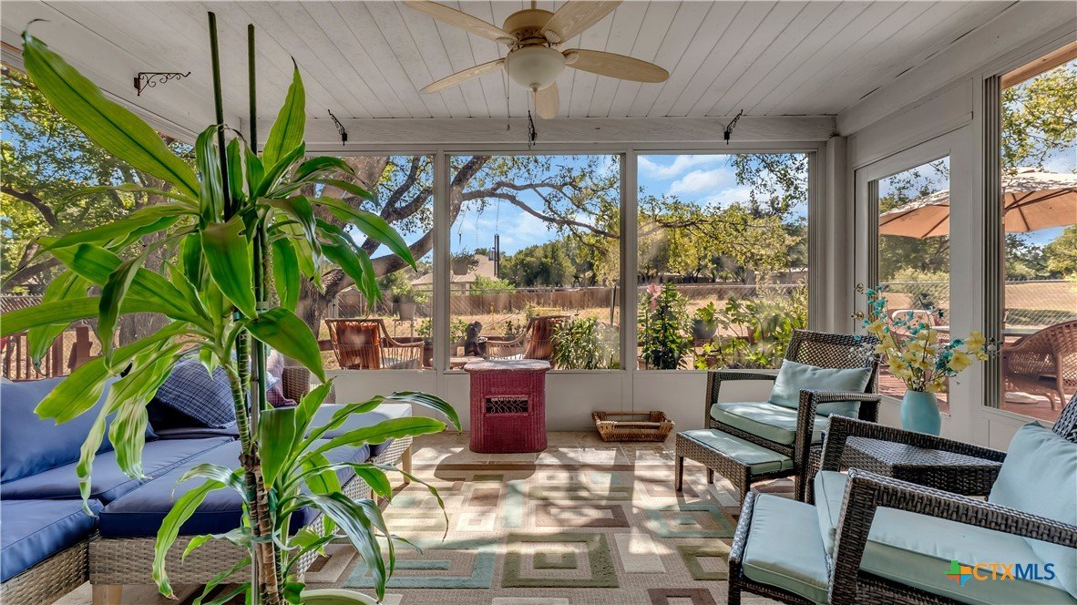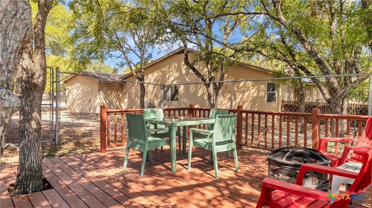 Beautiful home in Delaware Springs, Burnet's Premiere Golf Course Subdivision. This 3 bedroom, 2 bathroom, with 1634 sq.ft. of living space is just one block from the Club House, Driving Range and Putting Green. Charming neighborhood covered in large trees, great for a stroll or cruising on the golf cart. Low maintenance zero-scape yard with beautifully kept plant beds. Expansive back deck with abundant space to host guests and create an outdoor oasis with planters. Master bedroom has ensuite with enclosed walk-in shower and large dressing closet. The kitchen features a breakfast nook, large island, pantry and gas stove. Home also showcases a large screened-in sunroom for relaxing of an evening and enjoying the deer ambience. Circular driveway with extra parking pad make for plenty of space for visitors. Separate Garage entrance for parking your golf cart.