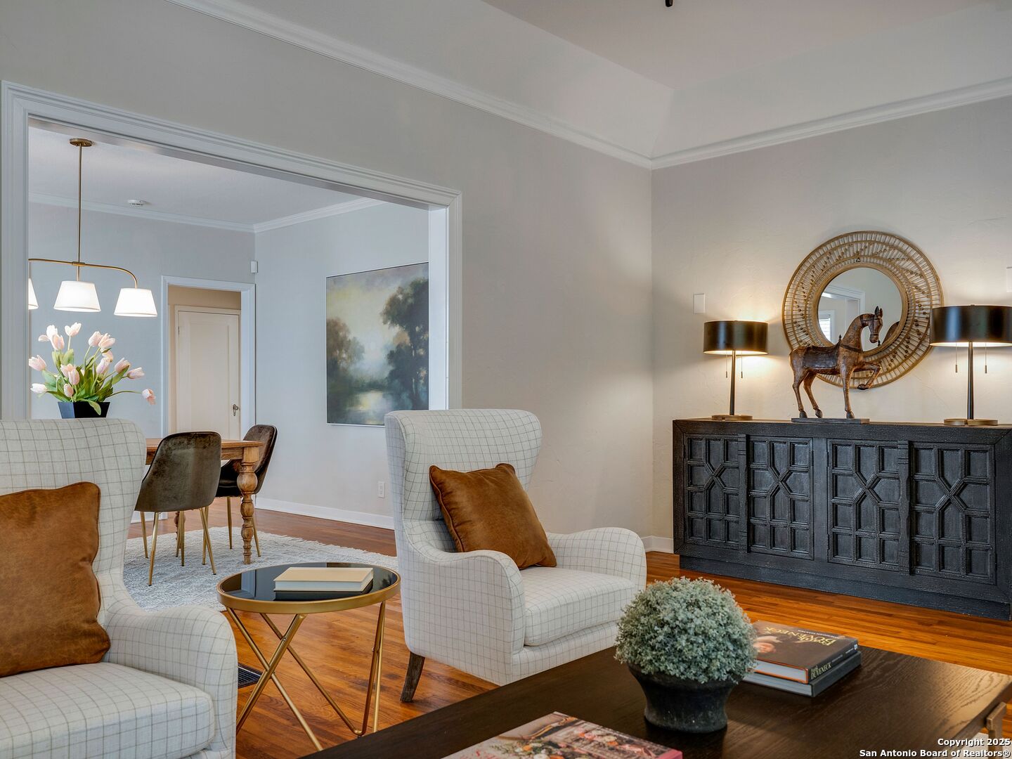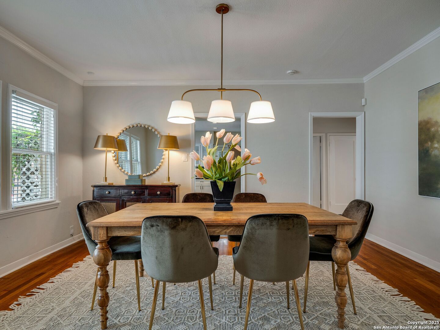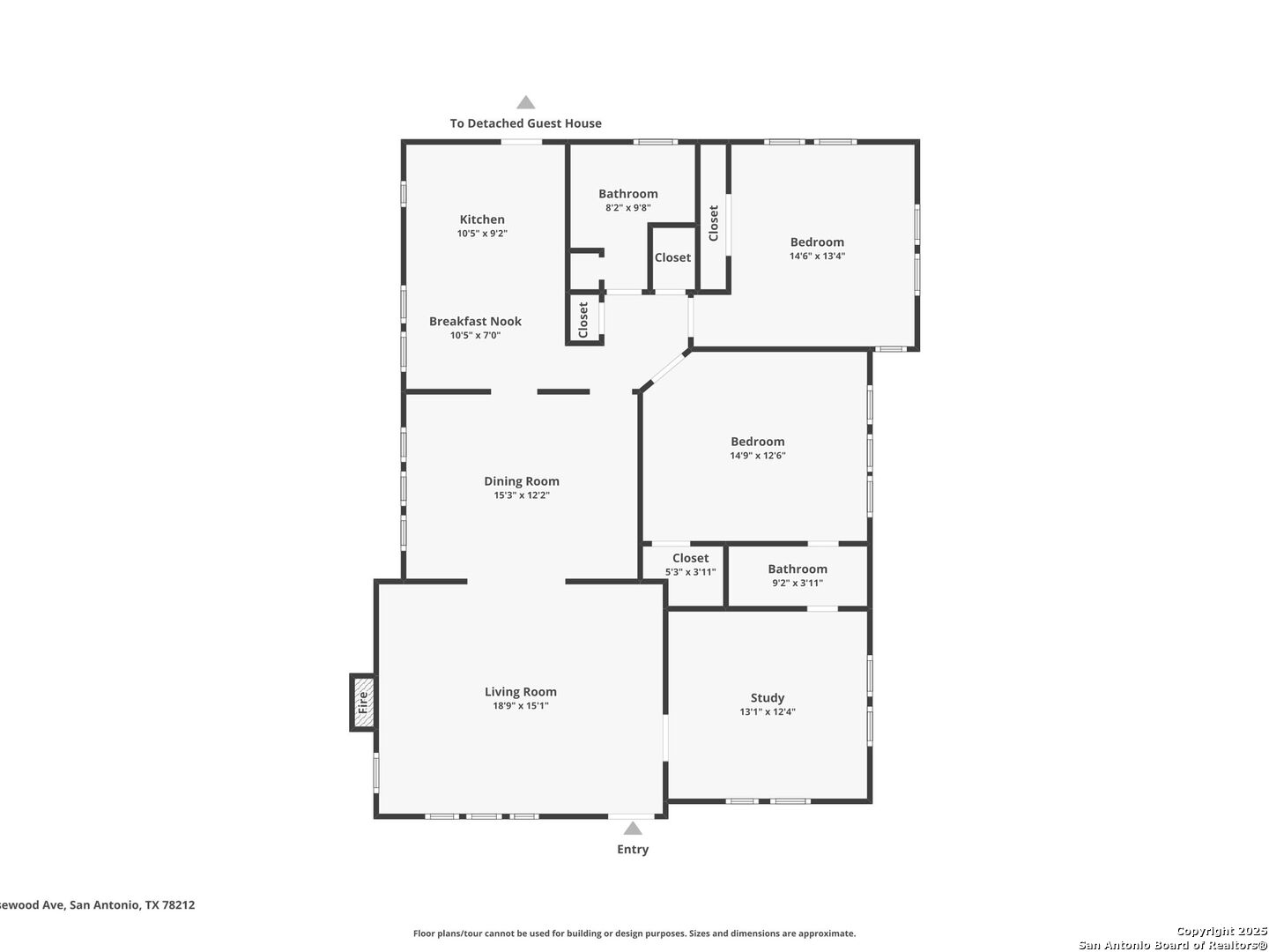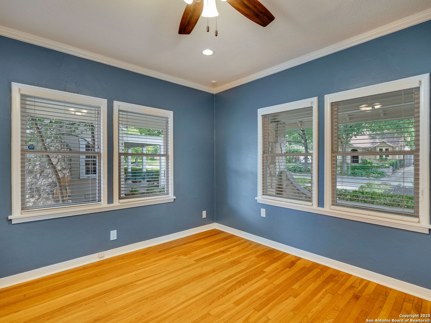 Open House Sunday August 10th 1pm-3pm. Nestled in historic Monte Vista, this enchanting fieldstone cottage blends classic charm with thoughtful updates. With 3 bedrooms and 2 baths, this home invites you in through an inviting front porch that overlooks a beautifully shaded front yard-perfect for morning coffee or evening relaxation. A graceful porte-cochere adds curb appeal and convenience. Inside, timeless details abound: rich hardwood floors flow throughout, picture railing adds vintage character, and a tray ceiling in the living room draws the eye upward. The mock fireplace with its colorful mosaic tiled hearth becomes the cozy centerpiece of the space. The open-concept living and dining area is ideal for entertaining, featuring a striking new chandelier and warm natural light. The updated kitchen delights with newer tile floors, sleek black quartz countertops, stainless steel appliances, gas cooking, and a deep sink beneath a sunny window. Glass-front cabinet doors offer a touch of vintage style with modern function. The bright and serene primary suite boasts a fully renovated bath with a quartz-topped vanity and a beautiful tile shower. A connected flex space-ideal for a nursery, office, or library-features built-in bookshelves that add both charm and utility. The third bedroom and second bath offer privacy and period style, with a clawfoot tub, tiled walls, and vintage-inspired tile floors. Out back, a shaded yard offers endless possibilities-including a potential guest casita with bath, kitchen sink, and soaring cathedral ceilings-just waiting to be finished. This storybook home offers the perfect mix of history and comfort in one of San Antonio's most desirable neighborhoods. Come see this sweet home and make it yours!
