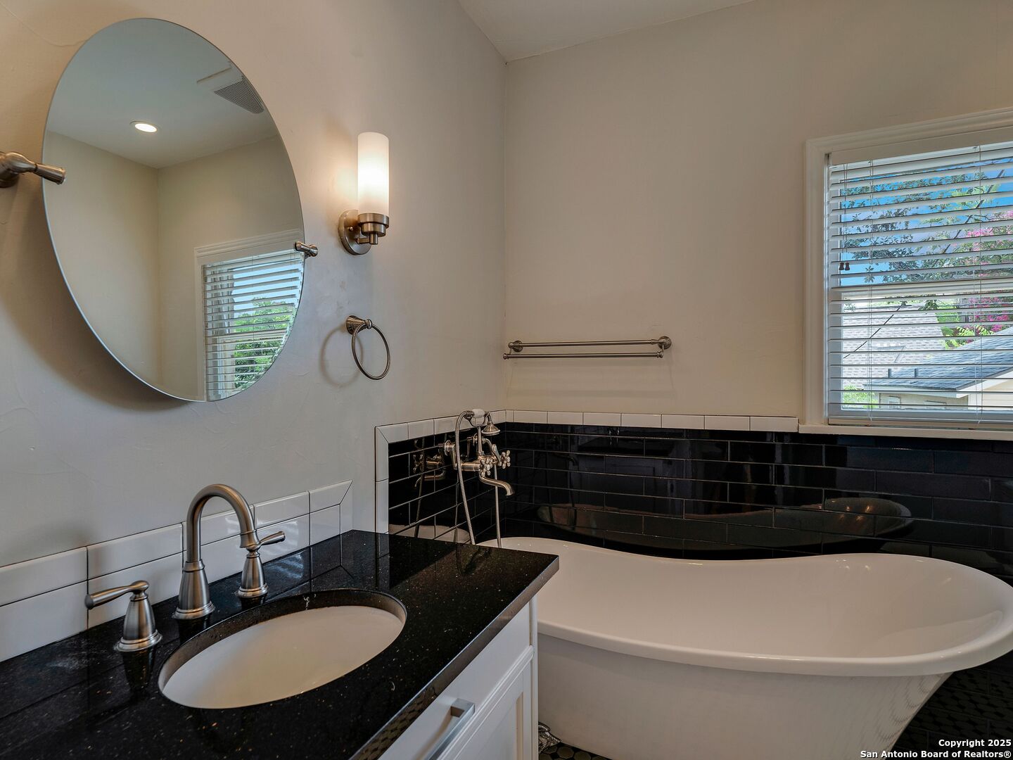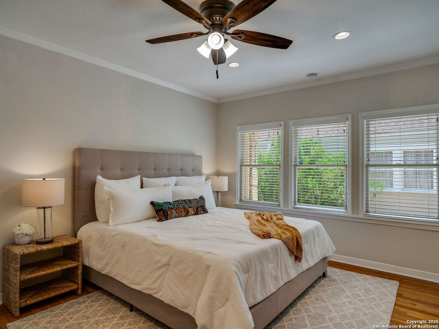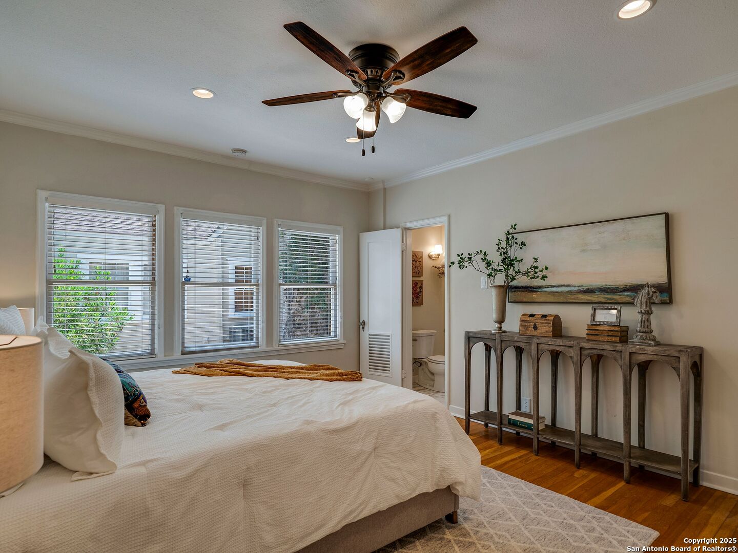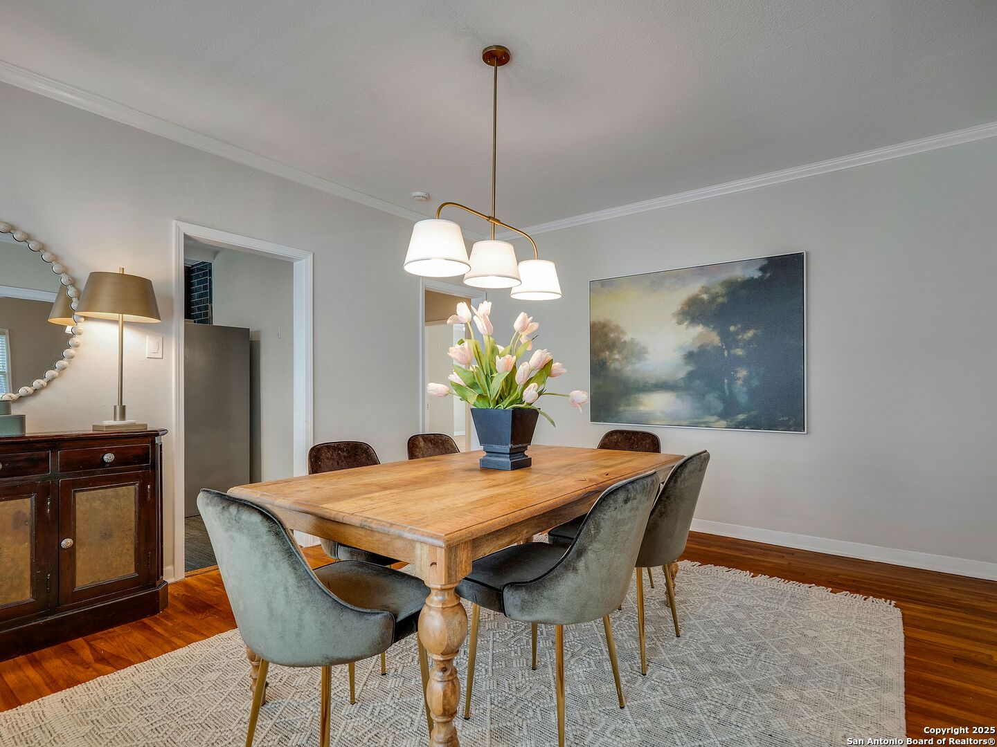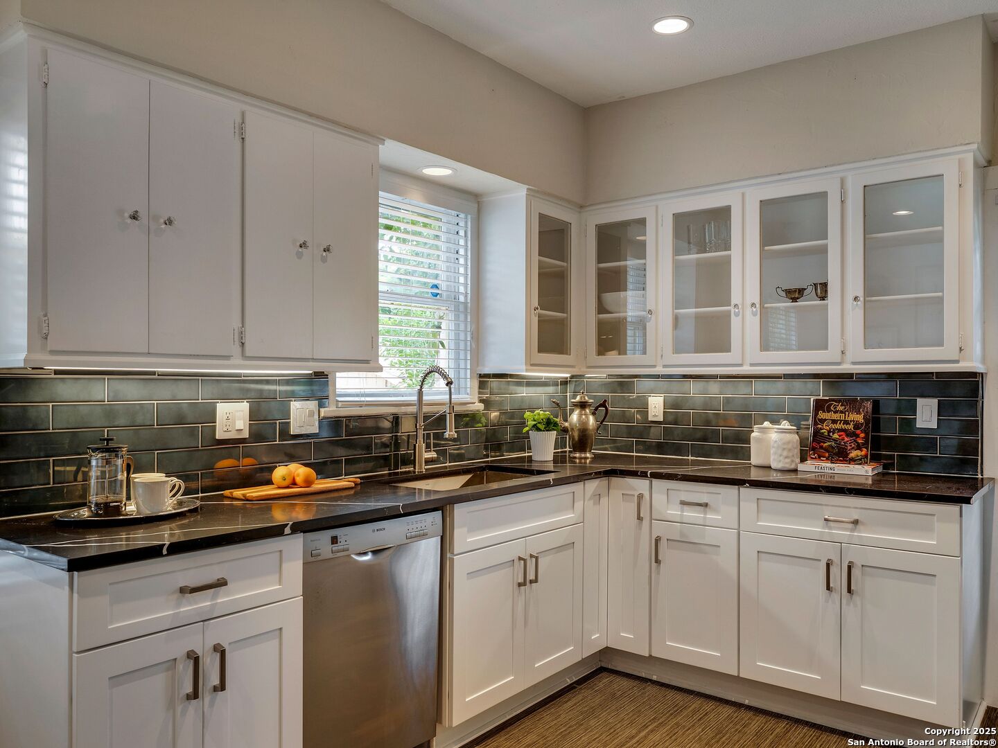Open House Sunday August 10th 1pm-3pm. Nestled in historic Monte Vista, this enchanting fieldstone cottage blends classic charm with thoughtful updates. With 3 bedrooms and 2 baths, this home invites you in through an inviting front porch that overlooks a beautifully shaded front yard-perfect for morning coffee or evening relaxation. A graceful porte-cochere adds curb appeal and convenience. Inside, timeless details abound: rich hardwood floors flow throughout, picture railing adds vintage character, and a tray ceiling in the living room draws the eye upward. The mock fireplace with its colorful mosaic tiled hearth becomes the cozy centerpiece of the space. The open-concept living and dining area is ideal for entertaining, featuring a striking new chandelier and warm natural light. The updated kitchen delights with newer tile floors, sleek black quartz countertops, stainless steel appliances, gas cooking, and a deep sink beneath a sunny window. Glass-front cabinet doors offer a touch of vintage style with modern function. The bright and serene primary suite boasts a fully renovated bath with a quartz-topped vanity and a beautiful tile shower. A connected flex space-ideal for a nursery, office, or library-features built-in bookshelves that add both charm and utility. The third bedroom and second bath offer privacy and period style, with a clawfoot tub, tiled walls, and vintage-inspired tile floors. Out back, a shaded yard offers endless possibilities-including a potential guest casita with bath, kitchen sink, and soaring cathedral ceilings-just waiting to be finished. This storybook home offers the perfect mix of history and comfort in one of San Antonio's most desirable neighborhoods. Come see this sweet home and make it yours!
