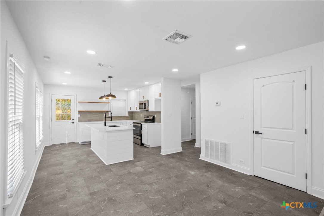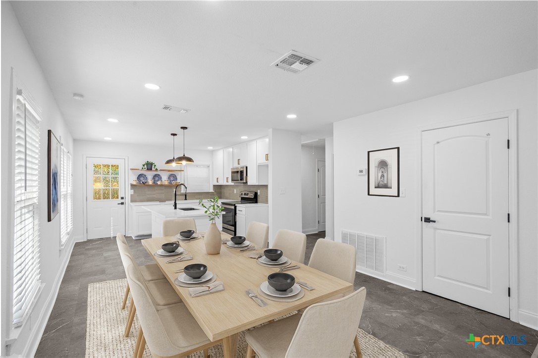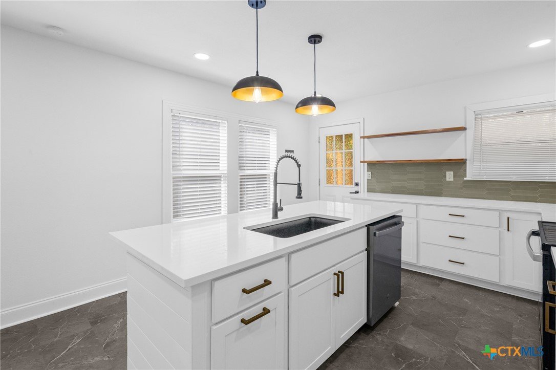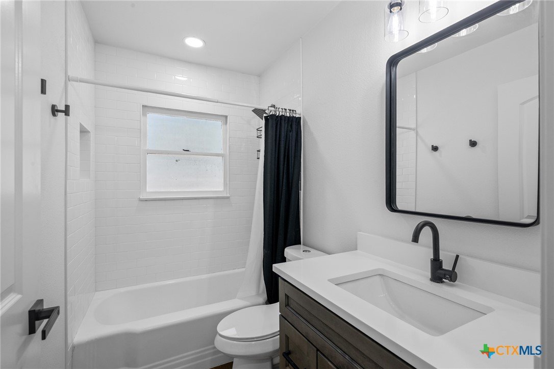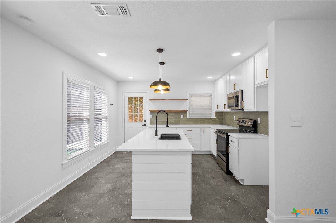 From the moment you arrive, this home welcomes you with its inviting front porch, mature shade trees, and timeless charm. The light olive-green exterior is accented with crisp white trim and shutters, creating a fresh and classic look that feels instantly like home. The heart of this home is its fully updated kitchen - bright, clean, and designed for both function and style. A large center island with shiplap detailing and sleek white countertops provides plenty of prep space and doubles as a perfect gathering spot for family and friends. The master suite features a custom tile walk-in shower with matte black fixtures, a double vanity, and a spacious walk-in closet with plenty of storage. Outside you have a spacious backyard, and a detached one-car garage with an additional storage room perfect for a handy man! Move-in ready, beautifully finished, and full of charm - schedule your private showing today!