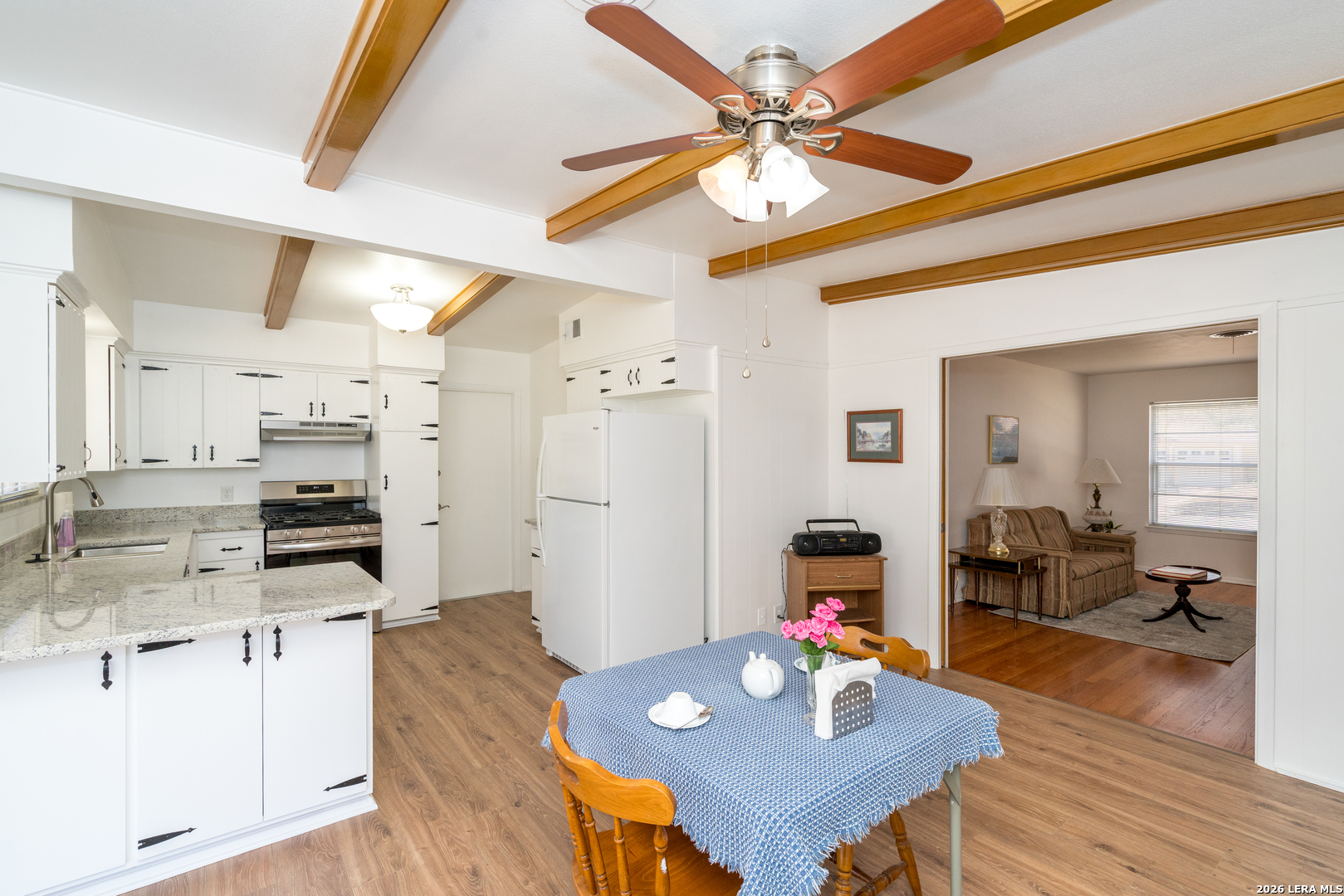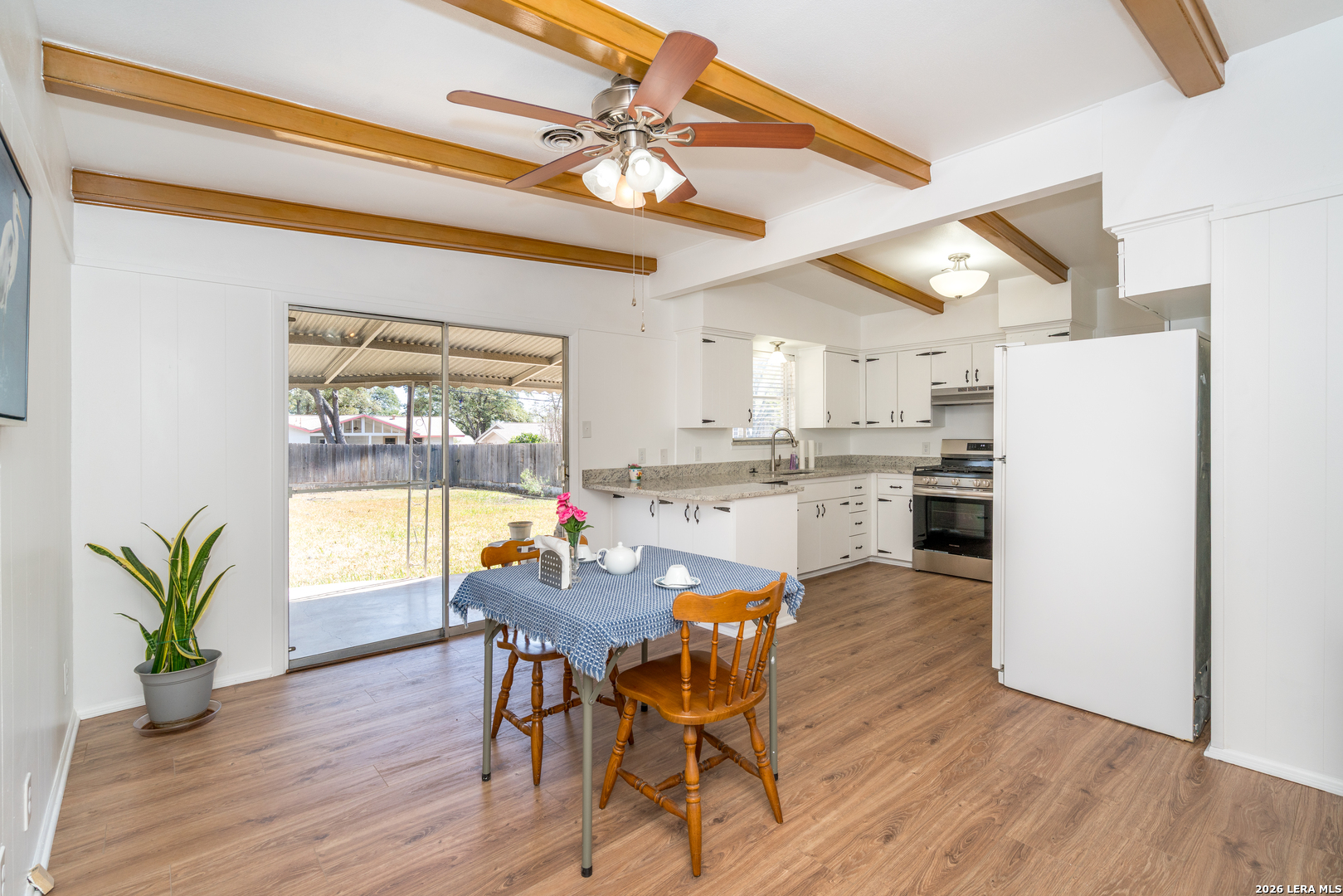 Yes, you are home. Lovely, freshened-up, single story 3/2/2 in conveniently located Dreamland Oaks off of Lockhill-Selma. A graceful old tree in the front yard welcomes you. Step on the Terrazzo flooring in entry to then find pretty original oak floors in the living area, hall, and all three bedrooms. No carpeting. New Quartz counters in the kitchen give plenty of space to enjoy preparing and serving family and friends. Also, enjoy the inviting spacious back yard from the 16 x 11 covered back porch. The refrigerator, newer stove/oven, washer, and freezer in the oversized garage are all included. Terrific north central location, between Loop 410 & 1604 and IH 10 & 281. Please enjoy.