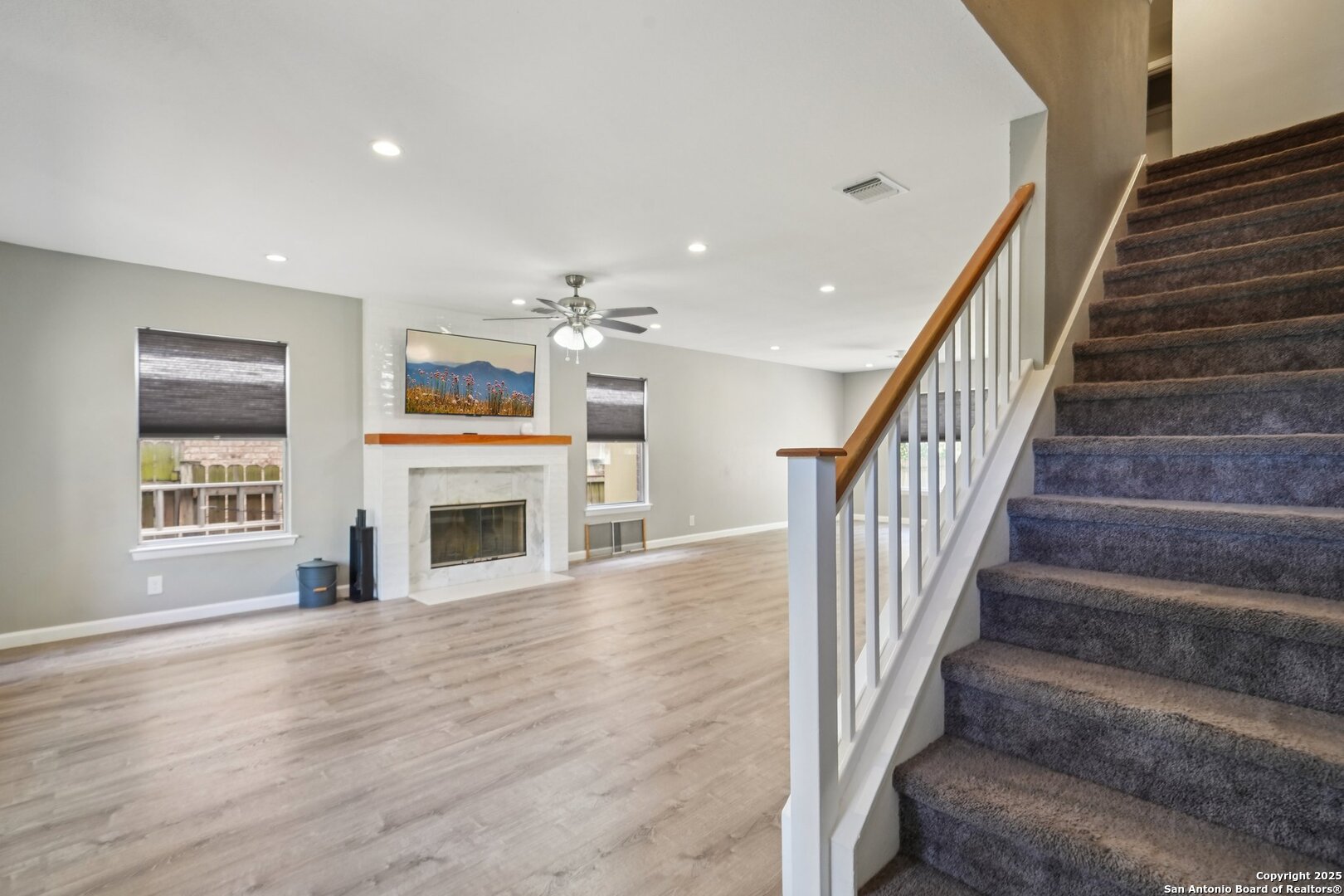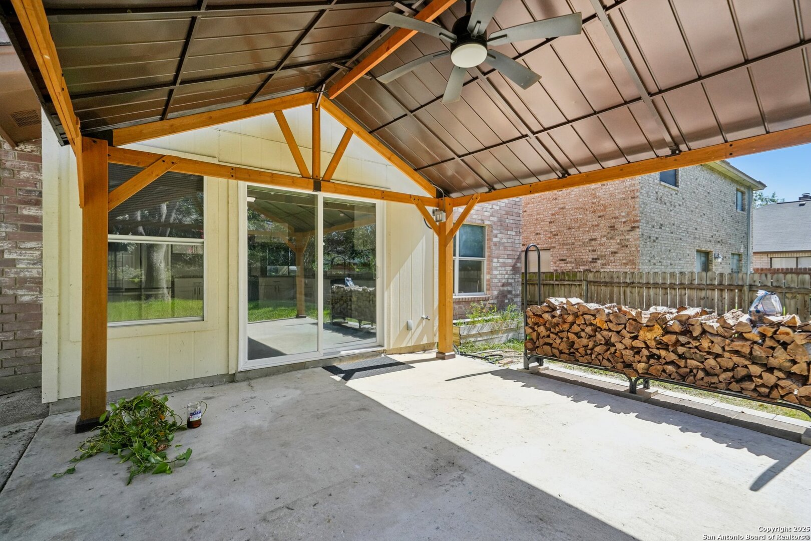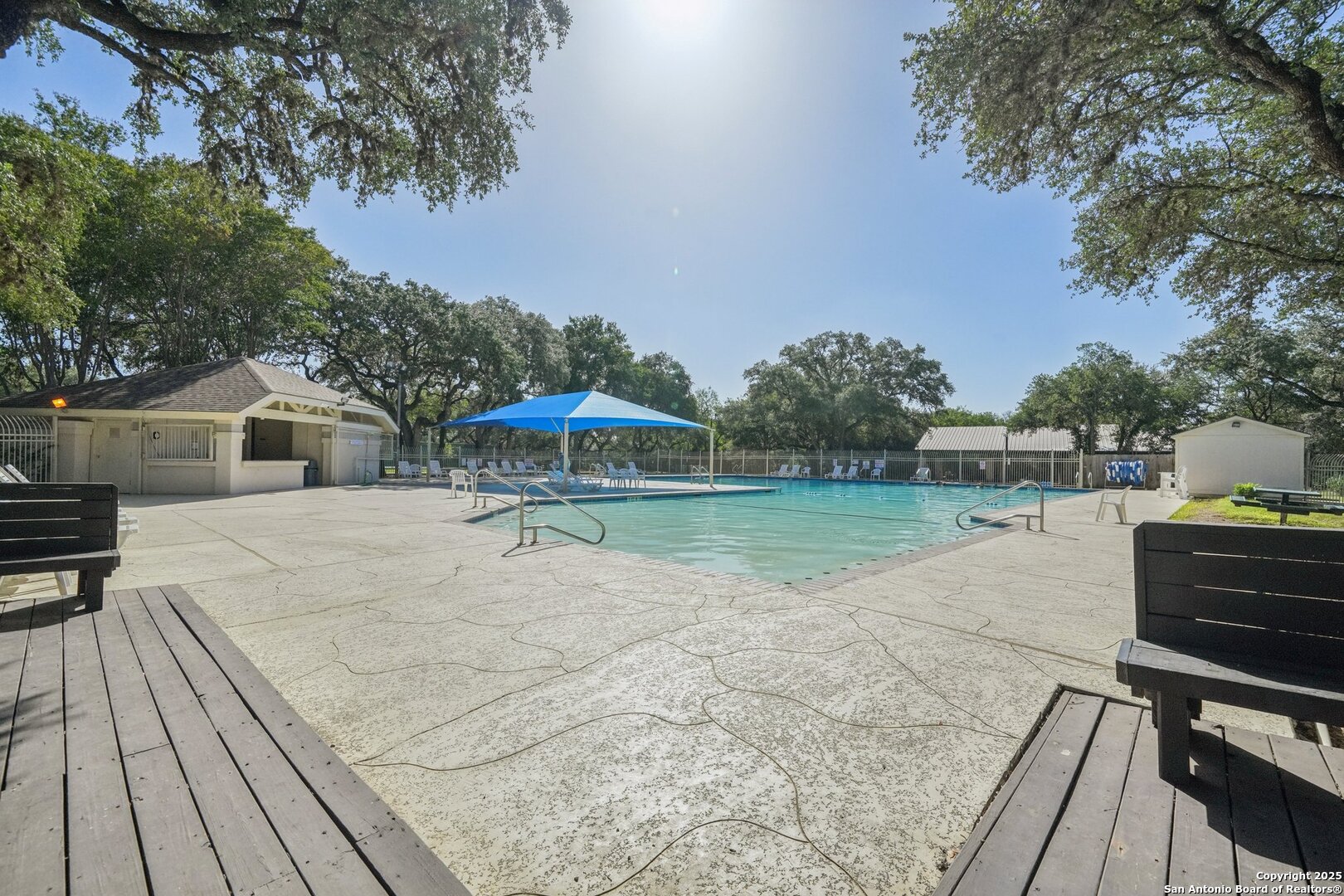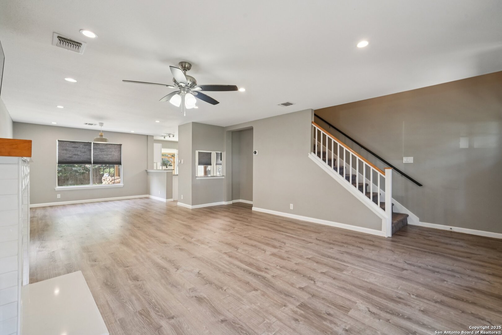 Nicely Updated 2 Story Home with Great Covered Outdoor Living and a huge Back Yard! 2 story home with recent updates including Stainless Appliances, Granite Counters and Wood Burning Fireplace. Located in the Parkwood Neighborhood, enjoy the community pool, tennis courts, park setting and even a dog park! All just down the street. The home has newer appliances, modern plank flooring, wood burning fireplace, HUGE walk in Pantry, HUGE Master Bedroom with updated bathroom and a walk in closet. Ceiling Fans throughout. The home also has a great water softener system installed to help with that hard San Antonio Water.