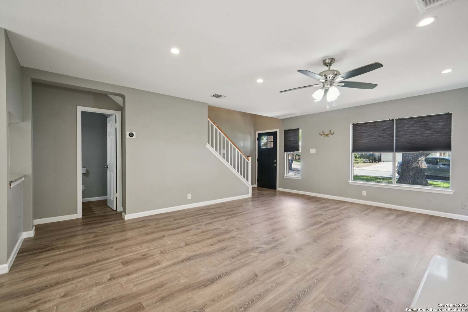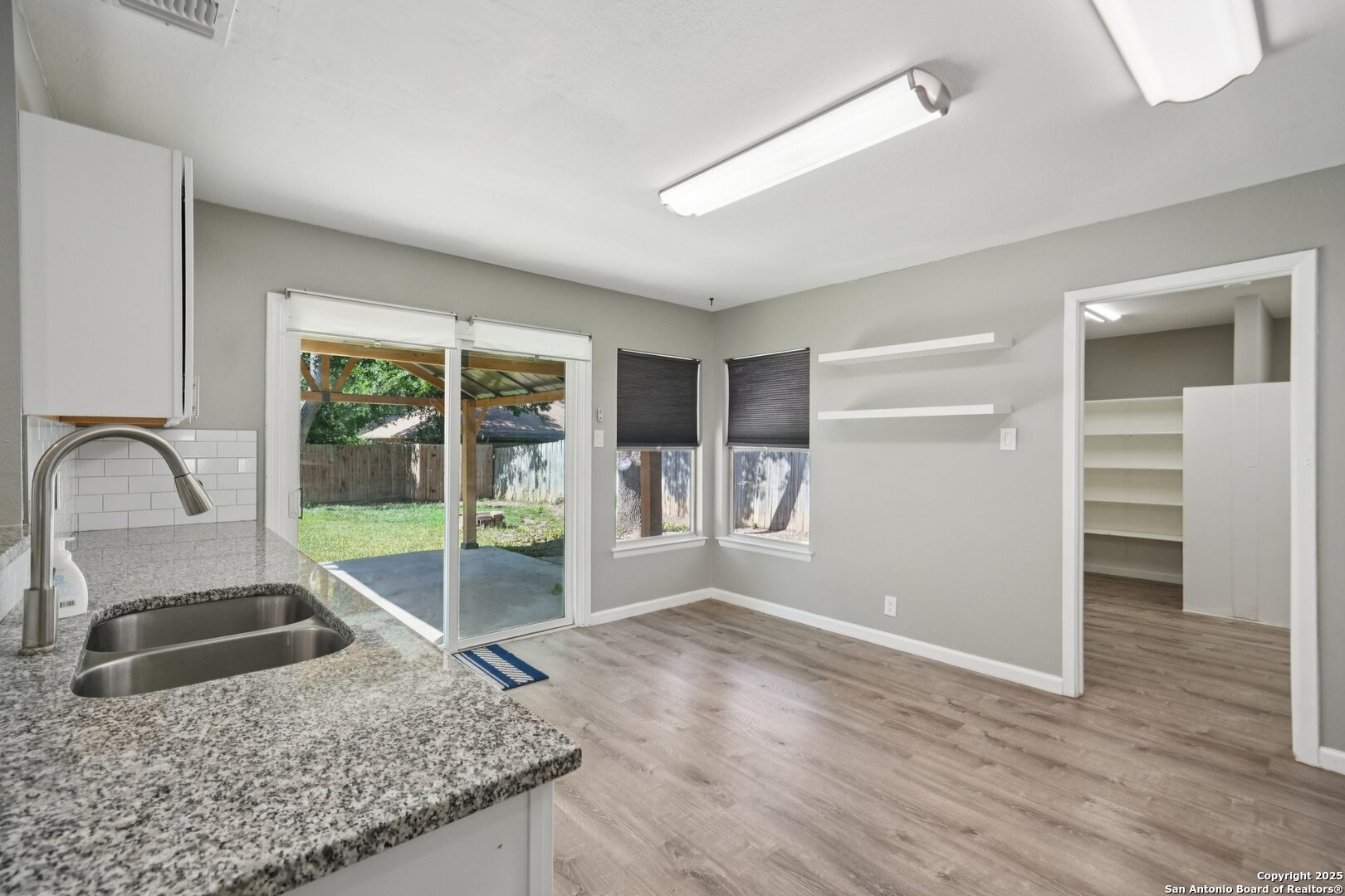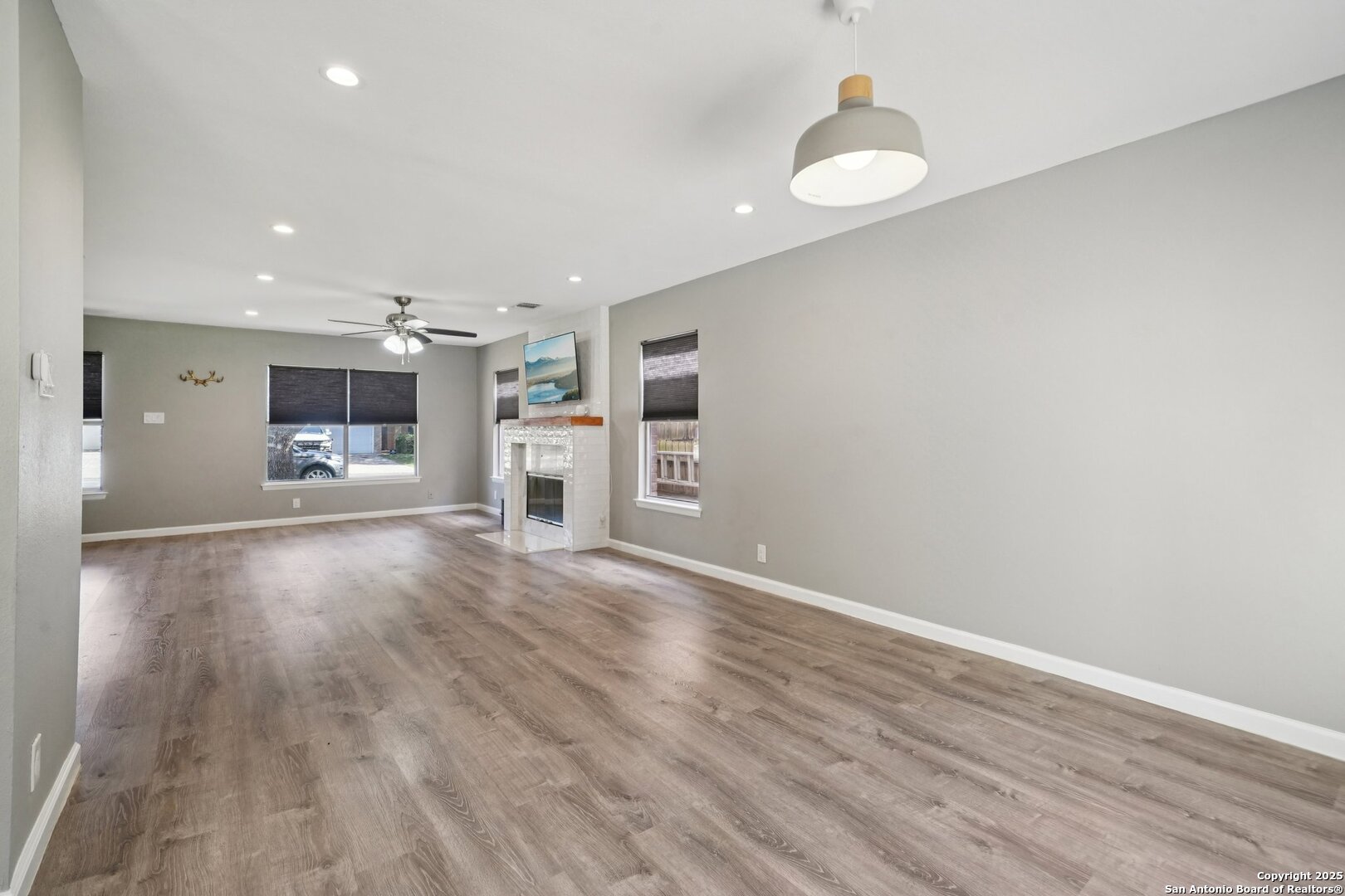 Nicely Updated 2 Story Home with Great Covered Outdoor Living and a huge Back Yard! 2 story home with recent updates including Stainless Appliances, Granite Counters and Wood Burning Fireplace. Located in the Parkwood Neighborhood, enjoy the community pool, tennis courts, park setting and even a dog park! All just down the street. The home has newer appliances, modern plank flooring, wood burning fireplace, HUGE walk in Pantry, HUGE Master Bedroom with updated bathroom and a walk in closet. Ceiling Fans throughout. The home also has a great water softener system installed to help with that hard San Antonio Water.