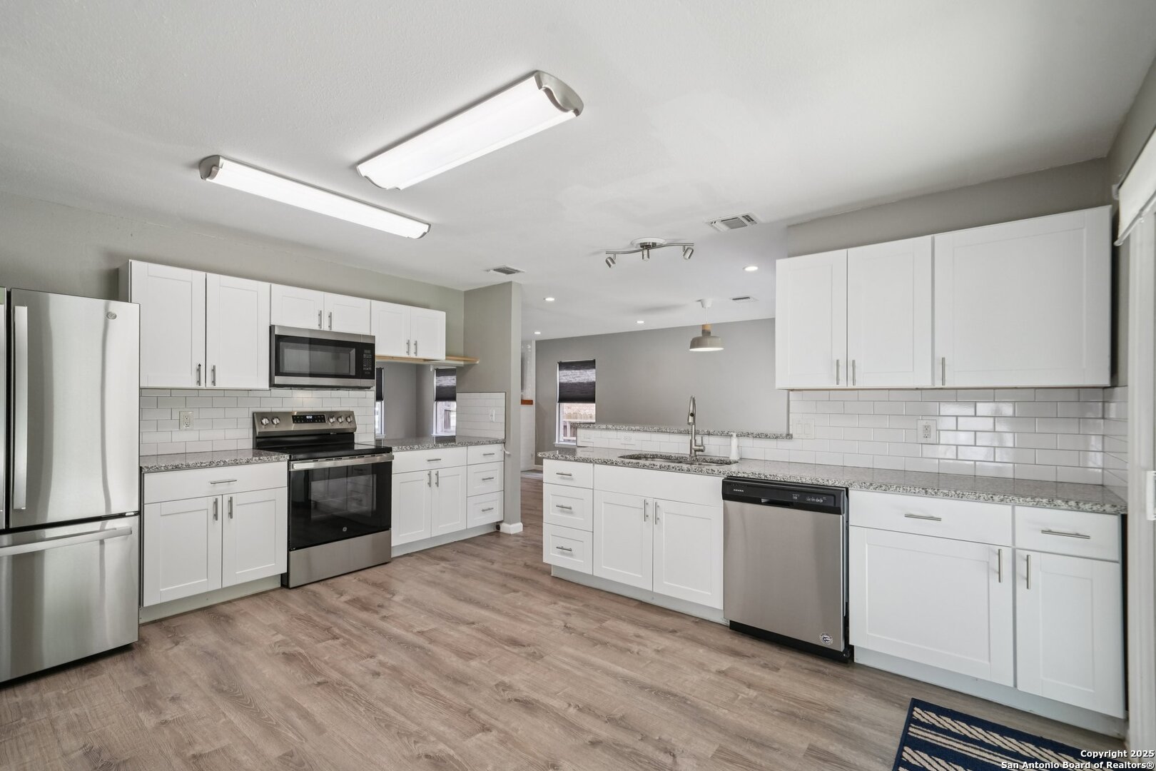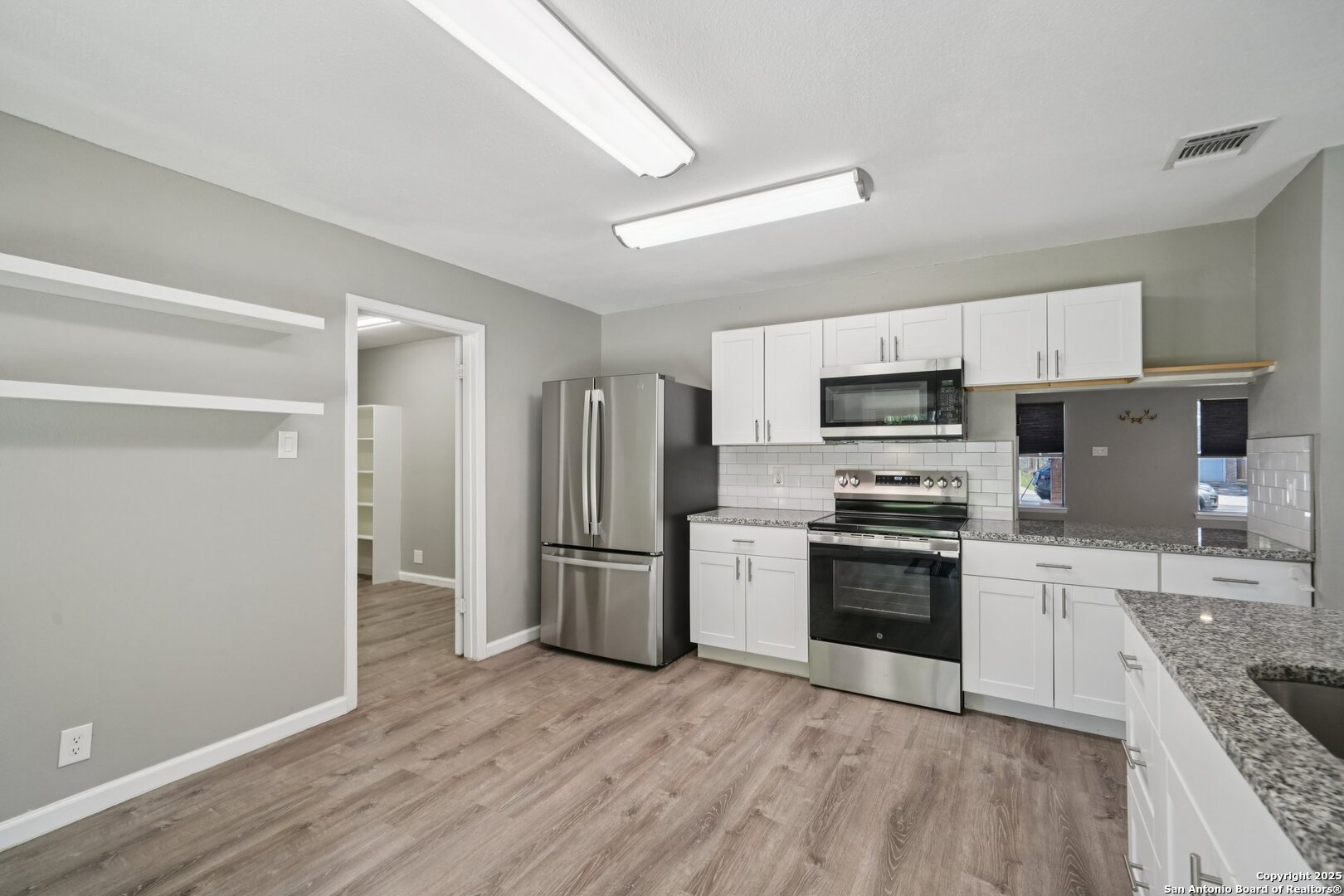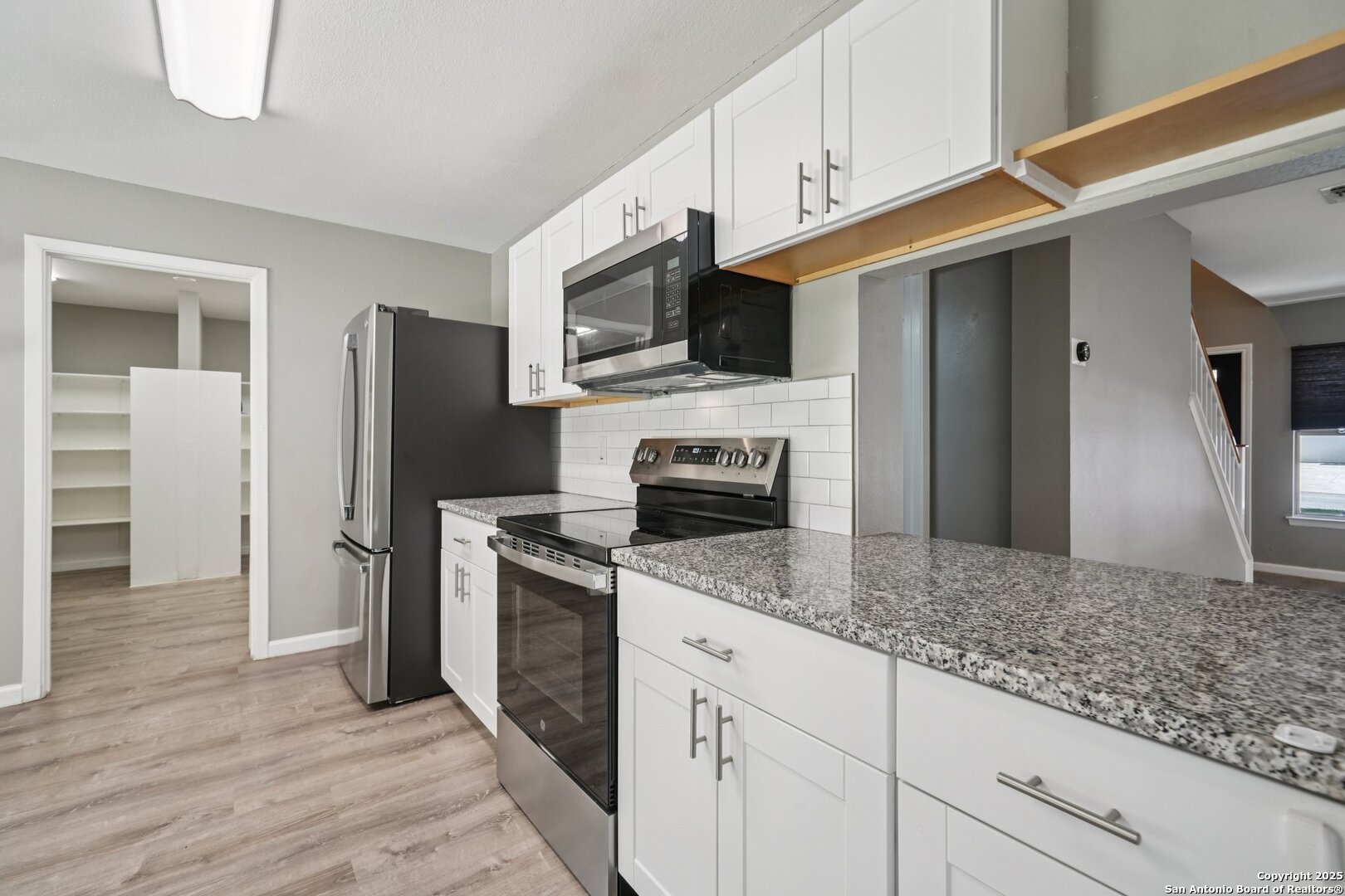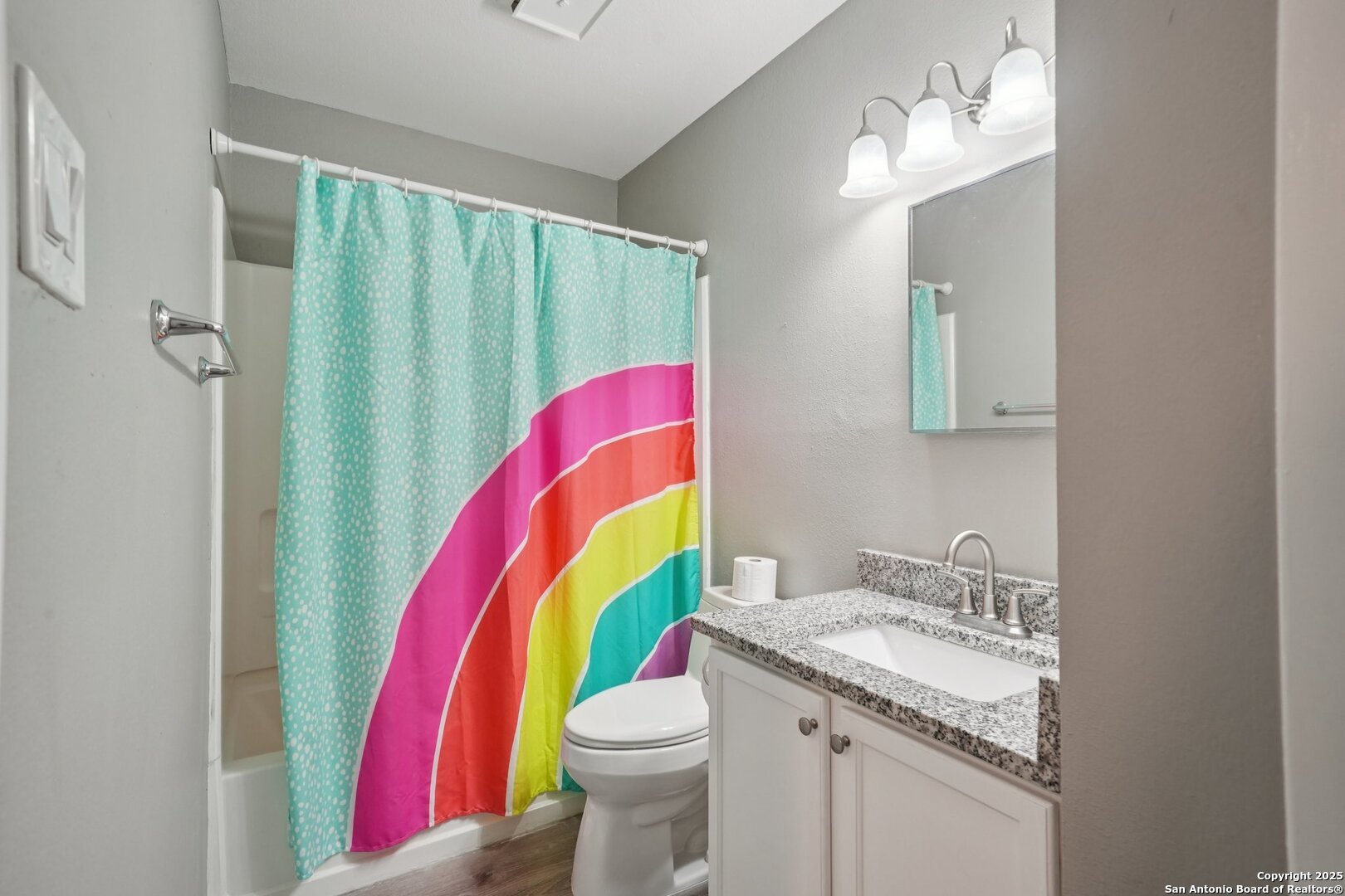 Nicely Updated 2 Story Home with Great Covered Outdoor Living and a huge Back Yard! 2 story home with recent updates including Stainless Appliances, Granite Counters and Wood Burning Fireplace. Located in the Parkwood Neighborhood, enjoy the community pool, tennis courts, park setting and even a dog park! All just down the street. The home has newer appliances, modern plank flooring, wood burning fireplace, HUGE walk in Pantry, HUGE Master Bedroom with updated bathroom and a walk in closet. Ceiling Fans throughout. The home also has a great water softener system installed to help with that hard San Antonio Water.