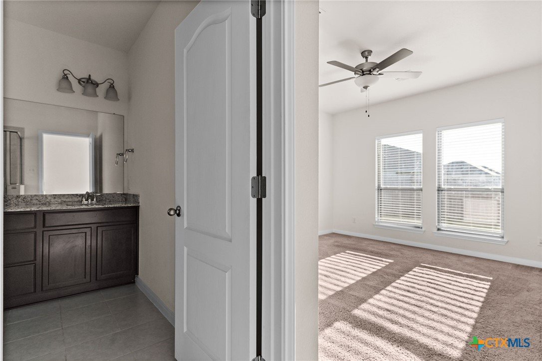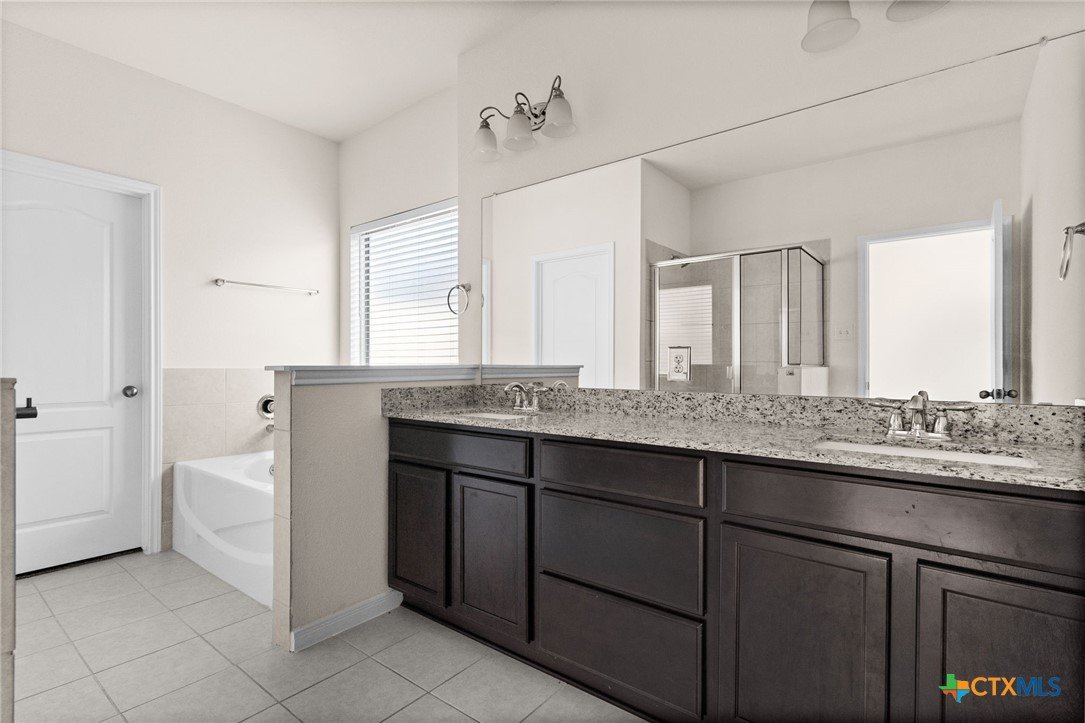 Welcome to this stunning two-story home located in the desirable Oakridge Subdivision of Temple, TX. Built in 2021, this modern home boasts 2609 Sq Ft of living space, featuring 4 spacious bedrooms and 3 full bathrooms. The primary bathroom is a true oasis with a double vanity, separate shower, and a luxurious garden tub. The kitchen is a chef's dream, complete with a walk-in pantry, a functional island, and top-of-the-line stainless steel appliances. The granite counters add a touch of elegance to the space. The living areas are adorned with beautiful tile flooring, while the bedrooms and loft area offer the comfort of plush carpeting. The home also features a walk-in closet for ample storage. The two-car garage provides plenty of space for vehicles or additional storage. The property is enclosed with a wood privacy fence, offering a sense of seclusion and security. This home is a perfect blend of style, comfort, and convenience. Don't miss out on this gem in Temple, TX!