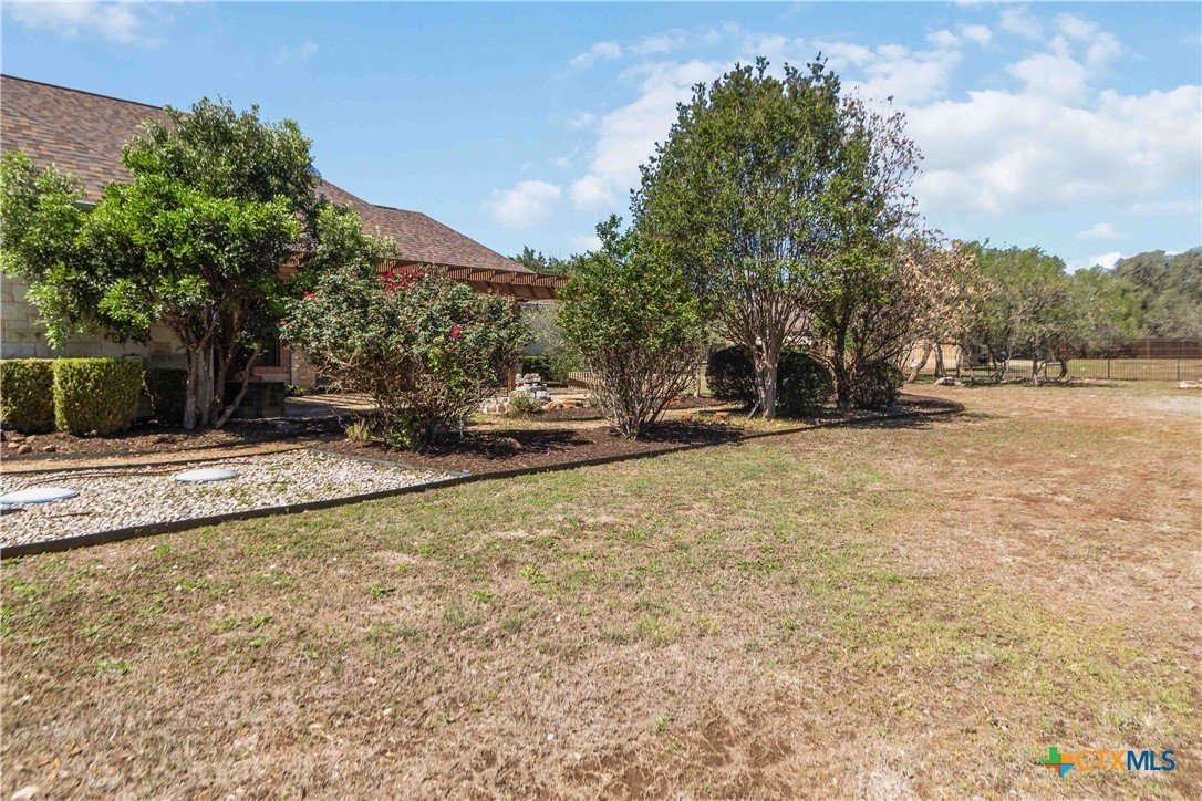Nestled on a spacious 1+ acre lot in San Marcos, this beautifully maintained custom home offers the perfect blend of comfort, functionality, and Hill Country charm. Featuring a circular driveway and an oversized 3-car side-load garage, the property makes an impressive first impression while providing ample parking and storage. Inside, you’ll find hardwood flooring throughout with tile in all wet areas, including the kitchen and breakfast room. The thoughtfully designed layout includes a dedicated office with a built-in desk, a spacious living room with a gas fireplace and built-in entertainment center, and a convenient Jack-and-Jill bathroom connecting secondary bedrooms. The well-appointed laundry room includes a sink and additional storage for everyday ease. Enjoy outdoor living year-round on the large covered back patio overlooking the expansive yard, complete with a storage shed for added versatility. A new roof installed in June 2024 adds peace of mind. With abundant storage, functional living spaces, and quality upgrades throughout, this home offers a wonderful opportunity to enjoy space, privacy, and convenience just minutes from all that San Marcos has to offer.