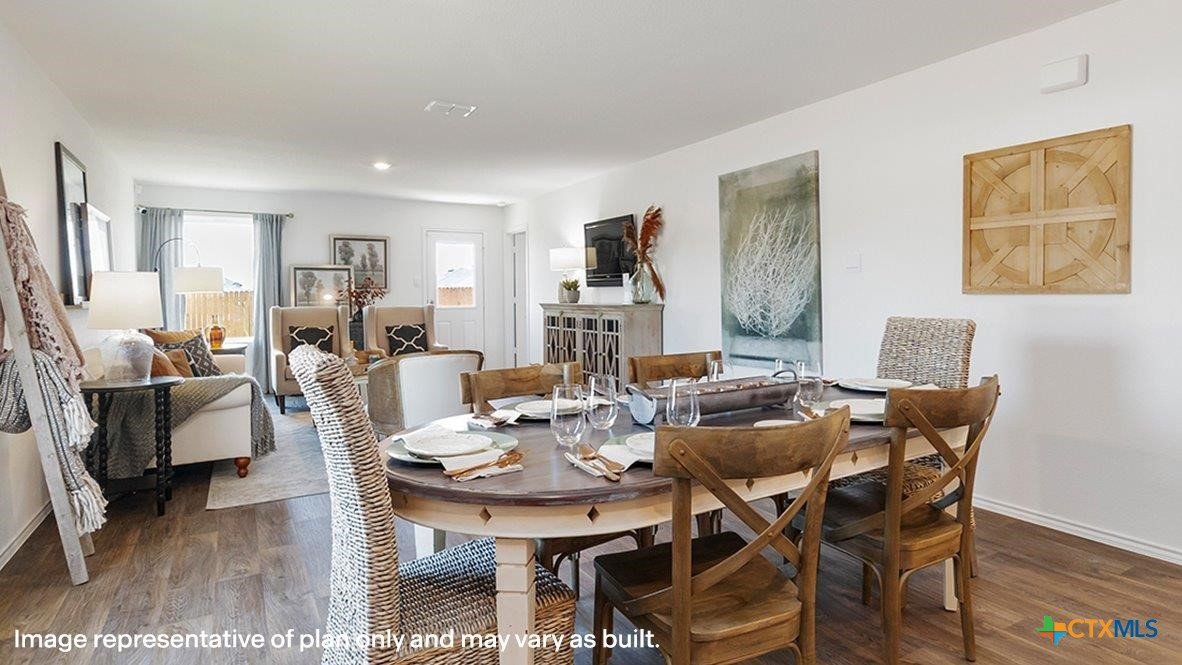Introducing the Estero, a beautifully designed one-story home in our Pecan Creek community in Temple, TX. With approximately 1,572 sq. ft. of carefully planned living space, this 4-bedroom, 2-bath floorplan is perfect for any stage of life. Step inside and be greeted by the open-concept heart of the home – the kitchen and family room. The kitchen boasts a spacious island, sleek stainless-steel appliances, and generous counter space, ideal for everything from meal prep to casual to dining. Just beyond, you’ll find the inviting secondary bedrooms and secondary bathroom, all conveniently situated near the laundry room for easy daily living. Large rear-facing windows flood the family room with natural light, creating a warm and inviting space for relaxing or entertaining. Tucked away for privacy, the primary bedroom offers a peaceful retreat complete with an attached bathroom that features a walk-in shower and a spacious walk-in closet, providing plenty of storage for your essentials. Every D.R. Horton home includes built-in smart home technology, keeping you connected and in control with the Qolsys smart panel – accessible from your phone or even by voice. The Estero isn’t just a house-it’s a place you’ll love to call home. Contact us today to make it yours at Pecan Creek!