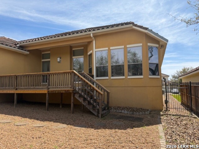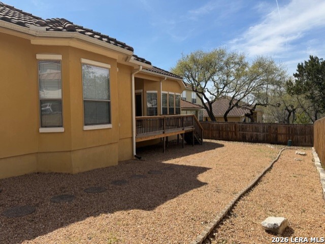 Welcome to 1119 Via Milano - where space, comfort, and location come together beautifully! North San Antonio with Stone Oak shopping and Medical Center close-by. Easy access to Hwy 281 and Loop 1604. Nestled in the desirable San Miguel community in North San Antonio, this spacious home offers the perfect blend of everyday functionality and inviting charm. With over 2,700 sq.ft. of living space, you'll find room to spread out, entertain, and truly feel at home. Step inside to discover a light-filled, open layout designed for modern living. The generous living area flows seamlessly into a well-appointed kitchen - ideal for gatherings, family meals, and making lasting memories. A cozy fireplace anchors the space, adding warmth and character. The home features 4 bedrooms and flexible living areas, giving you options for a home office, guest space, mother-in-law suite, or playroom. The primary suite provides a relaxing retreat, while the additional bedrooms offer comfort and privacy for everyone. Outside, enjoy a sizable backyard with plenty of room to relax on your deck with xeriscaping. A cul-de-sac is behind the home with a green space. This is the best corner-lot in the neighborhood! If you are looking for space, location, and a home that truly fits your lifestyle-1119 Via Milano is a must-see! Washer, dryer & refrigerator do not convey.