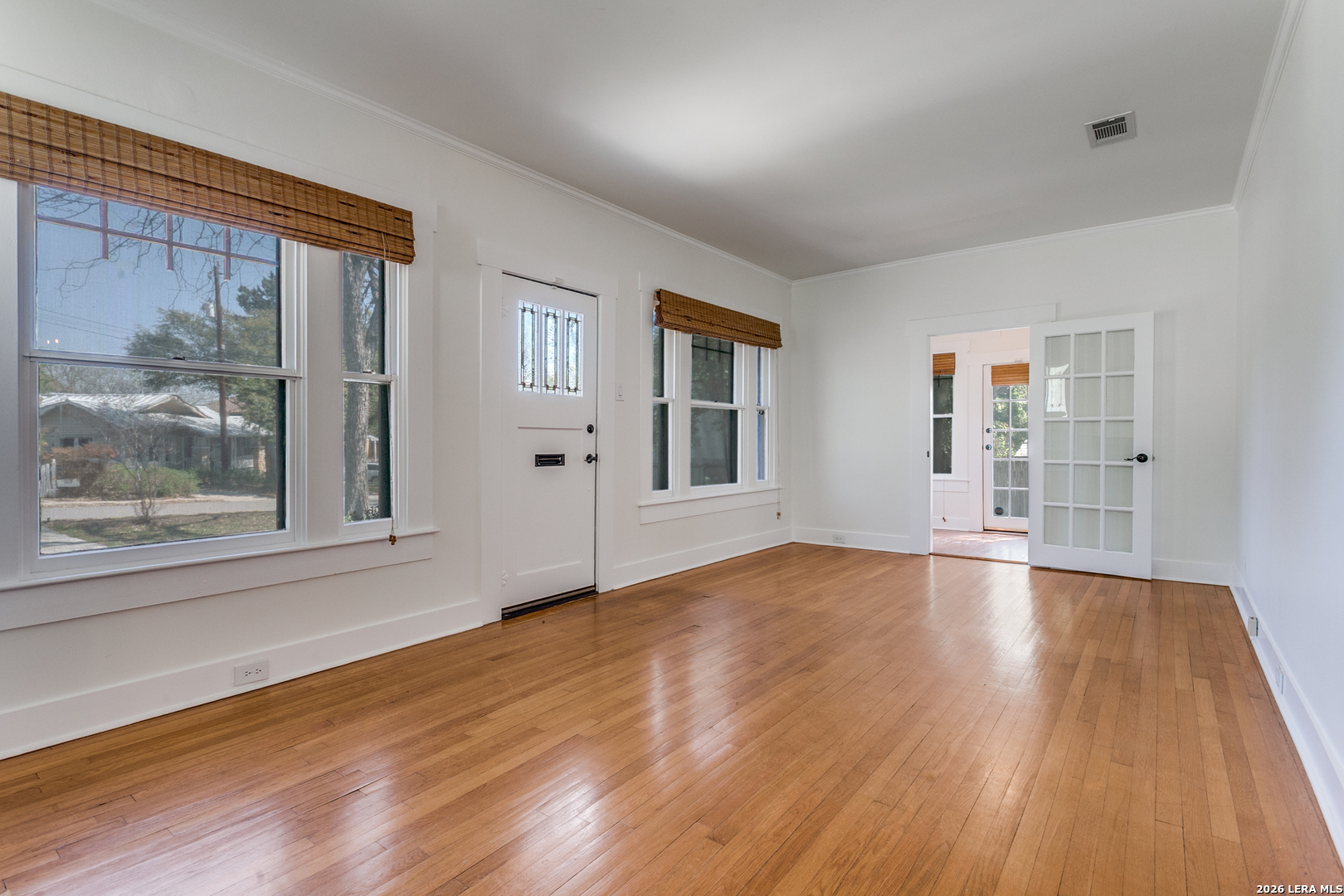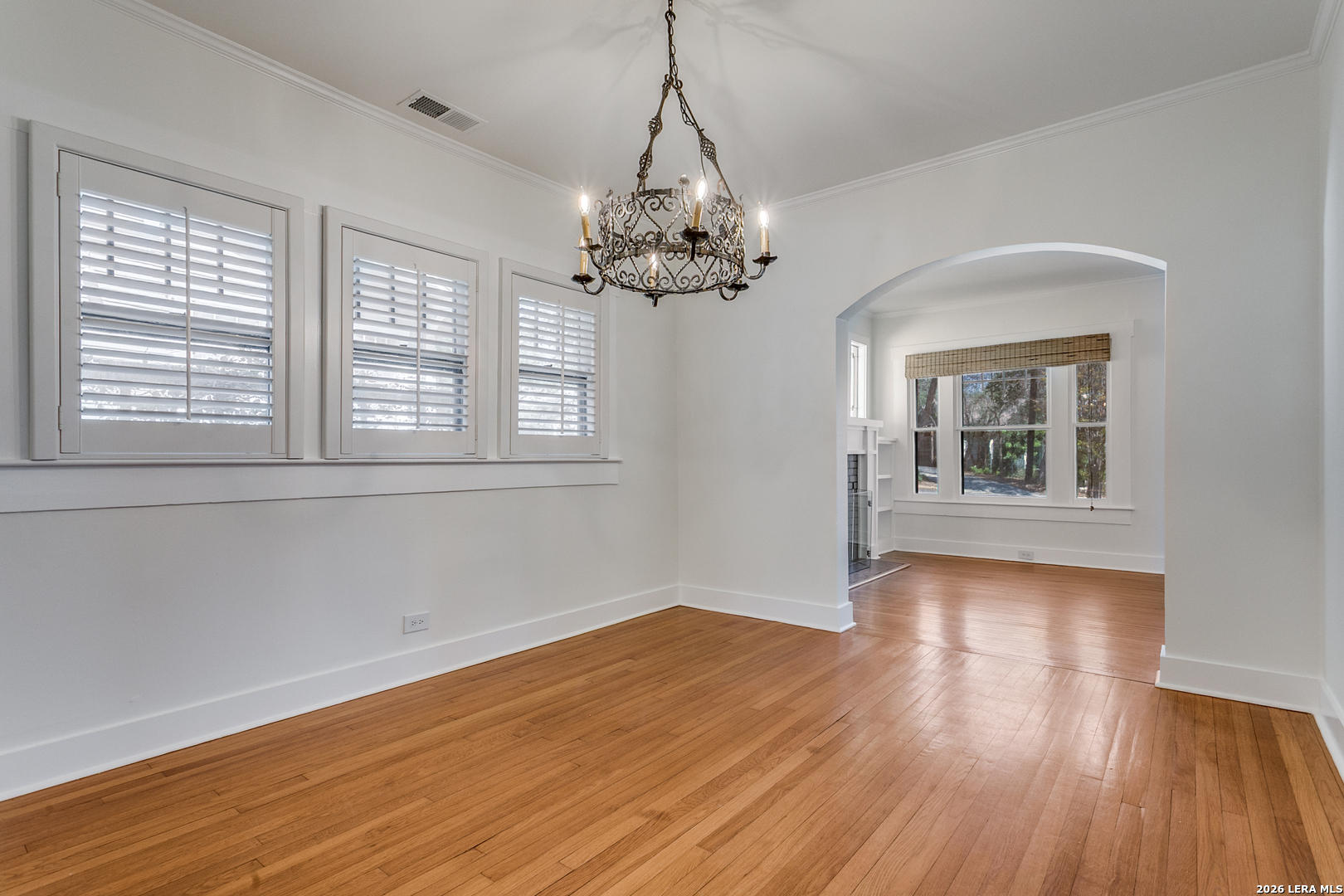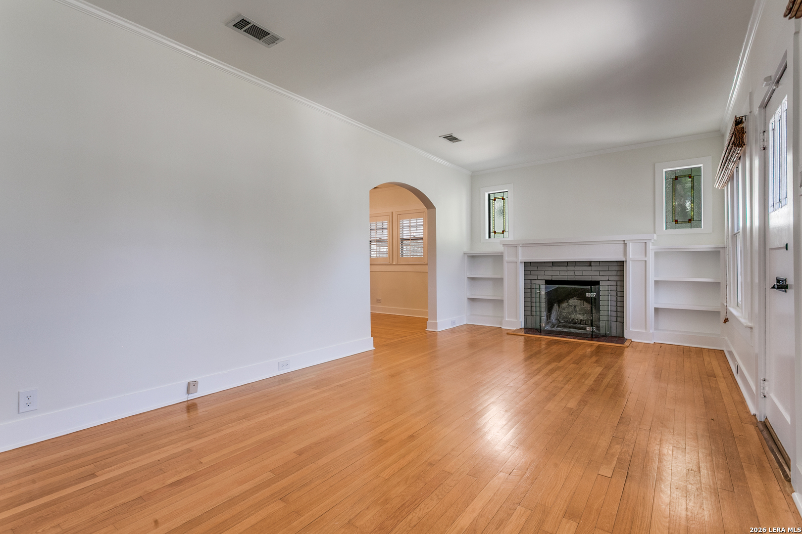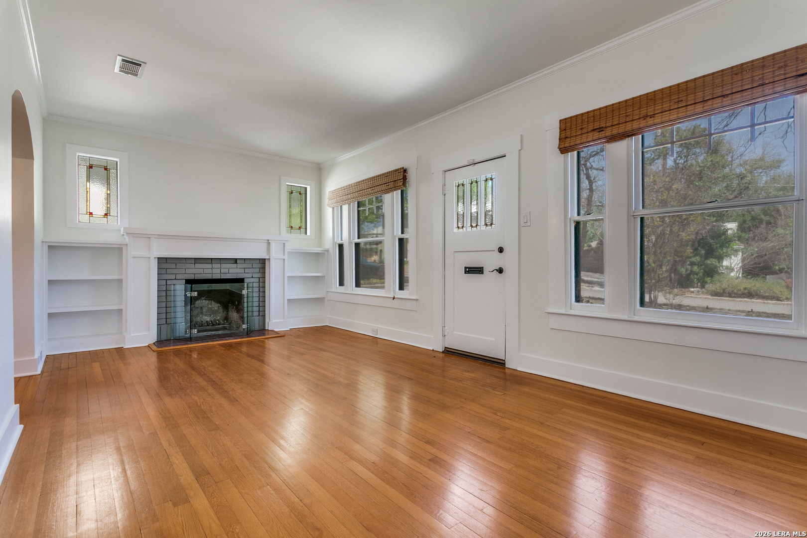 Experience the classic charm of Alamo Heights in this beautifully updated 3-bedroom, 2-bathroom residence. Located within Alamo Heights ISD, the home's character is evident from the moment you arrive, with stained glass detailing on the front door and windows flanking the classic fireplace. Original hardwoods carry this charm from the front living room, complete with custom built-ins and a quaint office nook, into the formal dining area and downstairs bedrooms. From the dining room, the layout flows through the kitchen into a spacious back family room anchored by saltillo tile, additional bookcases, and more stained-glass accents. Both bathrooms have been nicely updated, offering modern convenience while maintaining the home's original charm. The floor plan extends upstairs to a secondary living space and an additional bedroom, providing an ideal retreat for children or guests. Outside, the spacious backyard features low-maintenance rocky landscaping and a functional slab-an ideal foundation for a grill or fire pit. With its versatile living areas and unique architectural details, this home is the perfect fit for someone seeking comfort and character.