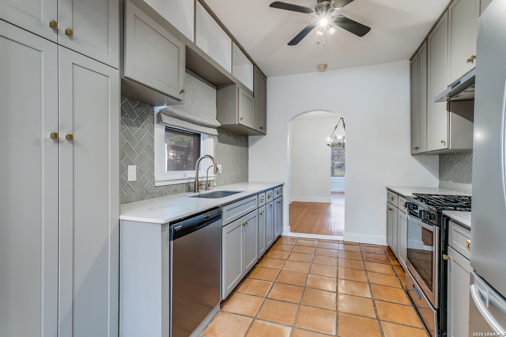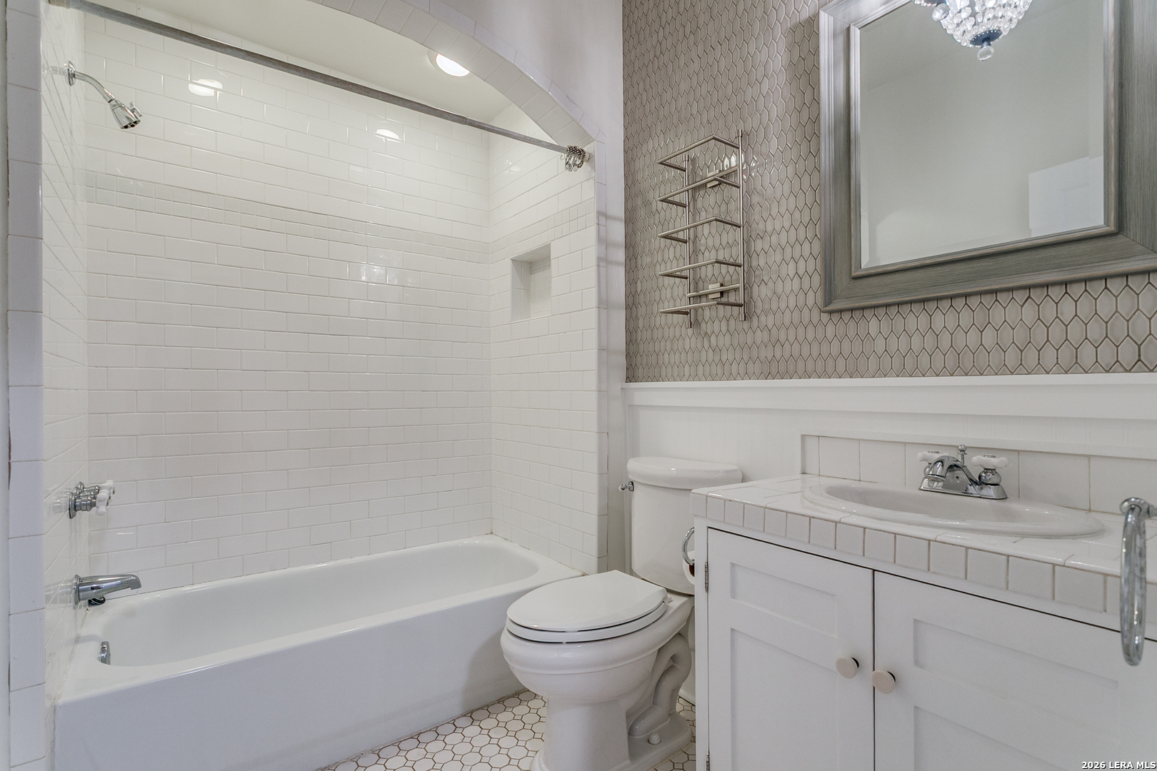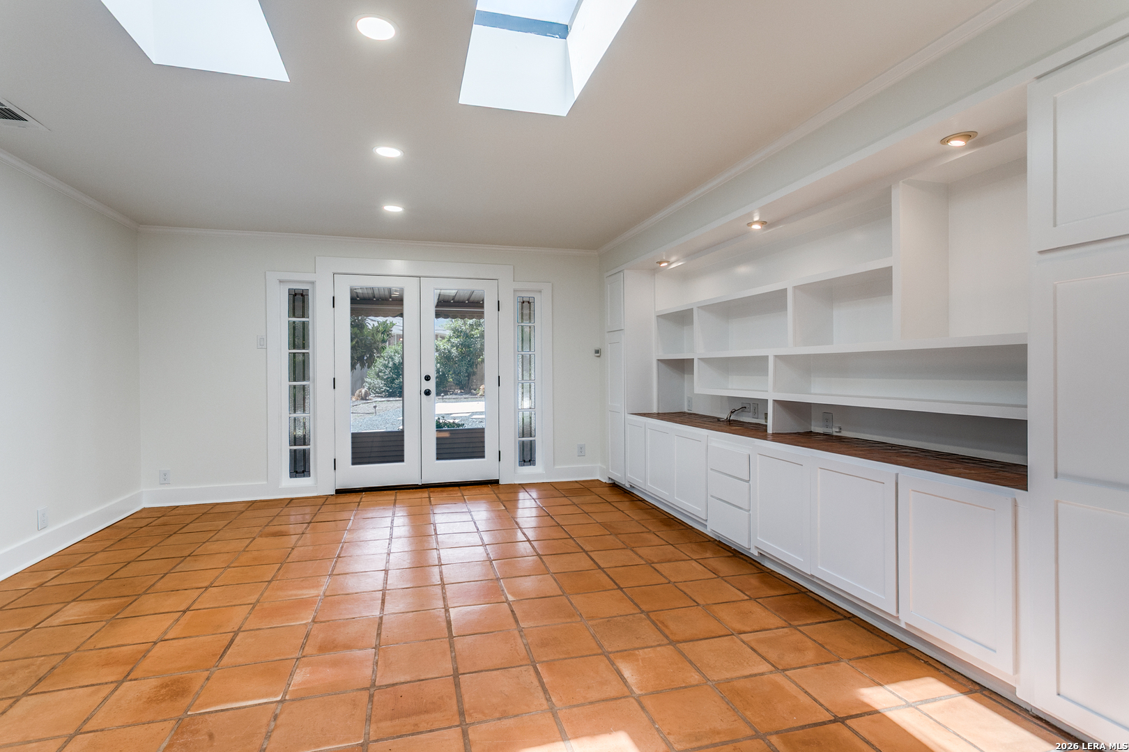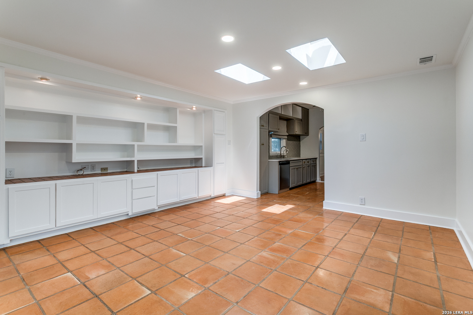 Experience the classic charm of Alamo Heights in this beautifully updated 3-bedroom, 2-bathroom residence. Located within Alamo Heights ISD, the home's character is evident from the moment you arrive, with stained glass detailing on the front door and windows flanking the classic fireplace. Original hardwoods carry this charm from the front living room, complete with custom built-ins and a quaint office nook, into the formal dining area and downstairs bedrooms. From the dining room, the layout flows through the kitchen into a spacious back family room anchored by saltillo tile, additional bookcases, and more stained-glass accents. Both bathrooms have been nicely updated, offering modern convenience while maintaining the home's original charm. The floor plan extends upstairs to a secondary living space and an additional bedroom, providing an ideal retreat for children or guests. Outside, the spacious backyard features low-maintenance rocky landscaping and a functional slab-an ideal foundation for a grill or fire pit. With its versatile living areas and unique architectural details, this home is the perfect fit for someone seeking comfort and character.