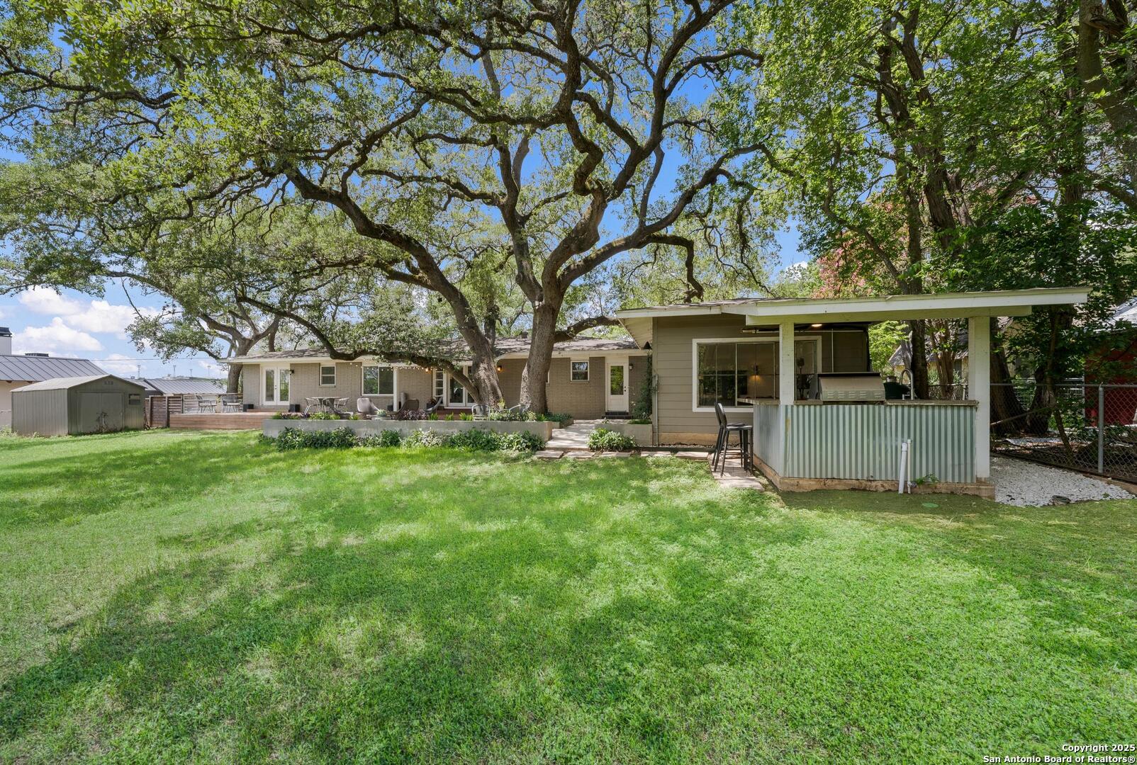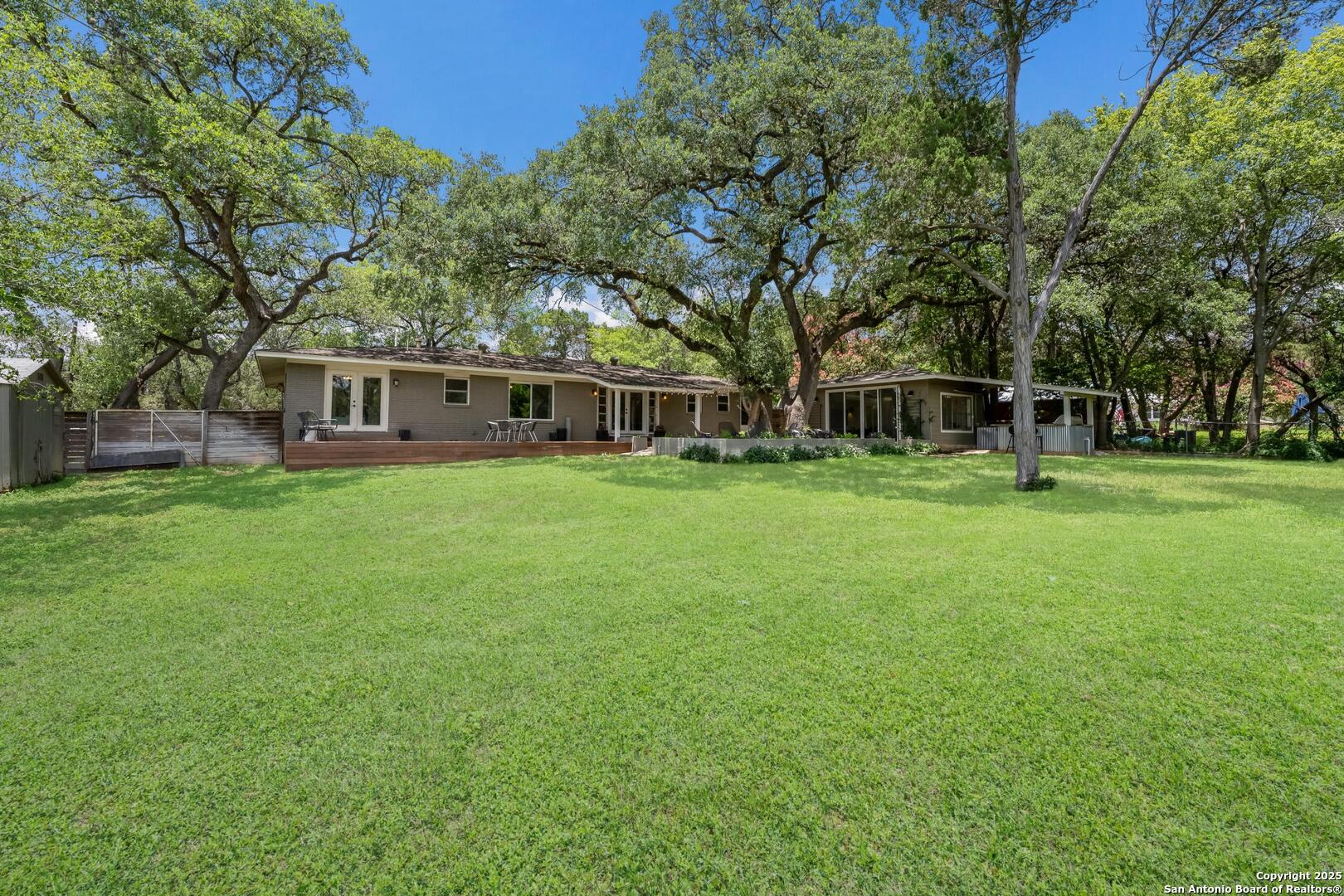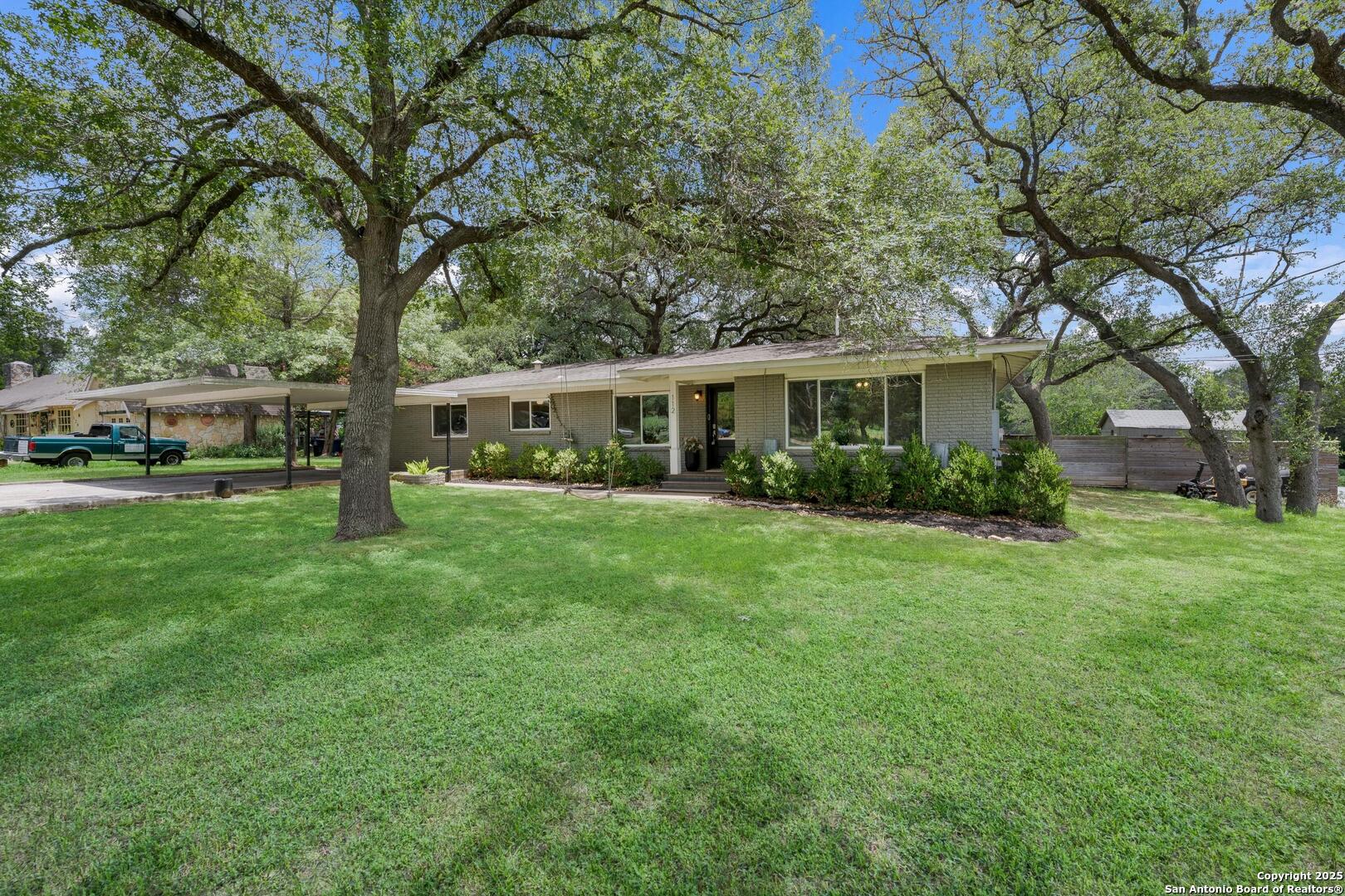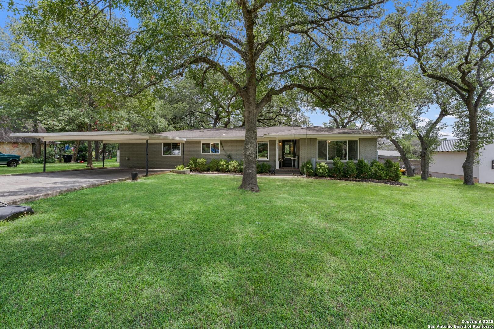 Tucked away on a quiet dead-end street, this 0.69-acre gem offers the perfect blend of privacy, location, and lifestyle-just a golf cart ride from Landa Park and minutes to downtown New Braunfels, Schlitterbahn, and Wurstfest. Whether you're after weekend fun or everyday ease, this home delivers. Plus, you're covered with a recently installed roof! Out back, the good life unfolds. A raised Ipe wood deck-partially covered-sets the stage for laid-back lounging or dinner under the stars. The outdoor kitchen is ready to impress with a built-in grill, sink, space for a wine fridge, and tons of counter space for prepping and serving. Game days, parties, or just soaking in the breeze-the finished out game room is your extra hangout zone, flooded with natural light through oversized sliders. Inside, modern design meets functional flow. The open-concept living area connects seamlessly to a chef-inspired kitchen with a massive island, concrete countertops, custom cabinetry, and smart storage like a built-in sliding trash bin. Wood flooring, recessed lighting, and tinted windows add warmth and energy efficiency throughout. The owner's suite offers a calming retreat with a slat wood accent wall, walk-in closet, and stylish en suite bath. Every detail-indoors and out-is dialed in for comfortable living and easy entertaining, right in the heart of one of New Braunfels' most sought-after neighborhoods.