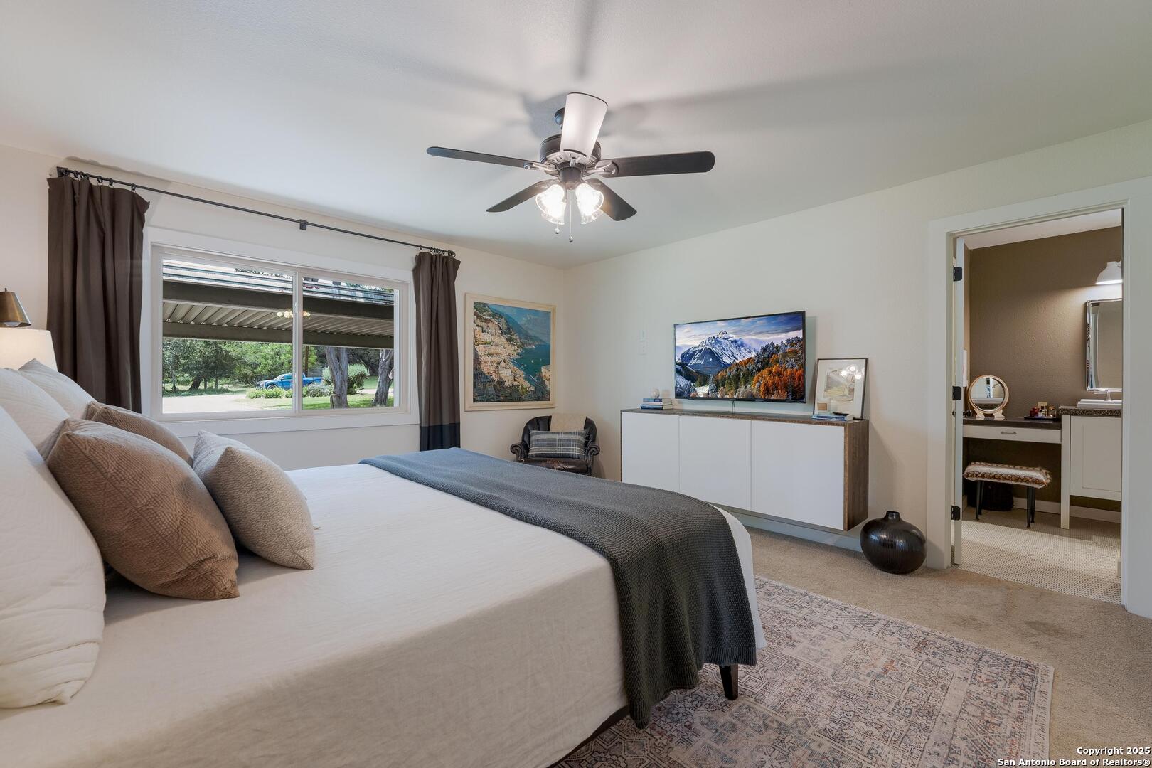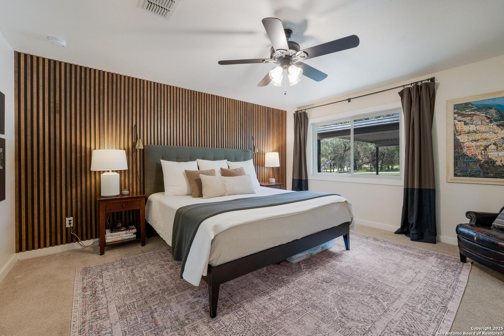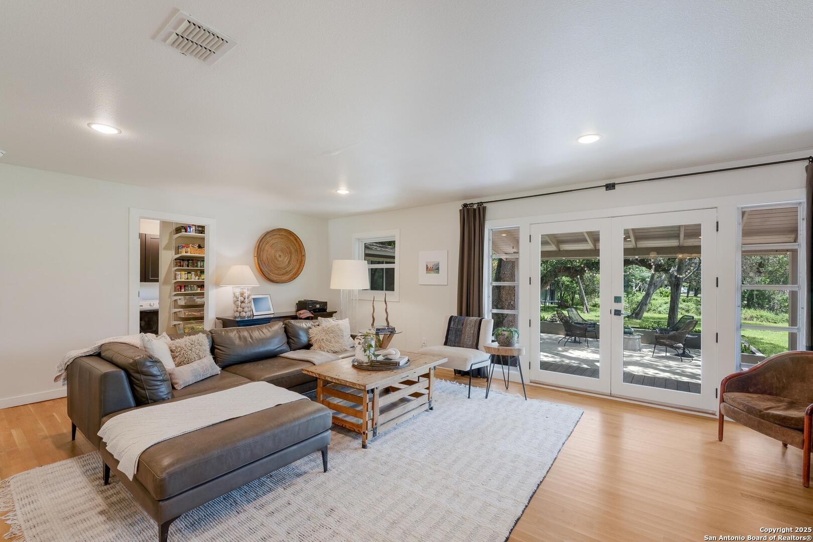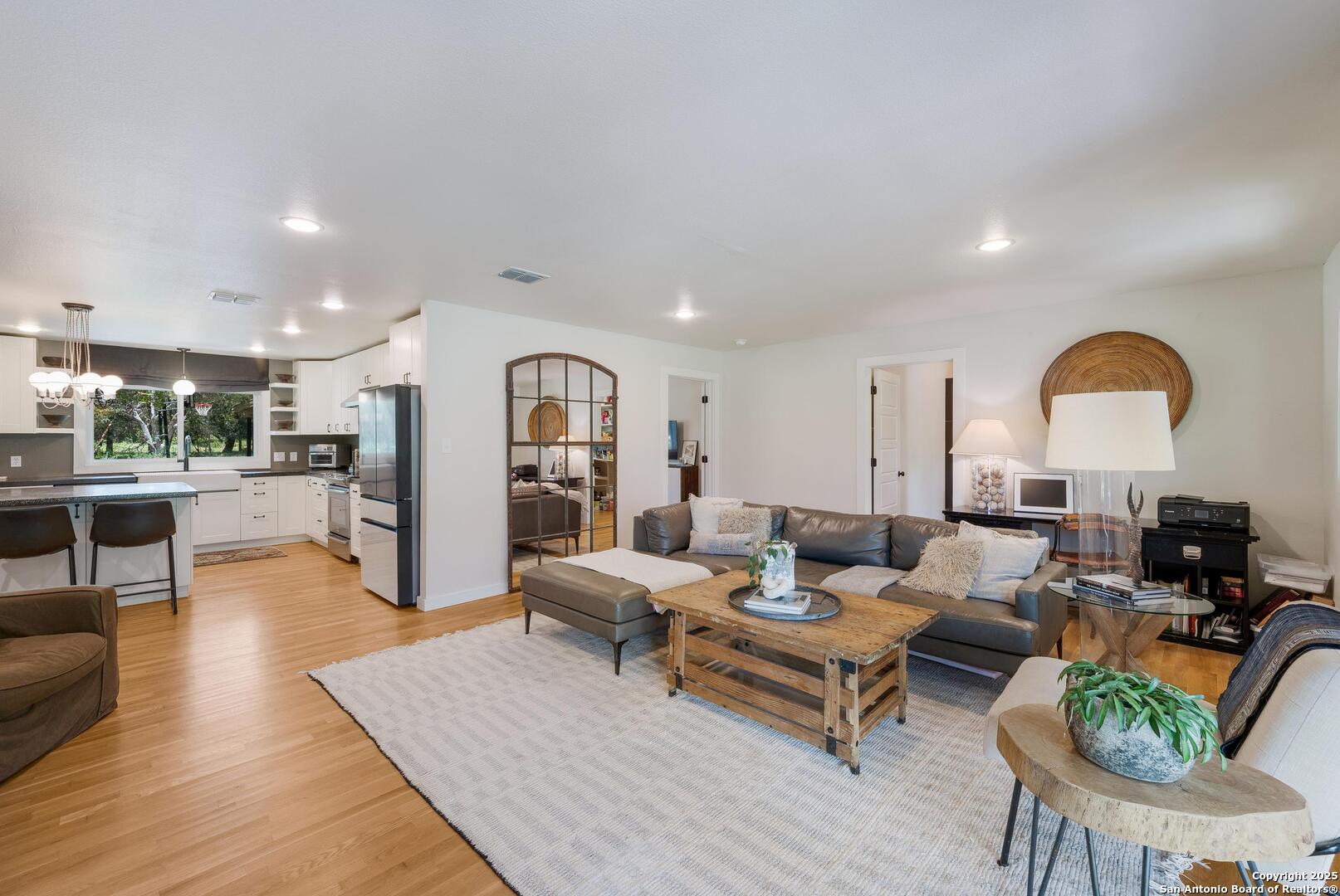 Tucked away on a quiet dead-end street, this 0.69-acre gem offers the perfect blend of privacy, location, and lifestyle-just a golf cart ride from Landa Park and minutes to downtown New Braunfels, Schlitterbahn, and Wurstfest. Whether you're after weekend fun or everyday ease, this home delivers. Plus, you're covered with a recently installed roof! Out back, the good life unfolds. A raised Ipe wood deck-partially covered-sets the stage for laid-back lounging or dinner under the stars. The outdoor kitchen is ready to impress with a built-in grill, sink, space for a wine fridge, and tons of counter space for prepping and serving. Game days, parties, or just soaking in the breeze-the finished out game room is your extra hangout zone, flooded with natural light through oversized sliders. Inside, modern design meets functional flow. The open-concept living area connects seamlessly to a chef-inspired kitchen with a massive island, concrete countertops, custom cabinetry, and smart storage like a built-in sliding trash bin. Wood flooring, recessed lighting, and tinted windows add warmth and energy efficiency throughout. The owner's suite offers a calming retreat with a slat wood accent wall, walk-in closet, and stylish en suite bath. Every detail-indoors and out-is dialed in for comfortable living and easy entertaining, right in the heart of one of New Braunfels' most sought-after neighborhoods.