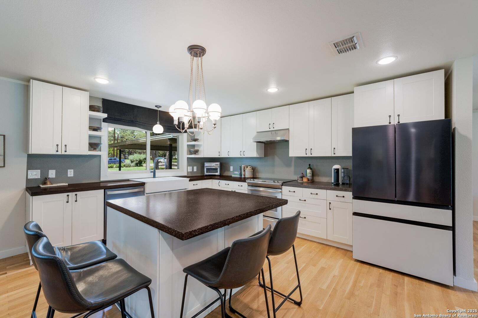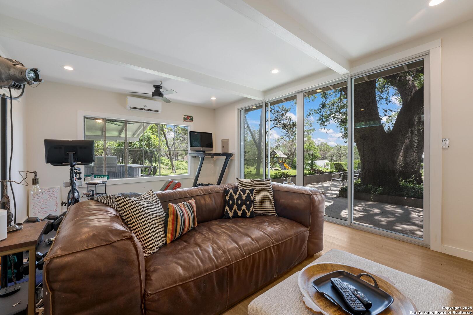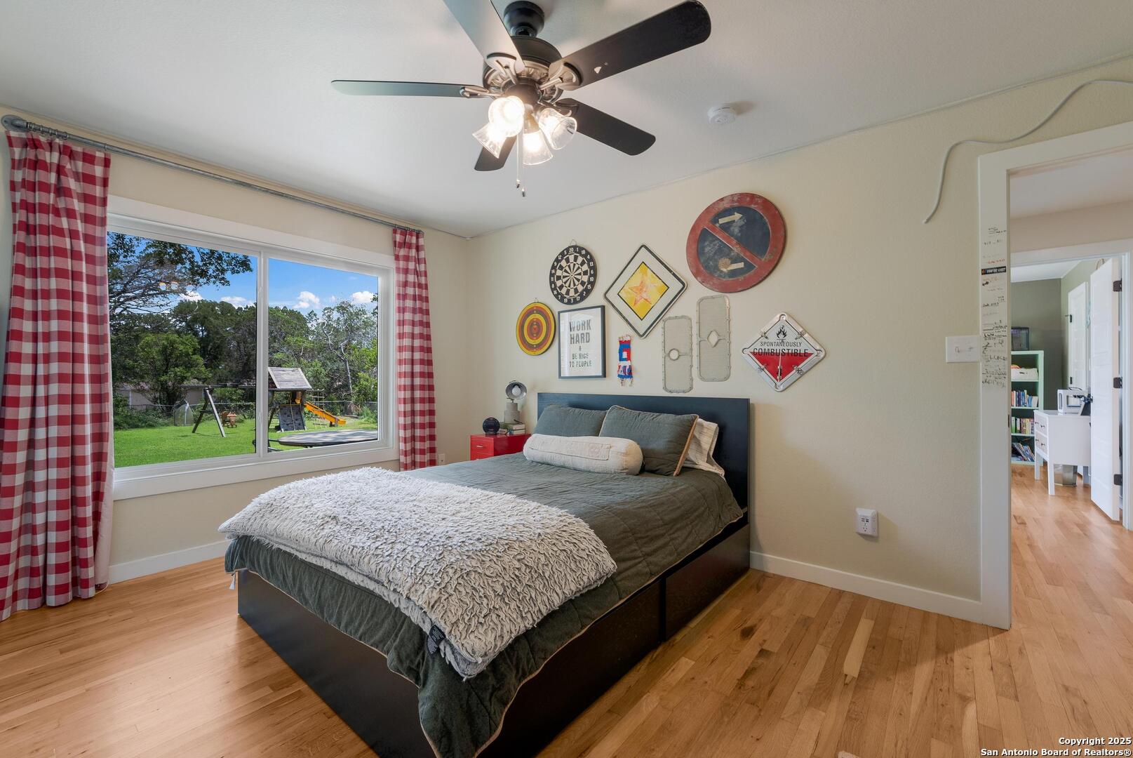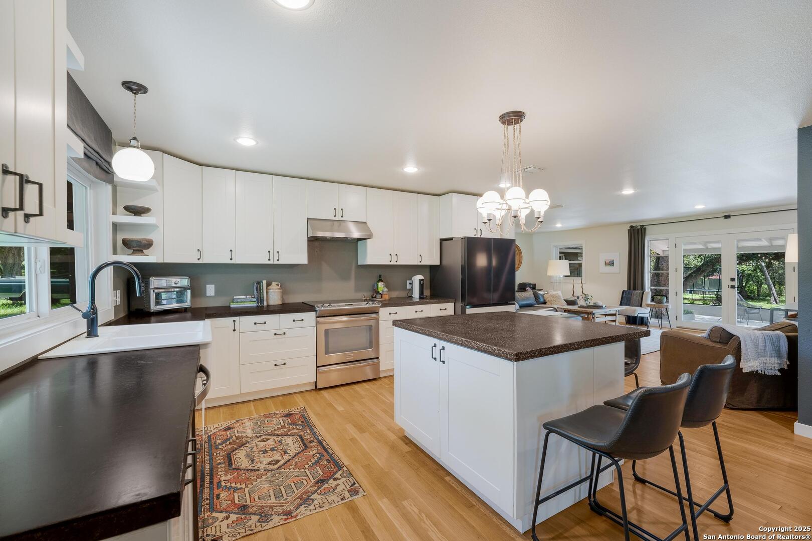 Tucked away on a quiet dead-end street, this 0.69-acre gem offers the perfect blend of privacy, location, and lifestyle-just a golf cart ride from Landa Park and minutes to downtown New Braunfels, Schlitterbahn, and Wurstfest. Whether you're after weekend fun or everyday ease, this home delivers. Plus, you're covered with a recently installed roof! Out back, the good life unfolds. A raised Ipe wood deck-partially covered-sets the stage for laid-back lounging or dinner under the stars. The outdoor kitchen is ready to impress with a built-in grill, sink, space for a wine fridge, and tons of counter space for prepping and serving. Game days, parties, or just soaking in the breeze-the finished out game room is your extra hangout zone, flooded with natural light through oversized sliders. Inside, modern design meets functional flow. The open-concept living area connects seamlessly to a chef-inspired kitchen with a massive island, concrete countertops, custom cabinetry, and smart storage like a built-in sliding trash bin. Wood flooring, recessed lighting, and tinted windows add warmth and energy efficiency throughout. The owner's suite offers a calming retreat with a slat wood accent wall, walk-in closet, and stylish en suite bath. Every detail-indoors and out-is dialed in for comfortable living and easy entertaining, right in the heart of one of New Braunfels' most sought-after neighborhoods.