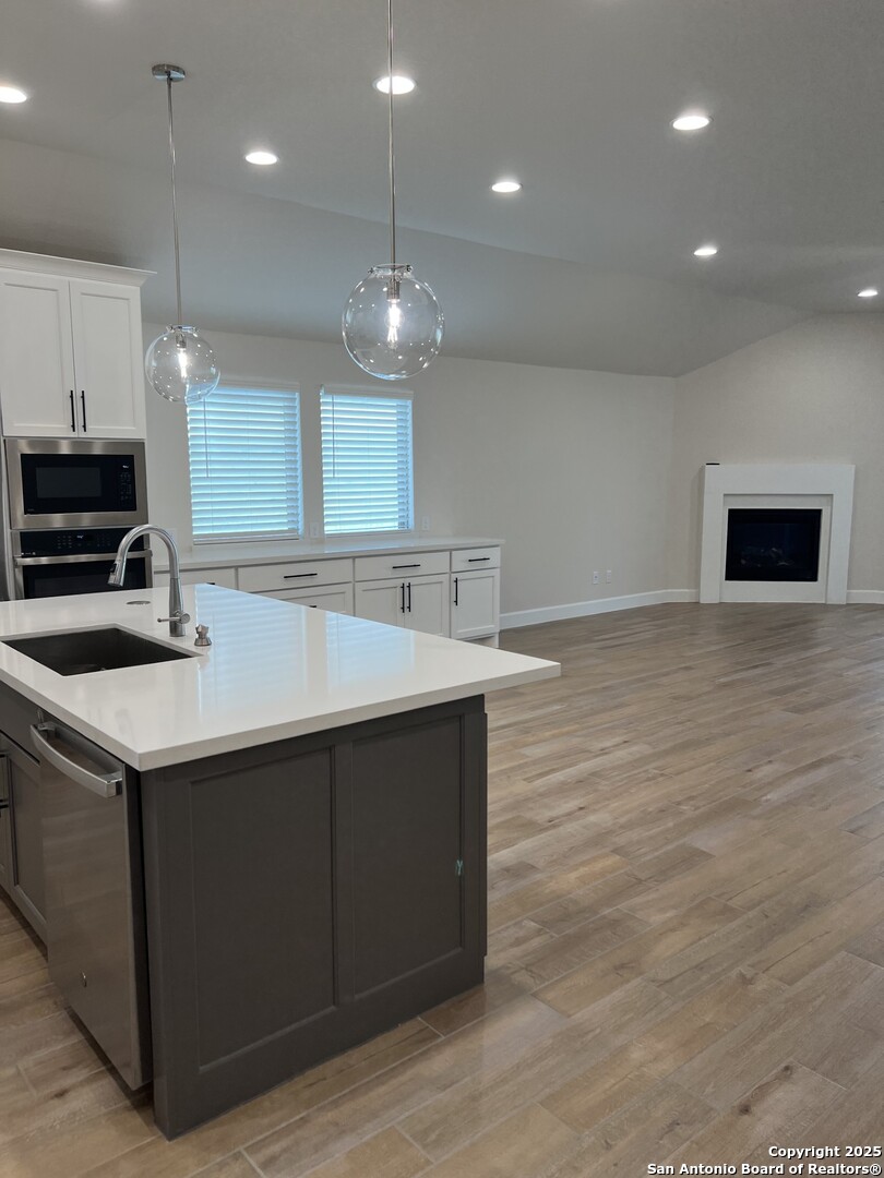 2024 Perry Home in the highly desirable Ranches of Creekside community. This 4-bedroom, 3.5-bath with home office features high ceilings, an open-concept floor plan, fireplace, and a wall of windows in the living room. The kitchen boasts a 5-burner gas cooktop, corner pantry, and kitchen island. The primary suite offers a wall of windows, dual vanities, a garden tub, separate glass-enclosed shower, and two closets. The home offers a covered patio and fully fenced backyard. The 2+ car garage, mud room, and dedicated laundry room round out this gorgeous home. Located within Boerne ISD. As part of the Ranches of Creekside community, you will have access to resort-style amenities including a pool and playground.