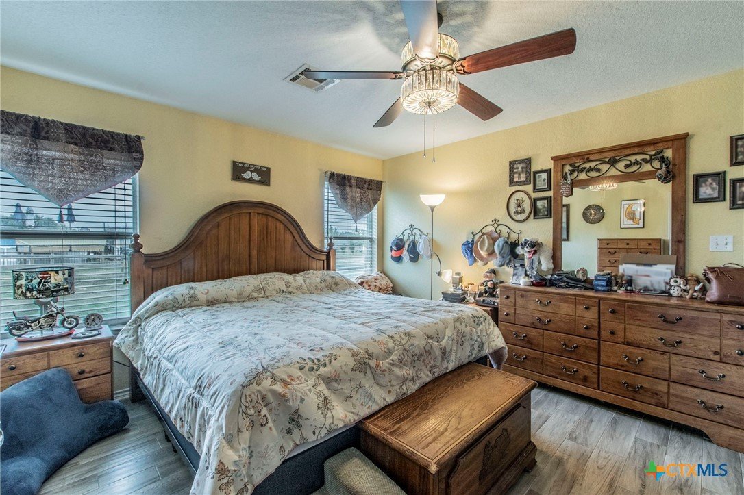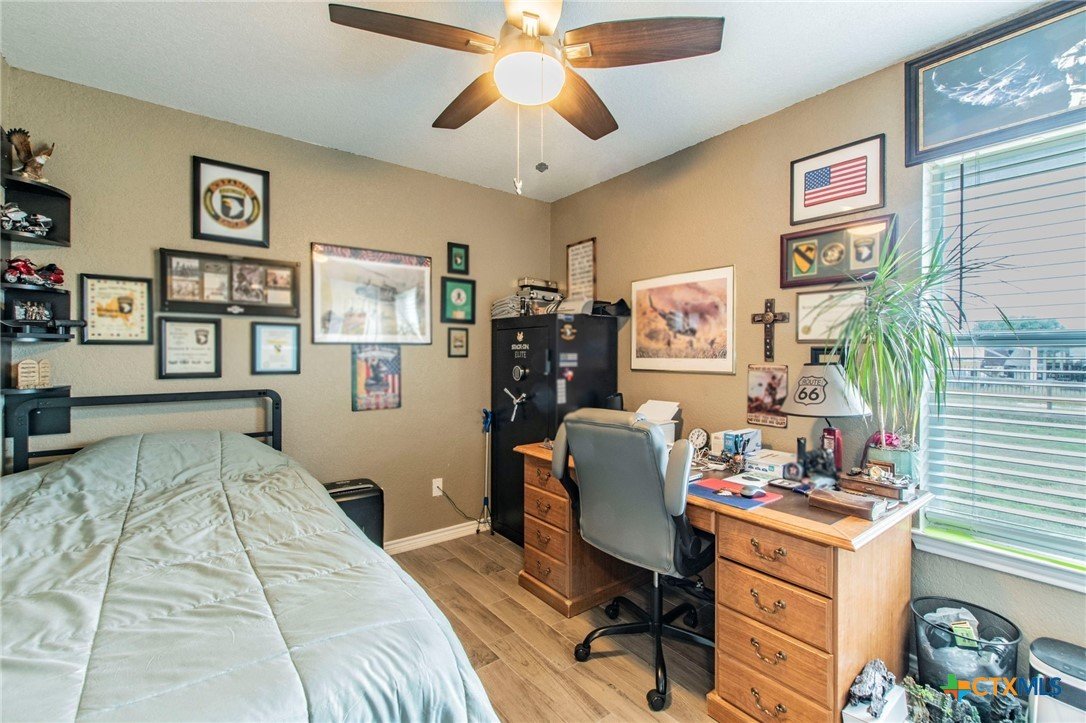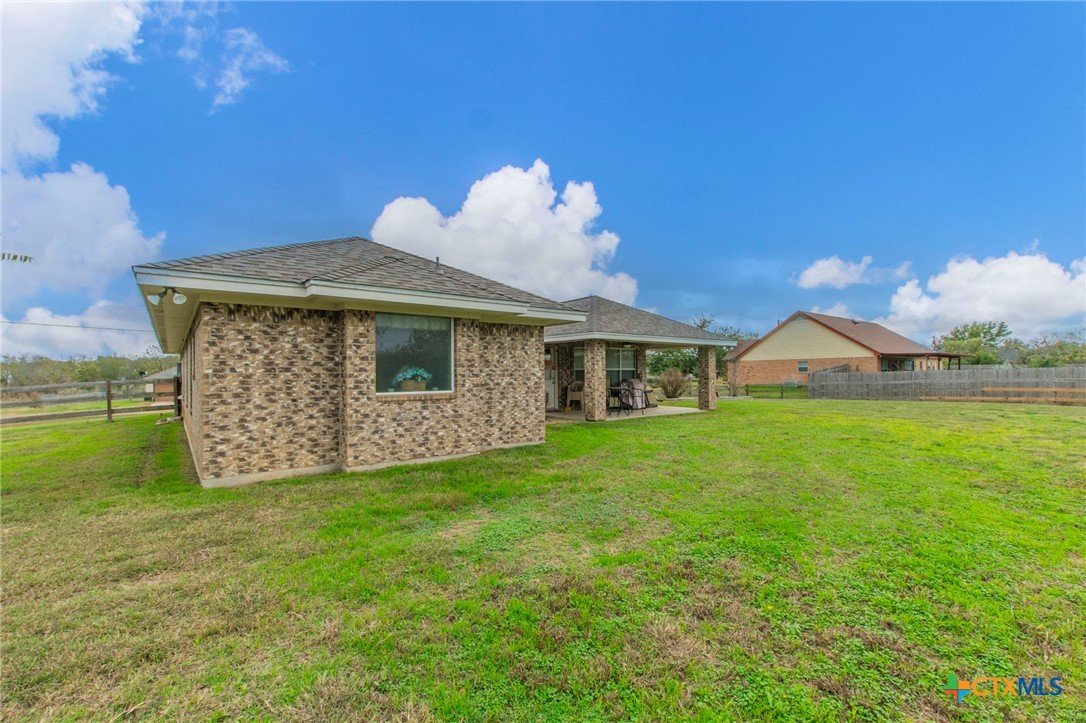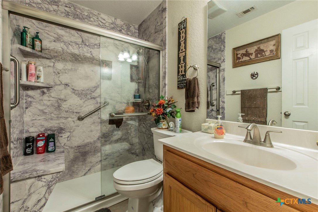 Welcome to this beautifully maintained 4-bedroom, 2-bathroom home offering approximately 1,682 sq. ft. of single-story living on a spacious 1-acre lot in Central Texas. The open layout features all-tile flooring throughout, granite countertops, updated kitchen appliances, and ceiling fans in the living room, all bedrooms, and the back patio. Both the primary and guest bathrooms have been updated with walk-in showers, and the primary suite is further enhanced with dual walk-in closets. The property also offers a fenced-in backyard, a covered patio, and an outdoor storage building. Major improvements include a new roof on both the home and storage building, new plumbing, and a new HVAC system. This well-cared-for property offers comfort, convenience, and valuable updates, making it a solid choice for buyers seeking country living just minutes from downtown Salado.