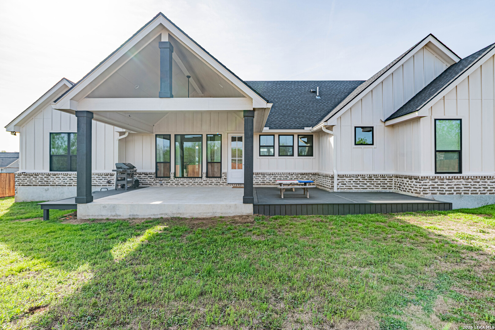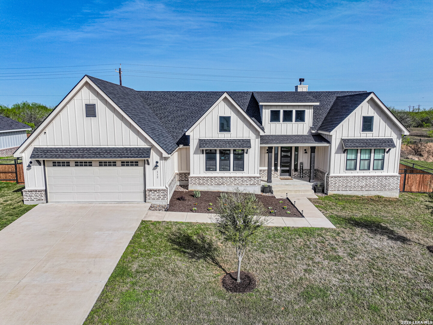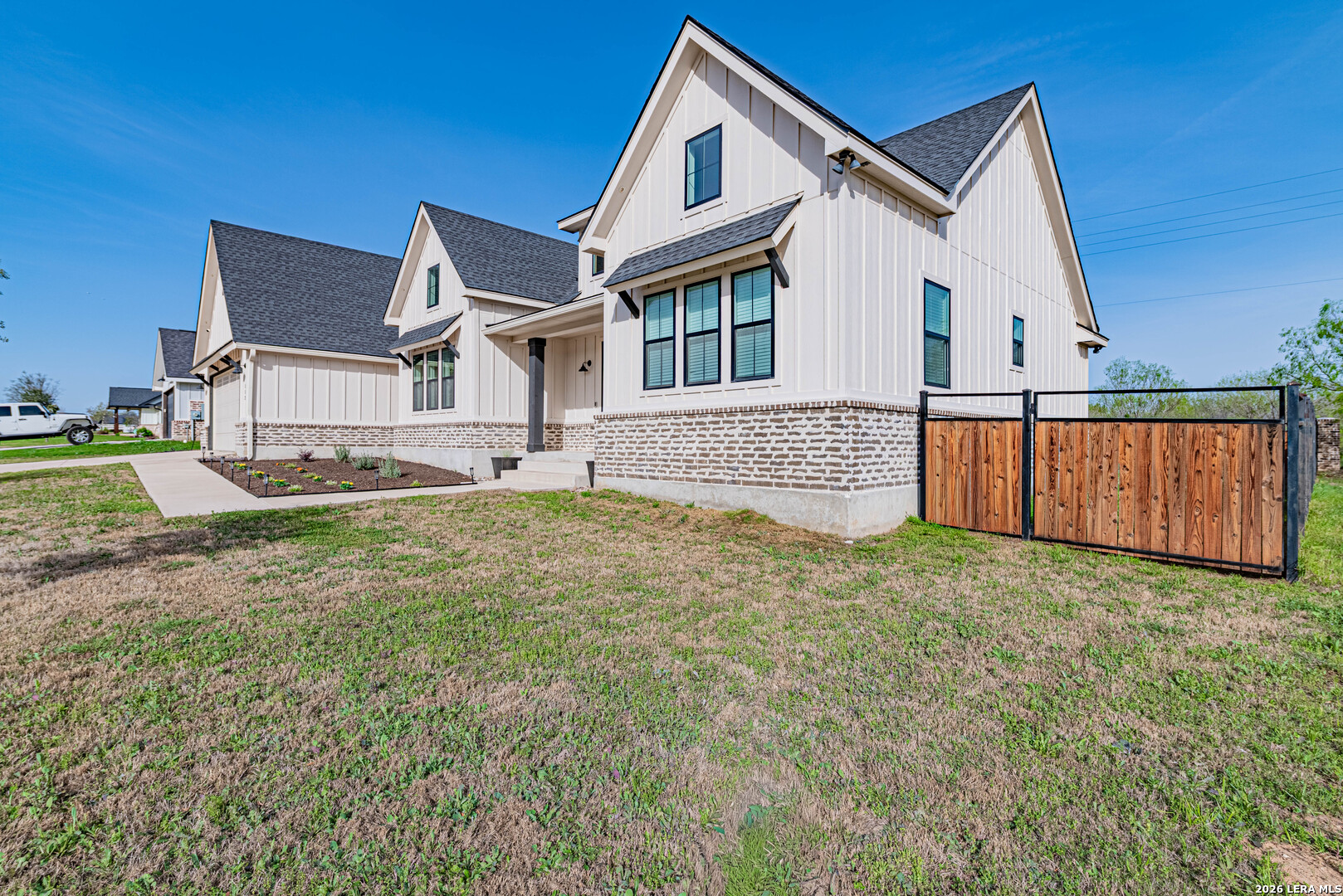 Prepare to be captivated! The perfect blend of farmhouse charm and contemporary design, boasting beautiful curb appeal in the coveted Woodbridge Farms community! Step inside and be greeted by a highly functional and inviting open floor plan, featuring 3 spacious bedrooms with 2 full bathrooms, and 1 half bathroom, alongside a versatile dining/flex room. Luxury vinyl plank flooring flows seamlessly throughout the main living areas, complemented by stylish tile in the laundry room and bathrooms. The heart of the home is the kitchen, a true sanctuary, overlooking an oversized living room warmed by a cozy wood-burning fireplace. Gourmet kitchen features include solid wood shaker cabinets, gleaming quartz countertops, and a chef-inspired walk-in pantry accessible through a charming barn door. The primary suite is a true retreat, complete with two generous walk-in closets and a lavish primary bathroom. Indulge in the separate vanities, a separate free-standing soaking tub, and a luxurious walk-in shower with bench seat. And now, the outdoor oasis! Spacious backyard with a covered patio, additional decking, and no direct neighbors behind you! Sprinkler system! Close proximity to subdivision park with outdoor seating/gazebo and walking trails. Conveniently located and walking distance to schools, shopping and local restaurants!