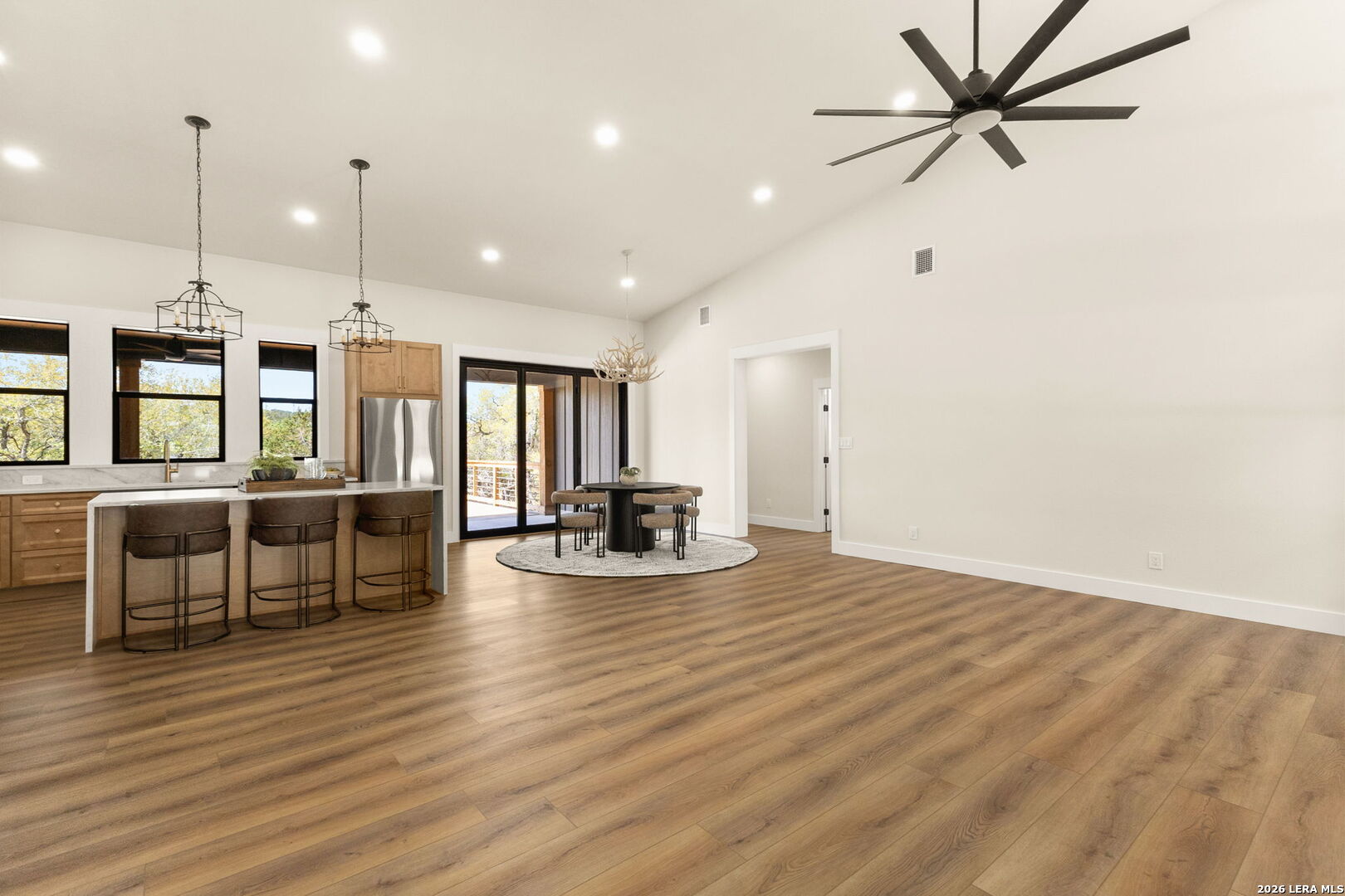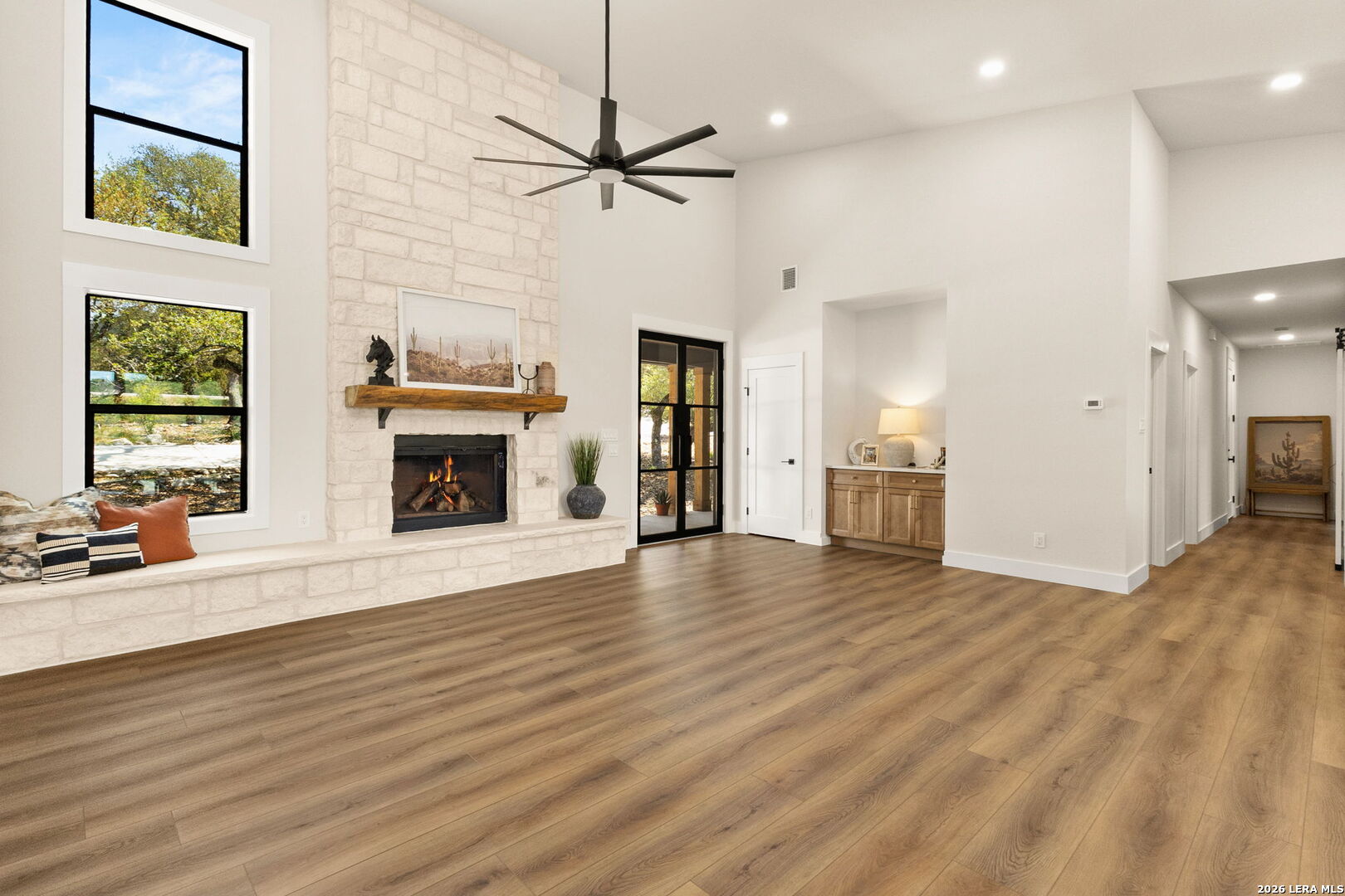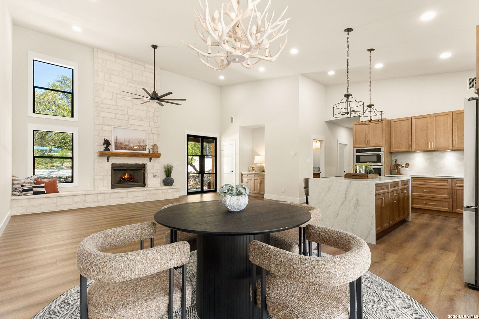 ** OPEN HOUSE 3/28 10AM-2PM**Discover Hill Country living at its finest in this brand-new custom home, designed and built by Wesmar Homes & Design, nestled on a private 1.36-acre oak-studded lot, blending clean modern lines with timeless Hill Country craftsmanship. Thoughtfully designed with 4 bedrooms and 3 bathrooms, the residence blends modern luxury with rustic charm and unbeatable proximity to the area's top attractions. Located just off scenic River Road, you're minutes from world-class fly fishing on the Guadalupe River, boating at Canyon Lake, concerts at Whitewater Amphitheater, all-day fun at FIMFO, and dining at local favorites like Wildflour Cafe and Elio's Italian Restaurant. Whether you're seeking a full-time residence, weekend escape, or income-producing investment, this home offers unmatched flexibility with no HOA, livestock permitted, and short-term rentals allowed. With every detail telling a story, from handcrafted cabinetry and designer lighting to an open-concept floor plan, this home showcases Taj Mahal Quartz countertops throughout and a gourmet kitchen featuring premium Samsung appliances, including a hidden motion-activated vent hood. The wood-burning fireplace with limestone hearth anchors the living area, while exterior soffit lighting highlights architectural details and adds a warm, refined ambiance. The master suite includes private balcony access, an expansive fully marbled curbless dual-head shower with floating benches, large double vanity, standalone soaking tub, and a custom walk-in closet. Two additional bedrooms are positioned on the opposite side of the home with access to a shared double-vanity bathroom, along with a private en-suite bedroom ideal for guests, in-laws, or a home office. Step outside to over 600 sqft of covered outdoor living space, complemented by an additional 800 sqft deck, creating an exceptional setting for entertaining or relaxing beneath the mature oaks. With ample room to add a pool, casita, or workshop, the property offers flexibility to fit any lifestyle. The 600 sqft oversized two-car garage includes an EV charger, with additional parking for RVs, boats, and extra vehicles along the u-shaped driveway or on the right side of the property. With energy-efficient construction, modern utilities, and thoughtful attention to detail throughout, 1129 Estate Dr. perfectly blends privacy, convenience, and elevated Hill Country living. Schedule your private showing today because at this price, this masterfully designed home won't last long!