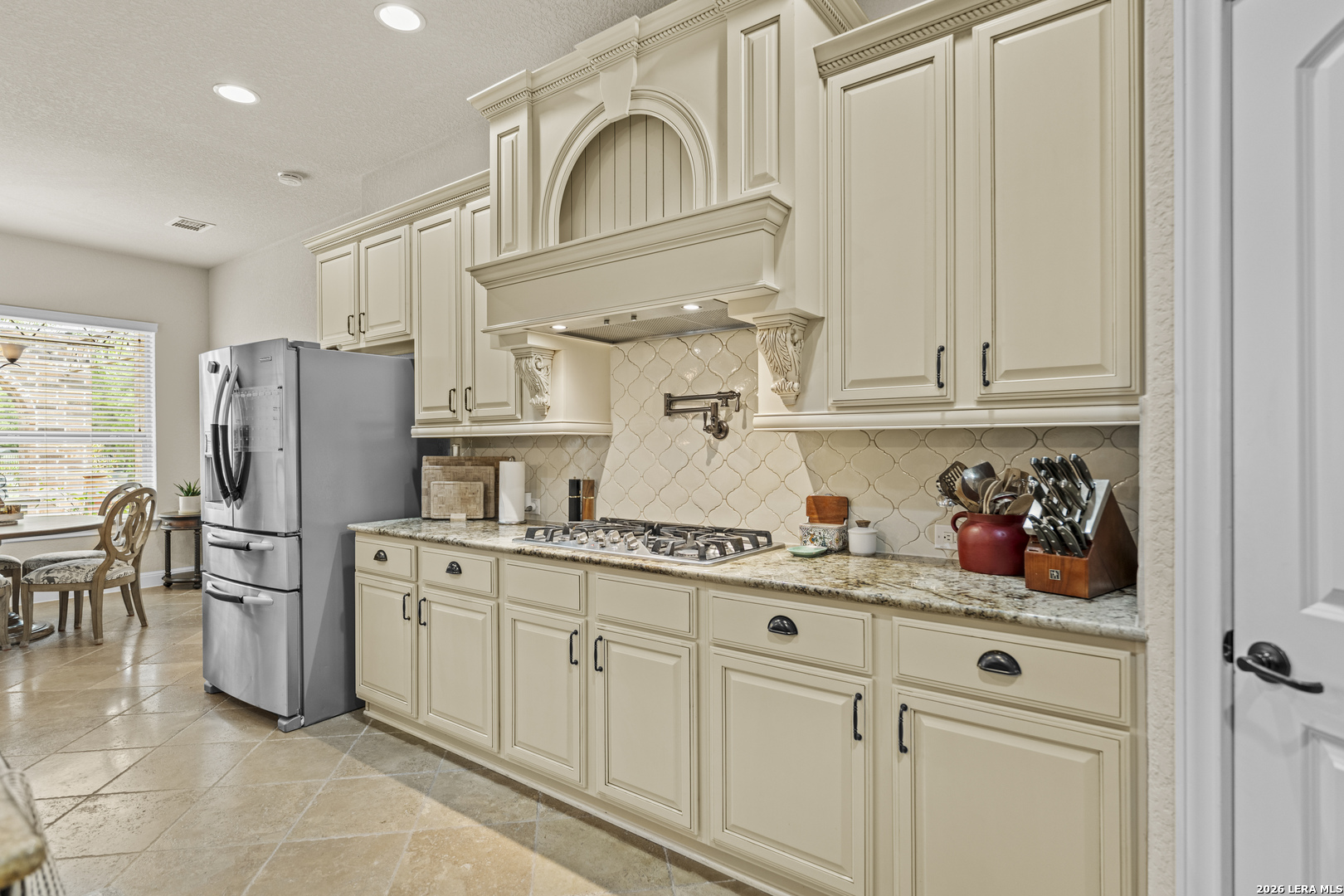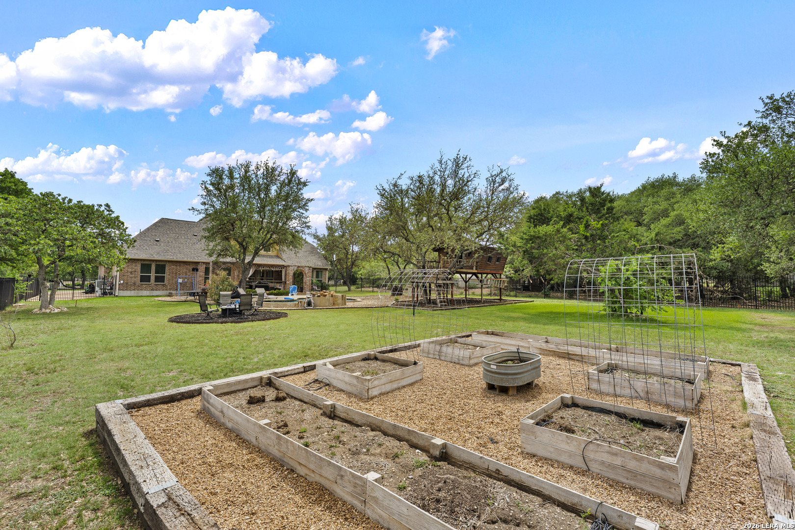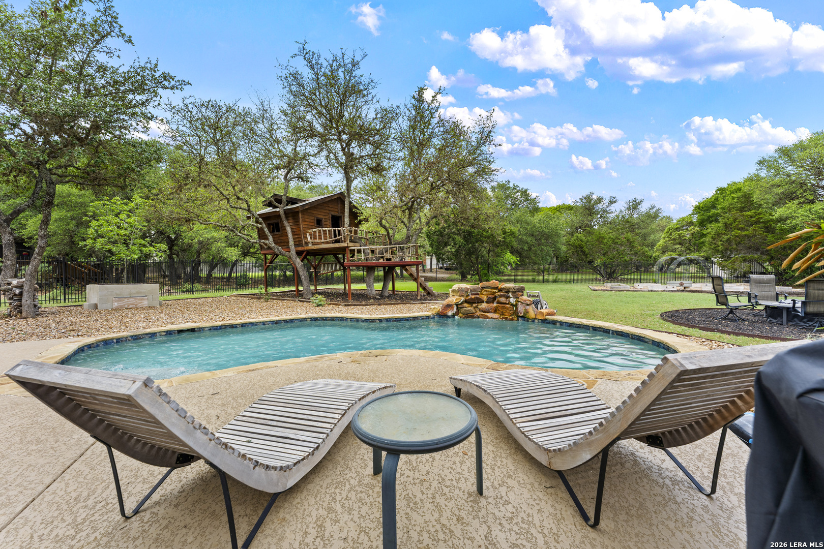 Beautifully designed Hill Country home in the highly desirable Kendall Pointe subdivision of Boerne! Nestled on a quiet street within a gated community and set on a spacious, fully fenced 0.6-acre lot, this custom-built, meticulously maintained 5-bedroom, 4.5-bath home offers approximately 3,560 square feet of thoughtfully designed living space. The open-concept layout showcases a spacious living area with a gas fireplace, flowing seamlessly into a chef's kitchen featuring granite countertops, a large island, stainless steel appliances, double ovens, pot filler, stylish backsplash, and two-tone cabinetry. A bright breakfast area and formal dining room complete the main living space. Real hardwood floors highlight the office, dining, and primary suite, while elegant travertine flooring extends throughout the home. A rare and highly desirable feature is the dual main-floor living arrangement, offering both the primary suite and a private mother-in-law suite-ideal for multi-generational living. The primary retreat includes patio access, a spa-like bath with soaking tub, walk-in shower, dual vanities, and a generous walk-in closet. The secondary suite offers a wheelchair-accessible doorway and a full bath with Jacuzzi tub. An additional guest suite on the main floor also includes a private bath and widened entry for accessibility. Upstairs, you'll find spacious secondary bedrooms, including Jack-and-Jill bathrooms, along with a versatile second living area perfect for a game room, media room, or flex space. Step outside to your private backyard oasis, designed for entertaining and everyday enjoyment. The outdoor space features a sparkling in-ground pool, extended covered patio, custom treehouse, and garden area, all surrounded by mature trees for added privacy. Additional highlights include a recently replaced roof (approx. 2024), water softener, large laundry room off the garage, sink in the garage, and an extended 2-car garage with approximately 10 feet of additional space, plus a 240-volt outlet ready for an EV charging station. Located in highly acclaimed Boerne ISD with convenient access to shopping, dining, and major highways, this home truly offers the best of Hill Country living-space, functionality, and a one-of-a-kind layout designed to fit a variety of lifestyles.