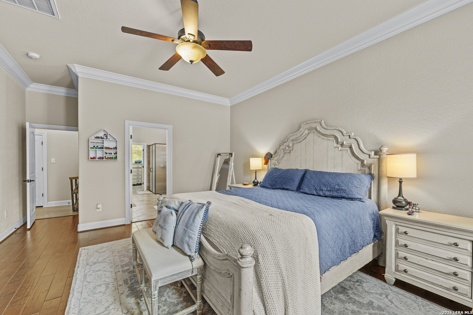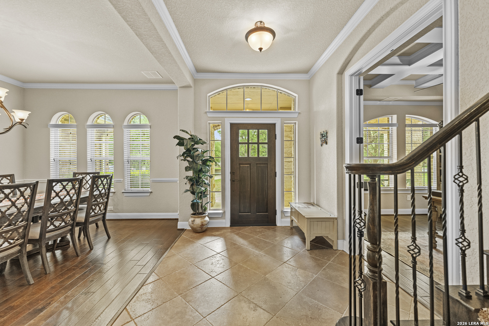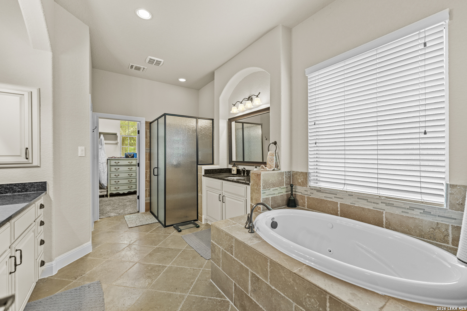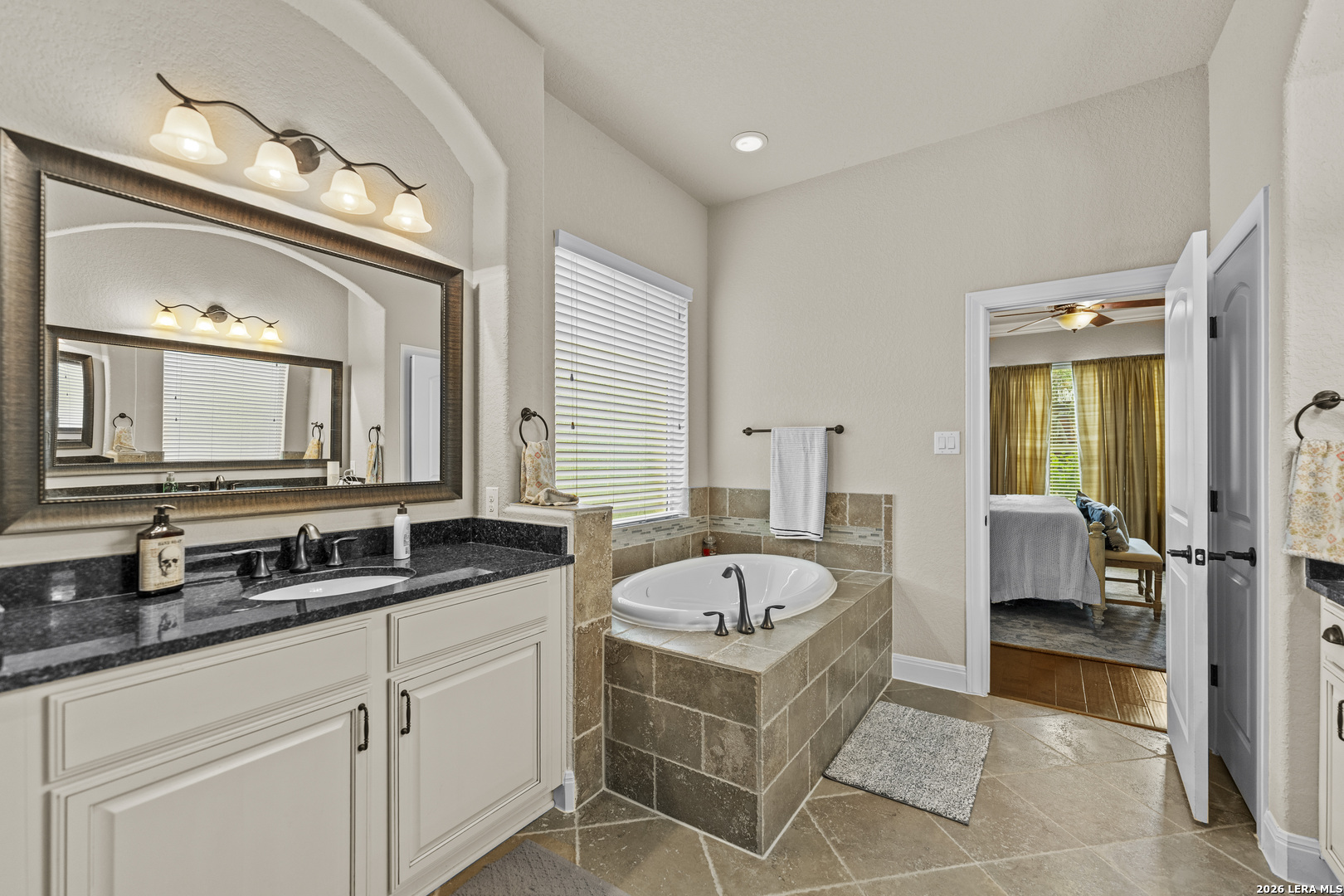 Beautifully designed Hill Country home in the highly desirable Kendall Pointe subdivision of Boerne! Nestled on a quiet street within a gated community and set on a spacious, fully fenced 0.6-acre lot, this custom-built, meticulously maintained 5-bedroom, 4.5-bath home offers approximately 3,560 square feet of thoughtfully designed living space. The open-concept layout showcases a spacious living area with a gas fireplace, flowing seamlessly into a chef's kitchen featuring granite countertops, a large island, stainless steel appliances, double ovens, pot filler, stylish backsplash, and two-tone cabinetry. A bright breakfast area and formal dining room complete the main living space. Real hardwood floors highlight the office, dining, and primary suite, while elegant travertine flooring extends throughout the home. A rare and highly desirable feature is the dual main-floor living arrangement, offering both the primary suite and a private mother-in-law suite-ideal for multi-generational living. The primary retreat includes patio access, a spa-like bath with soaking tub, walk-in shower, dual vanities, and a generous walk-in closet. The secondary suite offers a wheelchair-accessible doorway and a full bath with Jacuzzi tub. An additional guest suite on the main floor also includes a private bath and widened entry for accessibility. Upstairs, you'll find spacious secondary bedrooms, including Jack-and-Jill bathrooms, along with a versatile second living area perfect for a game room, media room, or flex space. Step outside to your private backyard oasis, designed for entertaining and everyday enjoyment. The outdoor space features a sparkling in-ground pool, extended covered patio, custom treehouse, and garden area, all surrounded by mature trees for added privacy. Additional highlights include a recently replaced roof (approx. 2024), water softener, large laundry room off the garage, sink in the garage, and an extended 2-car garage with approximately 10 feet of additional space, plus a 240-volt outlet ready for an EV charging station. Located in highly acclaimed Boerne ISD with convenient access to shopping, dining, and major highways, this home truly offers the best of Hill Country living-space, functionality, and a one-of-a-kind layout designed to fit a variety of lifestyles.
