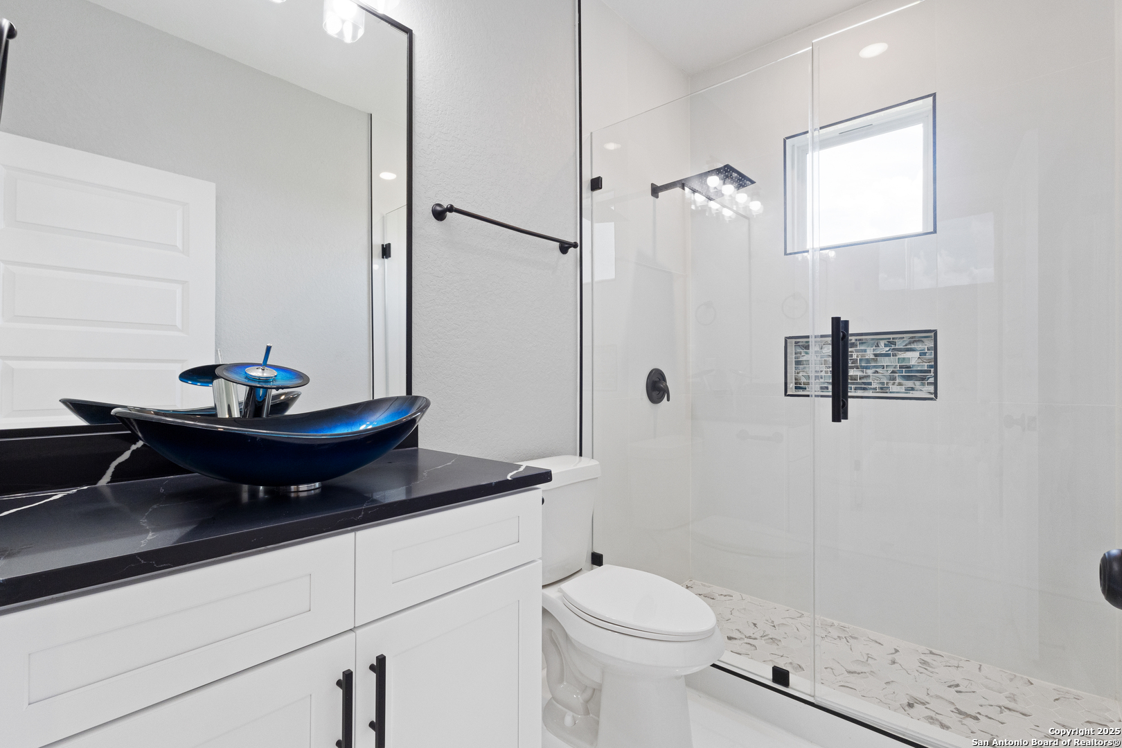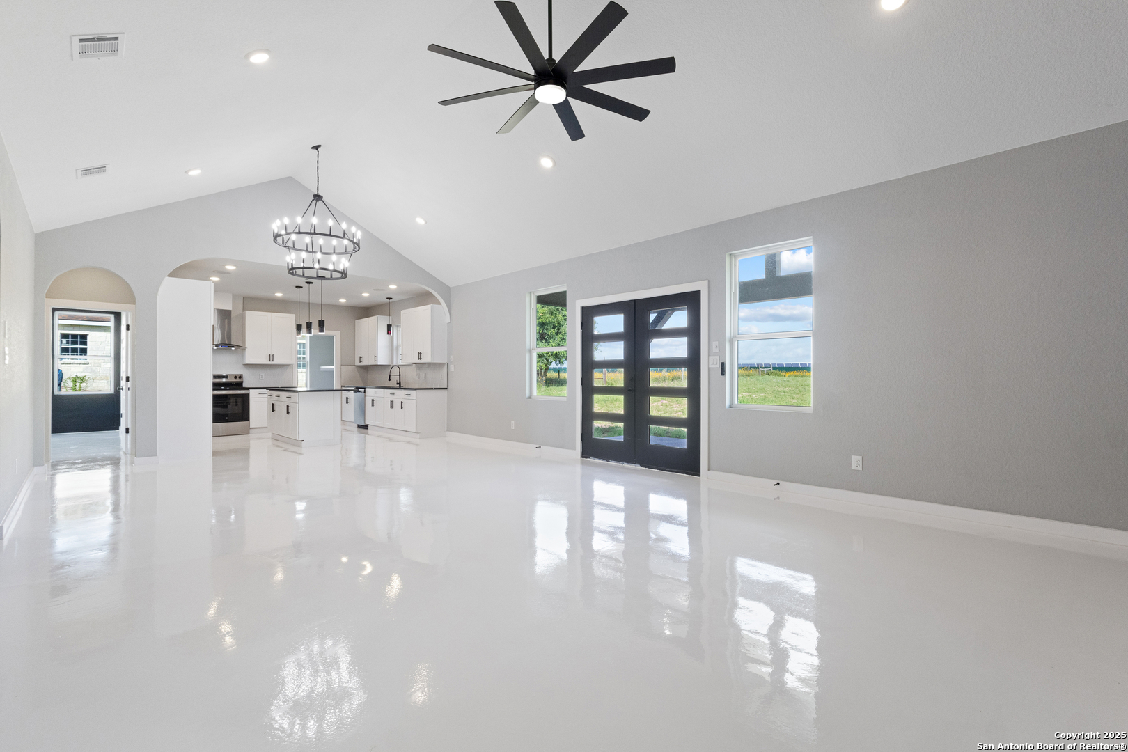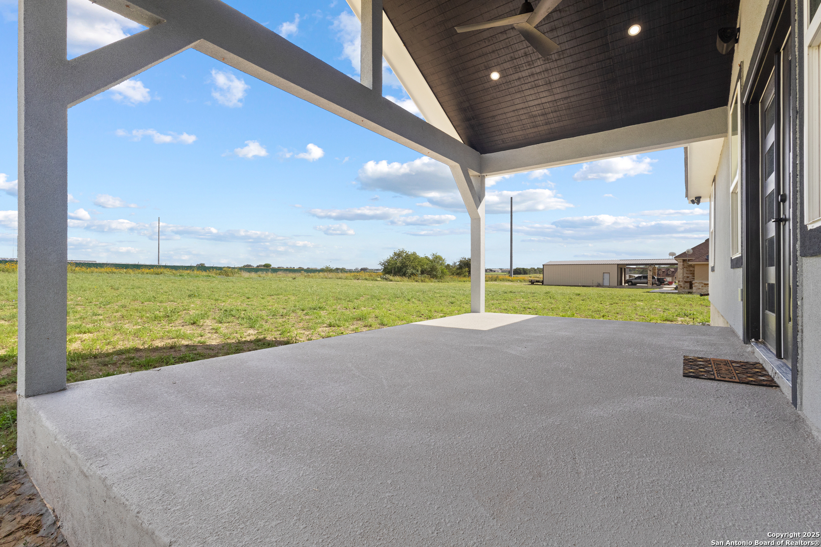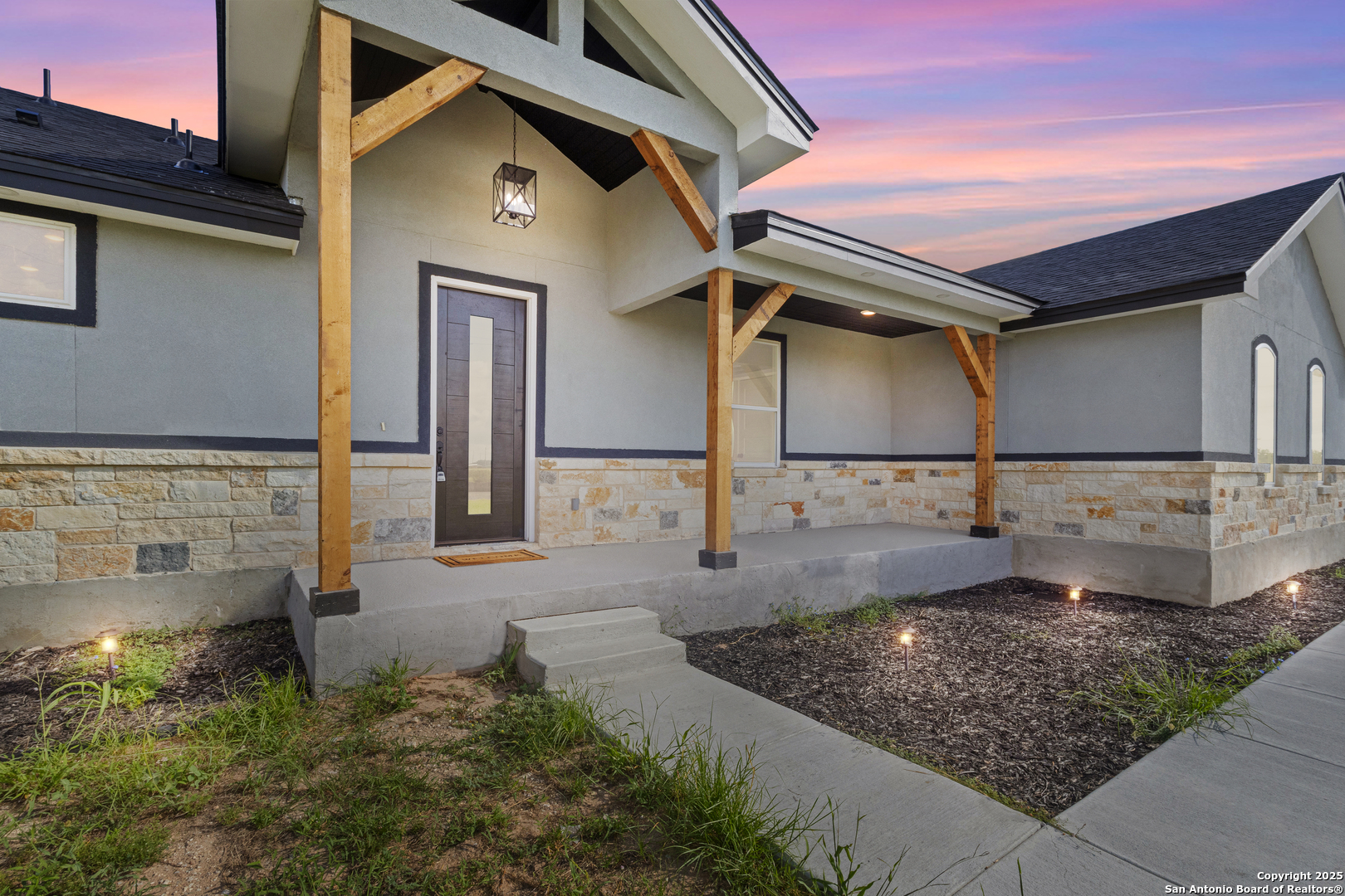 Come see this stunning new construction home in the peaceful FLORESVILLE area, offering the perfect blend of country living while staying close to San Antonio and nearby cities. The exterior features a stylish mix of stone and stucco with a welcoming front porch, and a spacious back patio completed with LIGHTING and SOUND SYSTEM all on 1.04-acre lot with no neighbors behind you for added privacy. Inside, you'll find nice finishes and an open living room with plenty of space to gather. The kitchen includes a pantry, laundry area, and utility space for added convinces, kitchen has a sound system already installed. The master suite features high ceilings a beautiful accent wall, a spacious walking closet with custom shelving, and A MUST-SEE MASTER BATHROOM. Each additional bedroom offers walk-in closets and lots of natural light. The two-car garage already has epoxy flooring! This home has so much to offer, come out and see it for yourself & make it yours today.