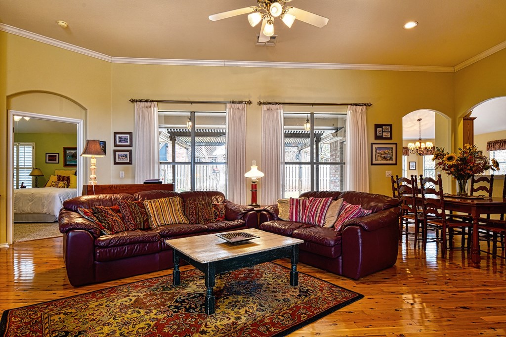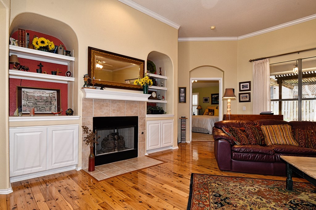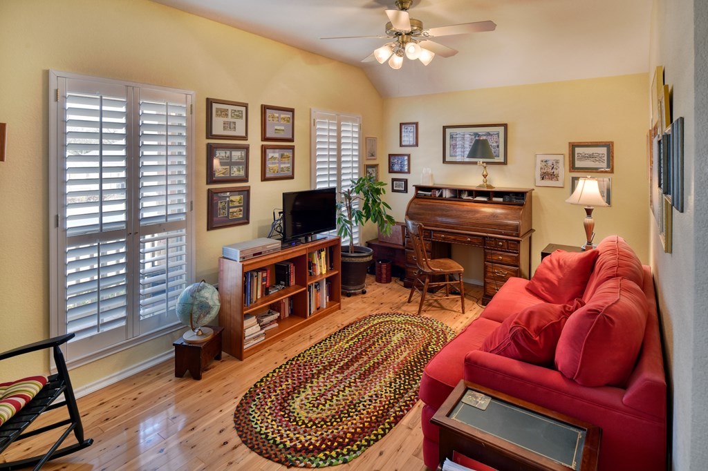This beauty is the Medina Plan in Fredericksburg's gated over 55 community subdivision. Hardwood floors, with an additional office, plantation shutters and a floor plan that is great for entertaining. Pergola over the patio to spend time in your privacy fenced back yard. Subdivision has a creek, walking trails, and a great club house equipped with fitness room, party area, and library. Community pool is lovely. Price below appraisal.