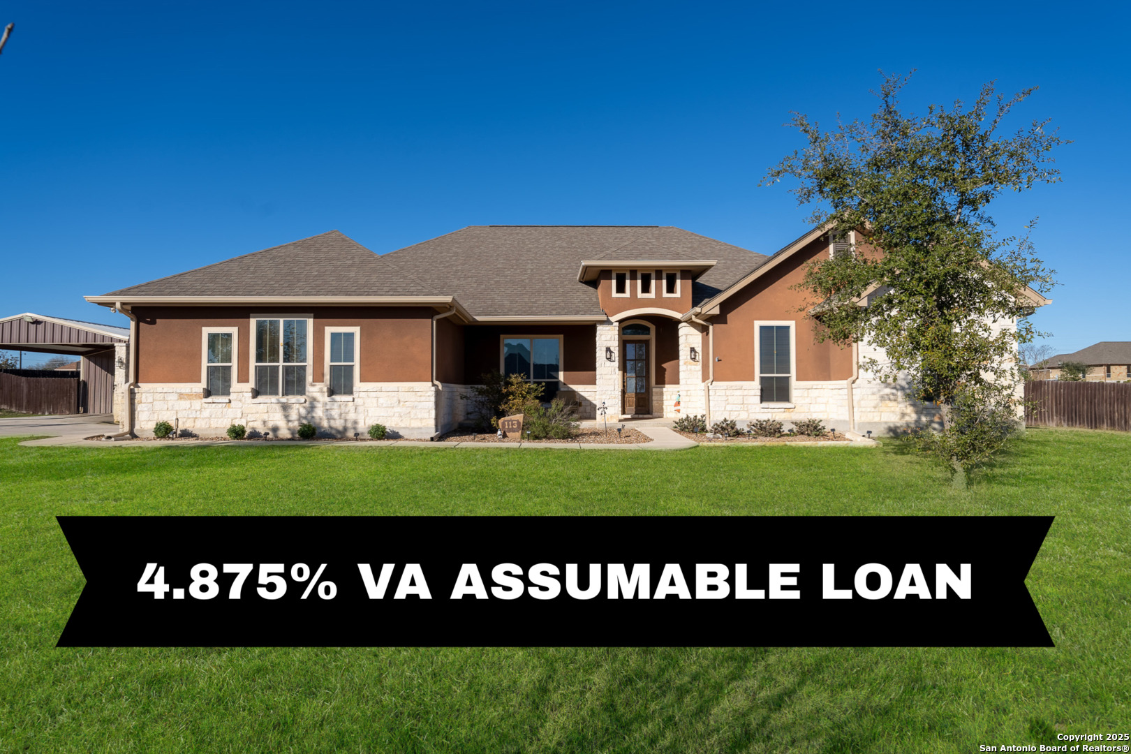 VA ASSUMABLE LOAN WITH A RATE OF 4.875% WITH THE SUBSTITUTION OF VA ENTITLEMENT!! Welcome to 113 Westfield View, where modern upgrades meet spacious living on a beautifully maintained 1.13 acres. This 4-bedroom, 2.5-bath home is designed for comfort, entertaining, and functionality. With 12' tray ceilings, 8' doorways, and 20" tile throughout the main spaces, the home offers an open and airy feel. The remodeled kitchen is a true showstopper, featuring a wrap around peninsula and double island, quartz countertops, a gas stove/oven combo, a stylish backsplash, a vent hood, and an oversized sink, all designed for effortless cooking and hosting. Custom soft-close cabinetry and a bar seating area make it a perfect gathering space. The upgraded oven with an air fry feature and a high-end dishwasher add convenience to everyday life. Overlooking the living and dining areas, this space is ideal for entertaining, complete with pre-wired ceiling speakers for an immersive experience. The primary suite is a private retreat with a recently updated walk-in tile shower, separate soaking tub, dual vanities, and a built-in bathroom heater for ultimate comfort. The massive walk-in closet connects seamlessly to the laundry room, adding a touch of luxury and convenience. Step outside to your backyard, where a vast covered patio with a white rock fireplace sets the stage for cozy Texas evenings. The space is pre-wired for surround sound and includes a TV mount, making it an entertainer's dream. The back yard is complete with a sprinkler system that covers most of the area and offers plenty of space for future custom pool plans. But that's not all, this home includes a 10x30 covered patio leading to a 24x30 HE/SHE Cave, complete with a 12' roll-up door in the front, an 8' roll-up door in the back, AC/heating, keyless entry, and pre-wiring for internet and surround sound. Whether you're looking for a workshop, home office, or creative space, this setup is unbeatable. Parking and storage are a breeze with the attached 2-car garage, an additional 24x25 carport, and a 12' RV/Boat gate with a gravel driveway. With so many thoughtful upgrades and an unbeatable layout, this is a must-see. Schedule a tour today!