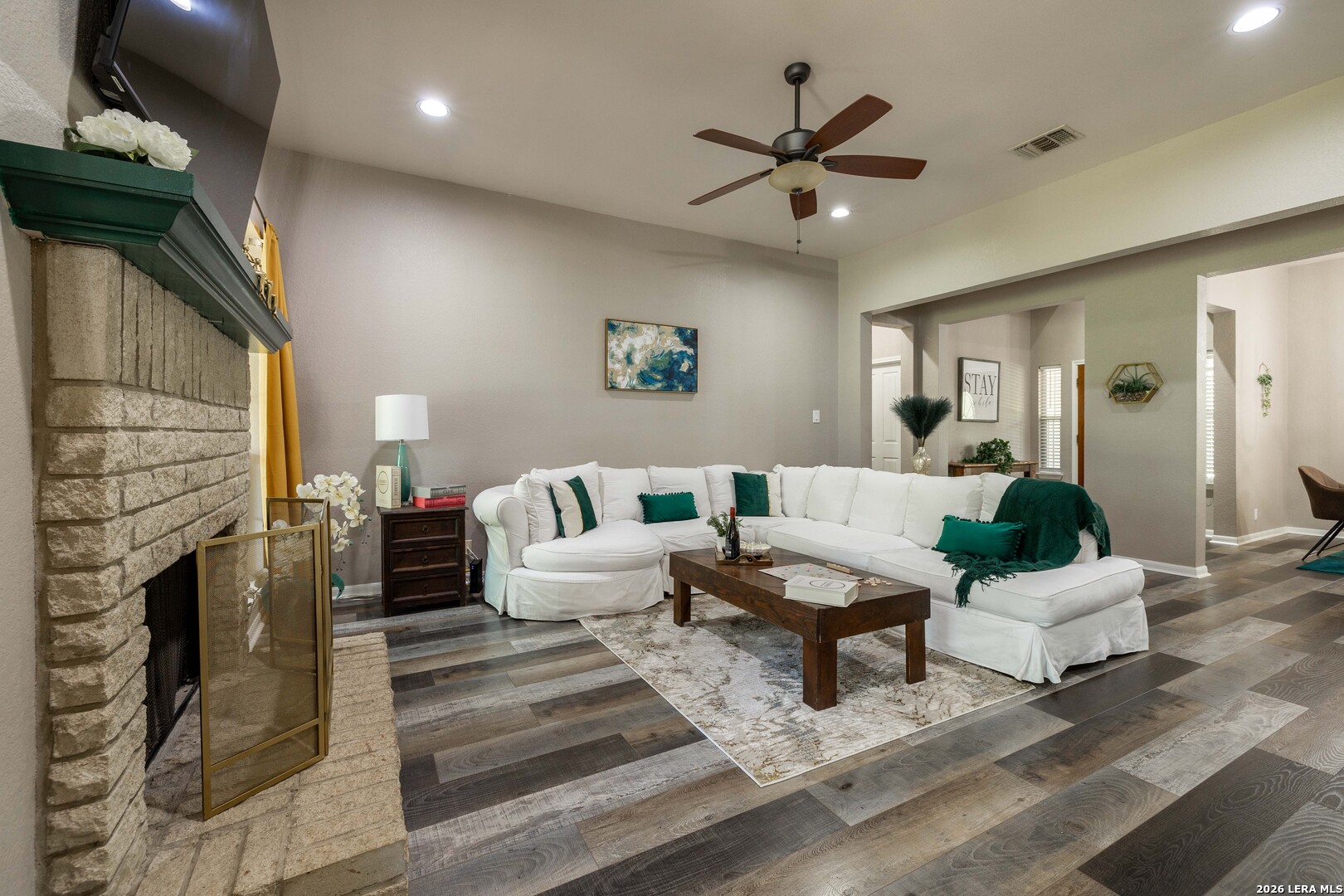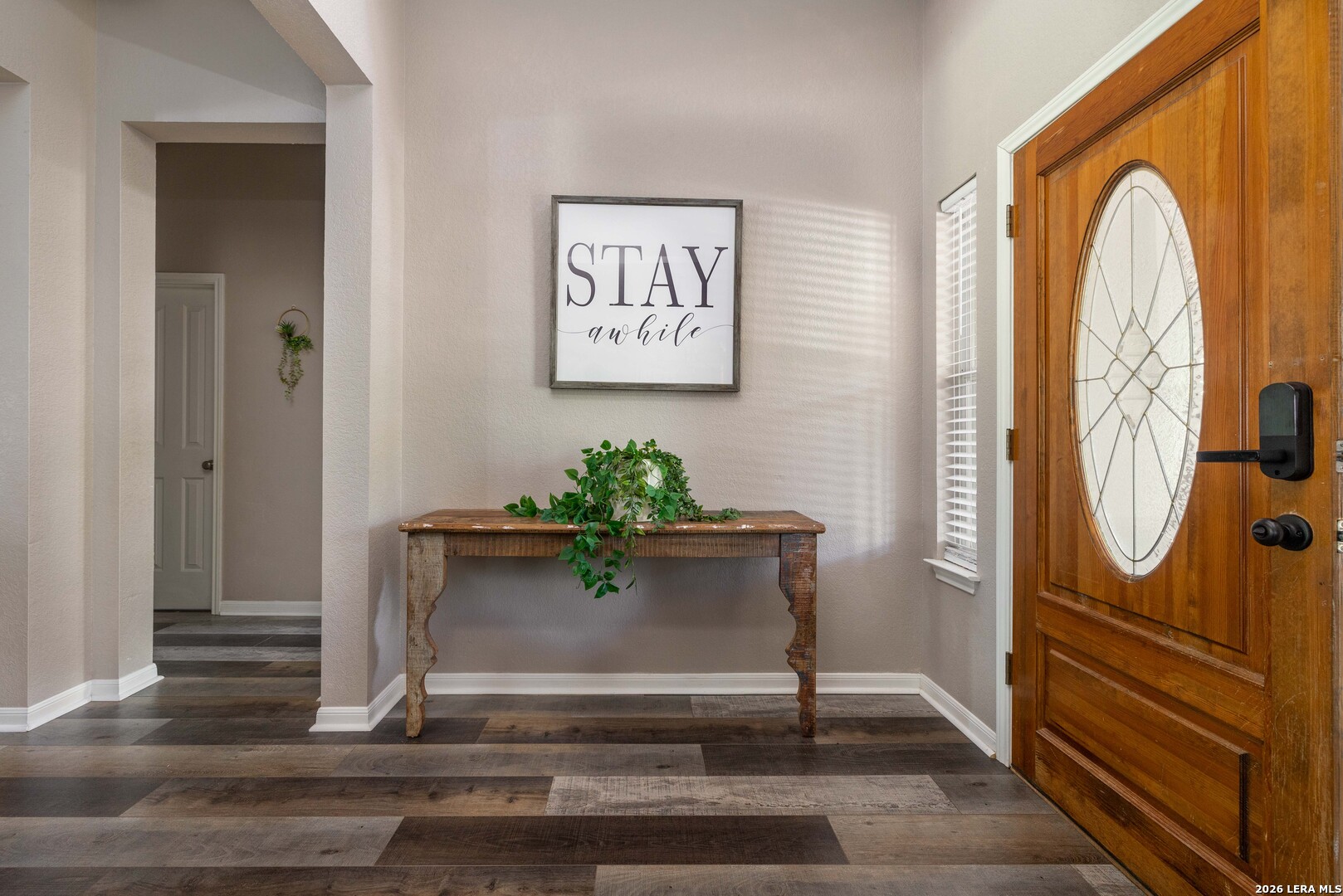 Set on over a half-acre in the desirable Oak Grove area, this beautifully updated home offers privacy, space, and timeless charm beneath mature oak trees. Tucked within a quiet, private neighborhood, the setting provides a peaceful retreat while still being conveniently located near everyday amenities. Recent renovations include brand new hardwood flooring throughout the entire home, extending into the bedrooms, living, and dining areas for a clean, cohesive feel. The kitchen has been thoughtfully upgraded with pristine granite countertops, a classic subway tile backsplash, and new sink, faucet, and lighting fixtures, creating a bright and functional space ideal for both daily living and entertaining. The primary bedroom is filled with natural light from four large windows and connects to an updated en suite bath featuring new granite, modern sinks and faucets, a large soaking tub, walk-in shower, and a spacious walk-in closet. Additional bedrooms offer flexibility for guests, a home office, or additional living space. An attached two-car garage provides added convenience along with extra workspace and storage and includes an electric car charger for modern, energy-conscious living. The rental also includes a stainless steel refrigerator, washer, and dryer for ease of move-in. Ideally situated just a short drive from New Braunfels, this home offers quick access to shopping, dining, and entertainment while maintaining the comfort of a more secluded setting. This home is also available furnished for $2,700 per month, offering a turnkey living option in a peaceful, private neighborhood. Home is available for showings starting 5/3.