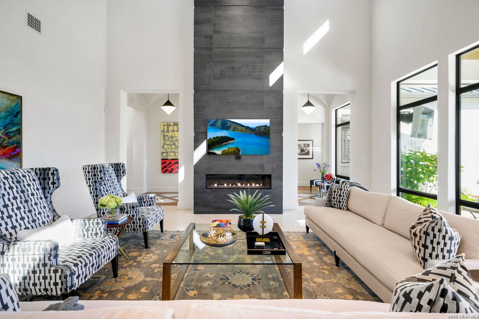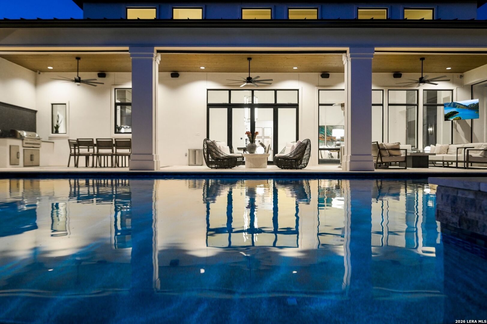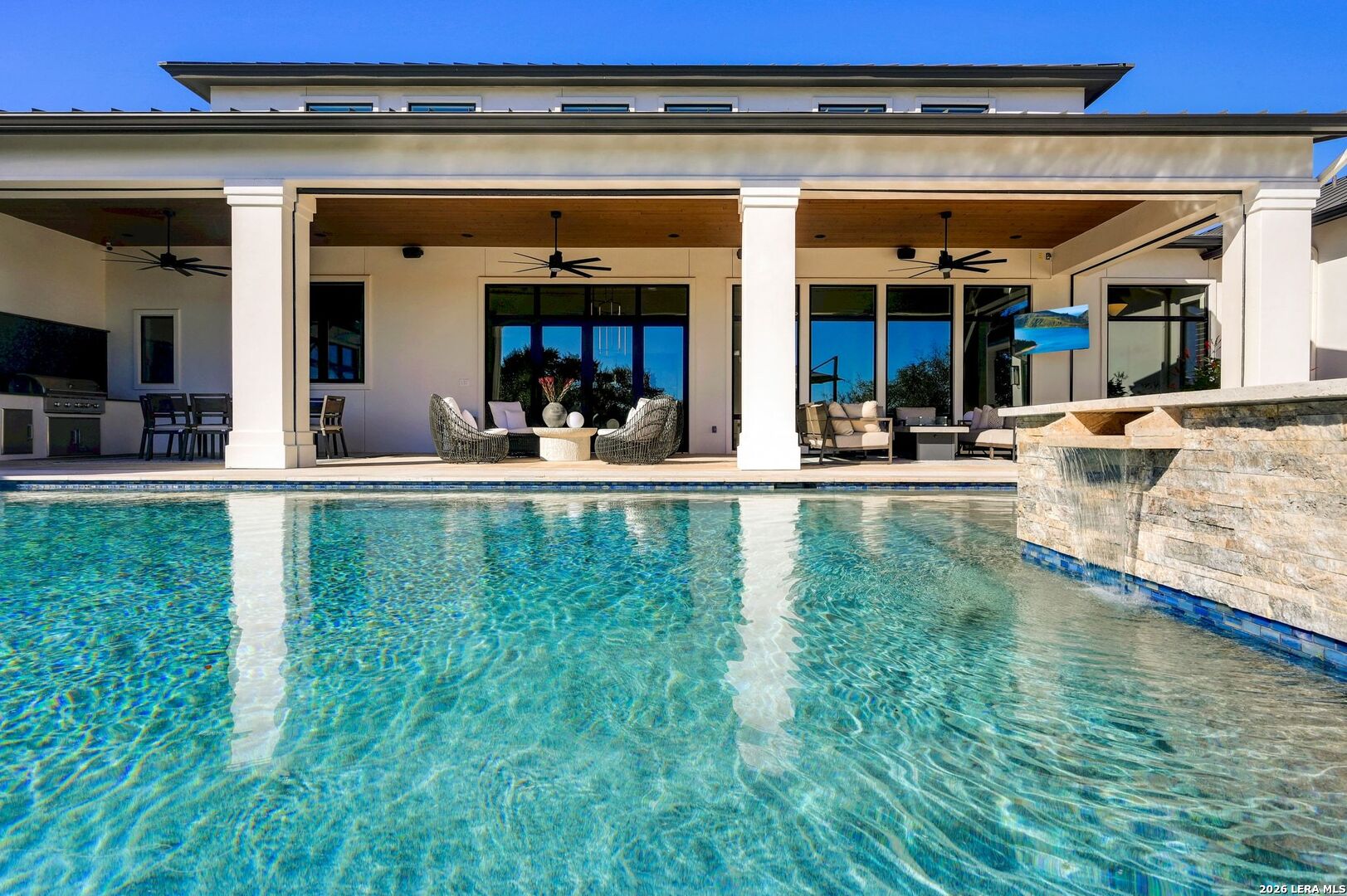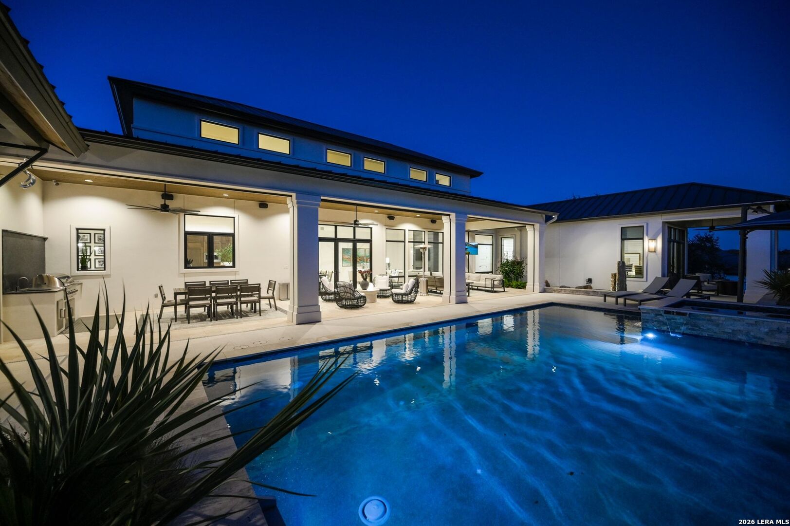 Hill Country Contemporary Ranch - Pecan Springs Luxury Estate! Where sophistication meets sanctuary. Built in 2022 by Paul Allen Homes and envisioned by renowned architect Gustavo Arredondo (A-Design), this Hill Country Contemporary home captures the perfect harmony of modern elegance, comfort, and technology. Nestled on a 1-acre estate lot in highly sought-after Pecan Springs, the home balances breathtaking design with the warmth of true Texas living. Step through the grand entry into airy spaces framed by 14 ceilings and a show-stopping 22 great room-a statement of light, space, and design. Every finish is curated, with interiors by Diana Workman of Design Forums, who blended natural materials, layered textures, and handcrafted details to create a home that feels as inviting as it is impressive. The 4,880 sq ft layout features 4 bedrooms, each with its own en-suite bath, along with a private study, game room, and thoughtful extras. Throughout the home, hand-built solid white oak cabinetry by Mandarin Studio sets a timeless tone-anchored by a stunning 5x10 central kitchen island and complemented by Sub-Zero and Wolf appliances. For those who appreciate seamless convenience, the home integrates Lutron RadioRa 3 smart lighting, commercial-grade networking, a 4K security and doorbell system, and a 36 kVm liquid-cooled whole-home generator. A built-in 60-amp EV charger ensures future-ready living, while full remote-management capabilities allow effortless control from anywhere in the world. The home's U-shaped layout embraces a resort-style pool, spa, and 900 sq ft screened patio, blurring the line between indoor and outdoor living. Common areas feature sound-dampening walls for a peaceful, serene atmosphere. Wood shutters and blinds, custom built-ins, and abundant storage (including temperature-controlled garage storage) make the home as practical as it is luxurious-crafted for everyday living and gracious entertaining alike. Whether it's an intimate family dinner or an evening with fifty guests, this home was designed to make every moment effortless. The property is fully fenced and framed by lush lawn areas, a 1/4-acre Texas wildflower garden, and 30+ mature trees, creating both privacy and beauty in every direction. Expansive patios and terraces invite gatherings large or small-perfect for weekend barbecues, sunset cocktails, or quiet coffee mornings surrounded by Hill Country tranquility.