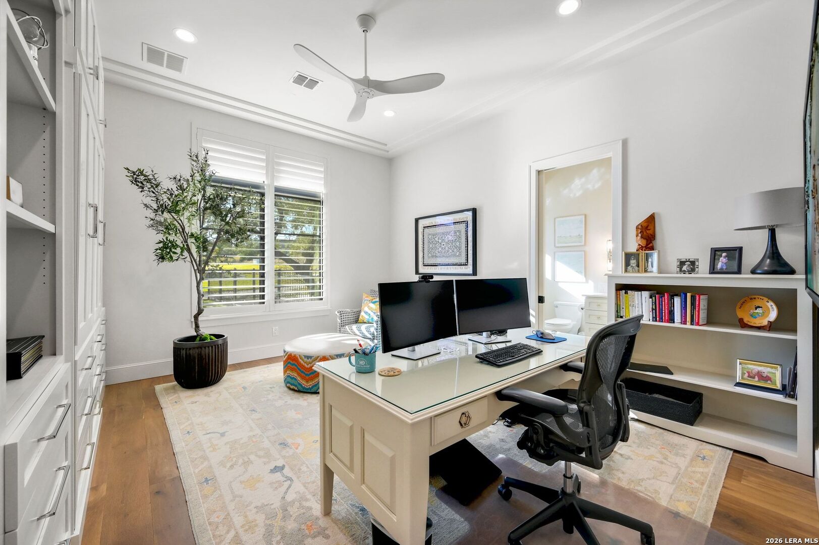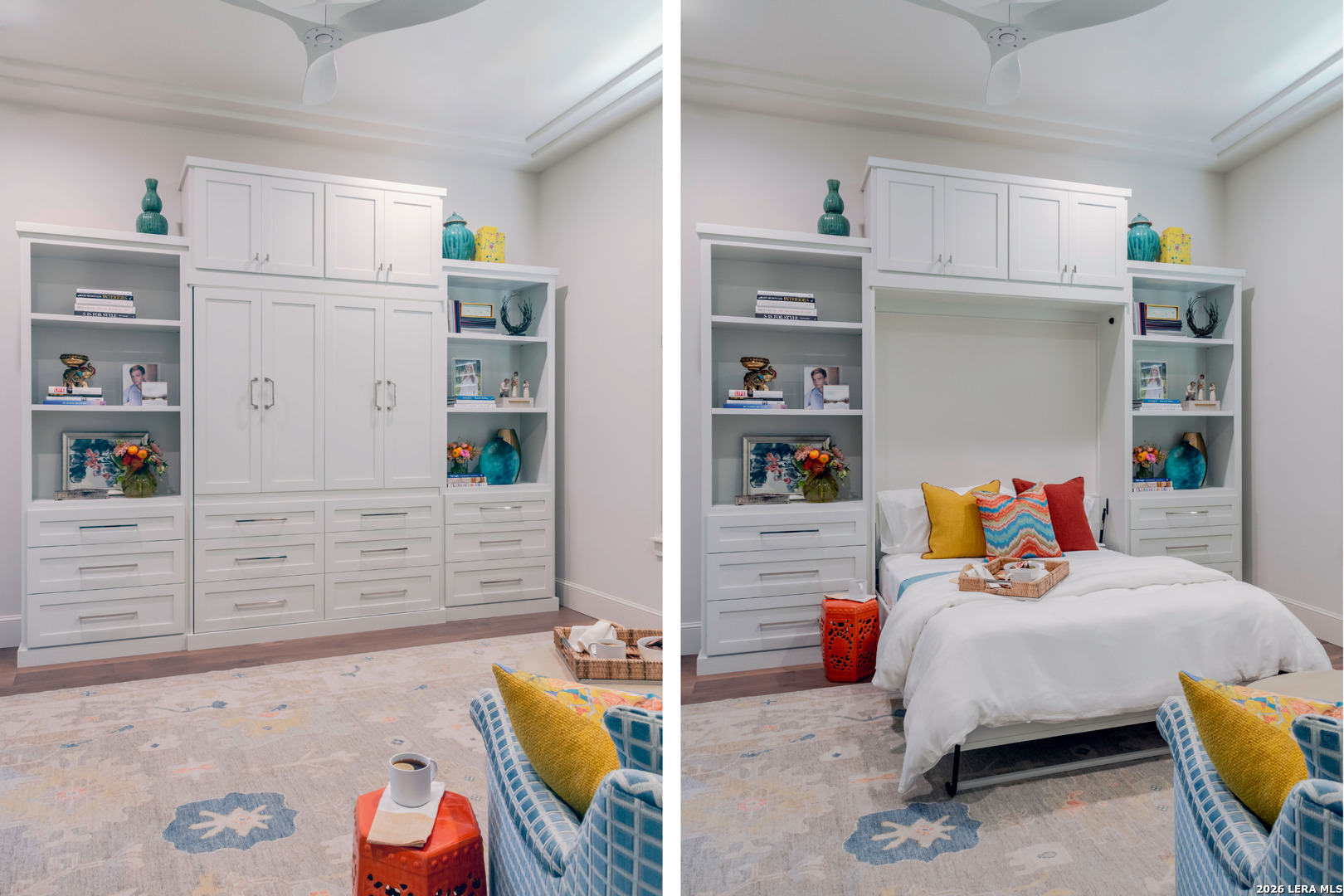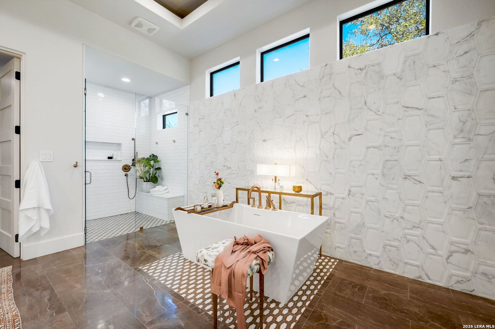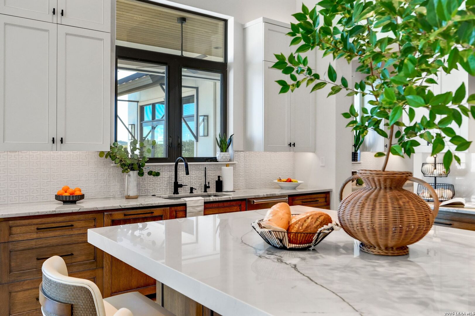 Hill Country Contemporary Ranch - Pecan Springs Luxury Estate! Where sophistication meets sanctuary. Built in 2022 by Paul Allen Homes and envisioned by renowned architect Gustavo Arredondo (A-Design), this Hill Country Contemporary home captures the perfect harmony of modern elegance, comfort, and technology. Nestled on a 1-acre estate lot in highly sought-after Pecan Springs, the home balances breathtaking design with the warmth of true Texas living. Step through the grand entry into airy spaces framed by 14 ceilings and a show-stopping 22 great room-a statement of light, space, and design. Every finish is curated, with interiors by Diana Workman of Design Forums, who blended natural materials, layered textures, and handcrafted details to create a home that feels as inviting as it is impressive. The 4,880 sq ft layout features 4 bedrooms, each with its own en-suite bath, along with a private study, game room, and thoughtful extras. Throughout the home, hand-built solid white oak cabinetry by Mandarin Studio sets a timeless tone-anchored by a stunning 5x10 central kitchen island and complemented by Sub-Zero and Wolf appliances. For those who appreciate seamless convenience, the home integrates Lutron RadioRa 3 smart lighting, commercial-grade networking, a 4K security and doorbell system, and a 36 kVm liquid-cooled whole-home generator. A built-in 60-amp EV charger ensures future-ready living, while full remote-management capabilities allow effortless control from anywhere in the world. The home's U-shaped layout embraces a resort-style pool, spa, and 900 sq ft screened patio, blurring the line between indoor and outdoor living. Common areas feature sound-dampening walls for a peaceful, serene atmosphere. Wood shutters and blinds, custom built-ins, and abundant storage (including temperature-controlled garage storage) make the home as practical as it is luxurious-crafted for everyday living and gracious entertaining alike. Whether it's an intimate family dinner or an evening with fifty guests, this home was designed to make every moment effortless. The property is fully fenced and framed by lush lawn areas, a 1/4-acre Texas wildflower garden, and 30+ mature trees, creating both privacy and beauty in every direction. Expansive patios and terraces invite gatherings large or small-perfect for weekend barbecues, sunset cocktails, or quiet coffee mornings surrounded by Hill Country tranquility.