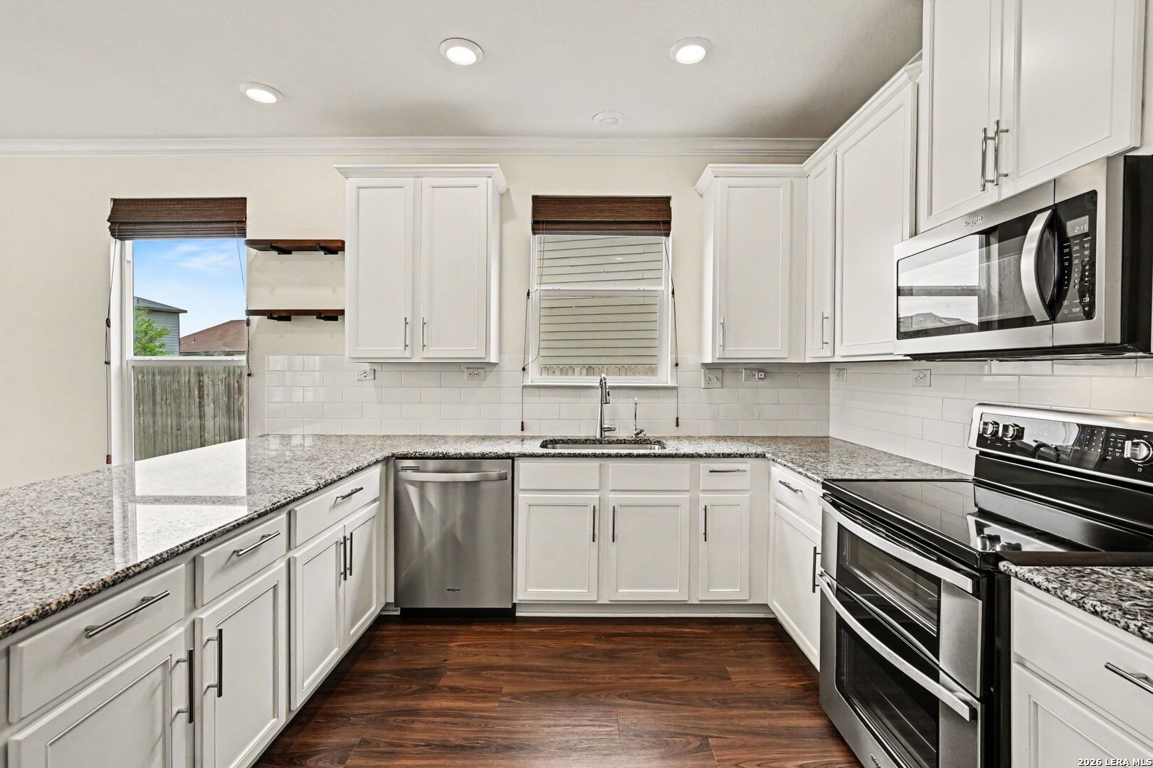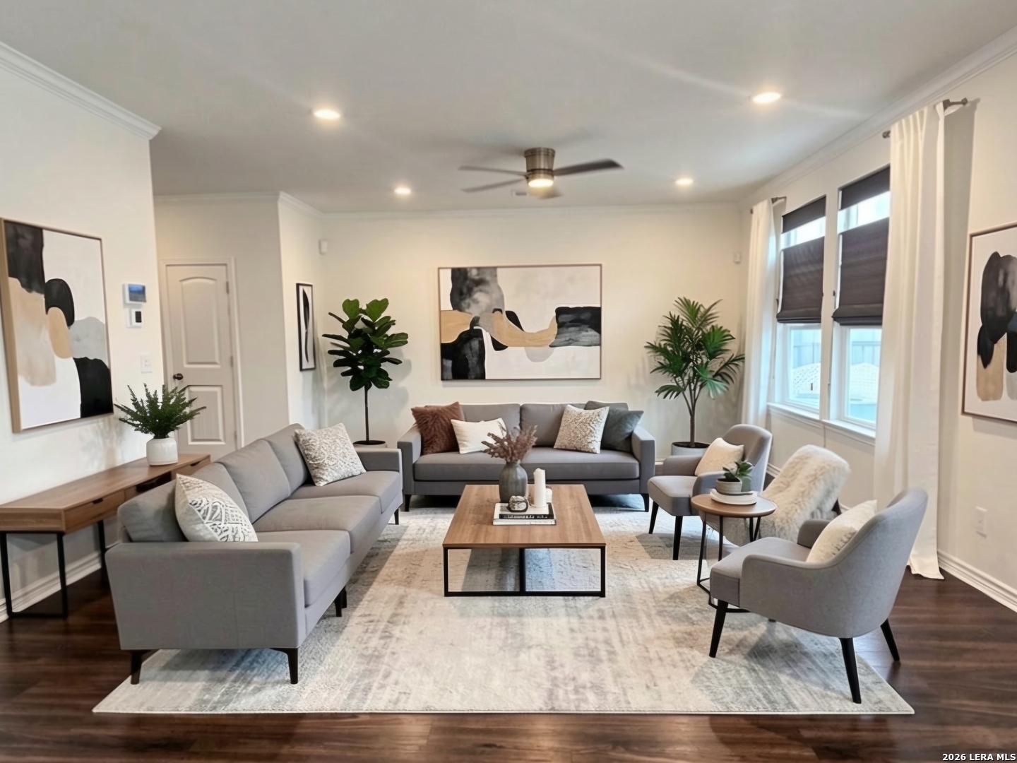 *Buyer Incentives Available* This home is truly one of a kind-far from a standard build. Every detail has been thoughtfully designed and carefully upgraded to maximize both style and functionality. It's a must-see in person to fully appreciate the craftsmanship and enhancements throughout. Beautiful two-story home in the desirable Cross Creek subdivision offers 3 spacious bedrooms, 2.5 bathrooms, and a two-car attached garage. An open and inviting floor plan welcomes you inside, highlighted by modern crown molding and durable luxury vinyl and tile flooring throughout the first level. The expansive family room flows seamlessly into the stunning kitchen featuring granite countertops, stainless steel appliances, features such as a reverse osmosis water filtration system and abundant cabinet and counter space ideal for everyday living and entertaining. Upstairs a noticeable upgrade includes an open stair railing with wrought iron accents, a striking improvement includes elegant double doors leading into the light-filled primary bedroom providing a peaceful retreat with dual vanities, beautifully framed vanity mirrors, his-and-her sinks, and a generous walk-in closet. Two oversized secondary bedrooms share a full bathroom, offering comfort and flexibility. Additional touches like mounted ceiling fan controls add convenience and modern comfort. This stunning home also comes fully equipped with high-end appliances, including a Cafe Smart four-door French door stainless steel refrigerator with an auto-fill pitcher, a Samsung washer and dryer, and a regularly maintained water softener system. Enjoy outdoor gatherings or quiet evenings on the patio overlooking the large backyard. Cross Creek residents enjoy access to a community pool, playground, and a basketball court and the location offers easy access to major highways, Lackland AFB, UTSA, downtown San Antonio, La Cantera, and The Rim for exceptional shopping and dining. Zoned to highly rated Northside ISD schools. Move-in ready and designed to impress, this home truly checks all the boxes. Schedule your private showing today!