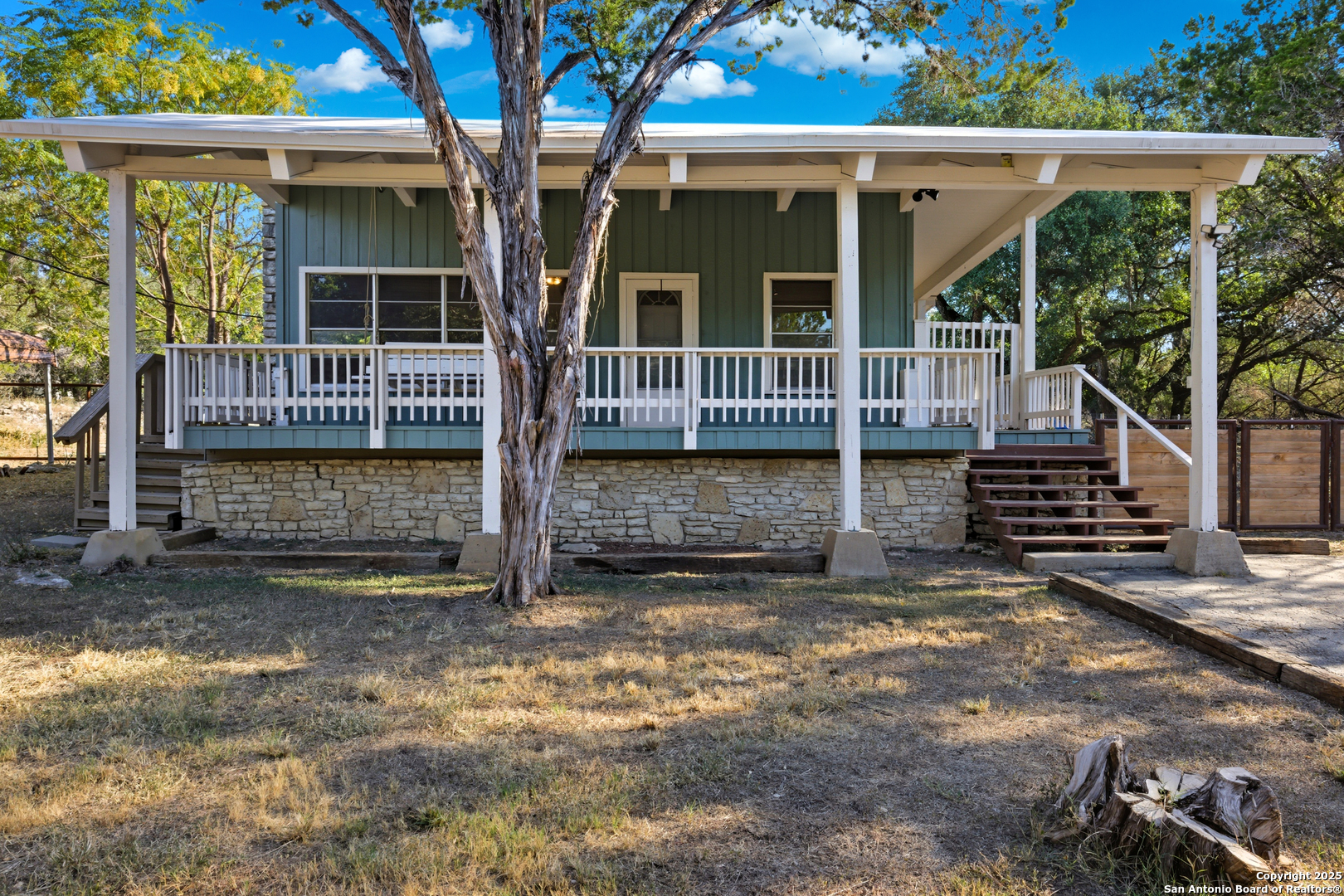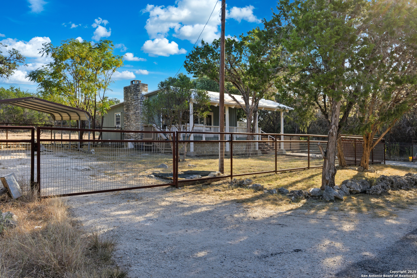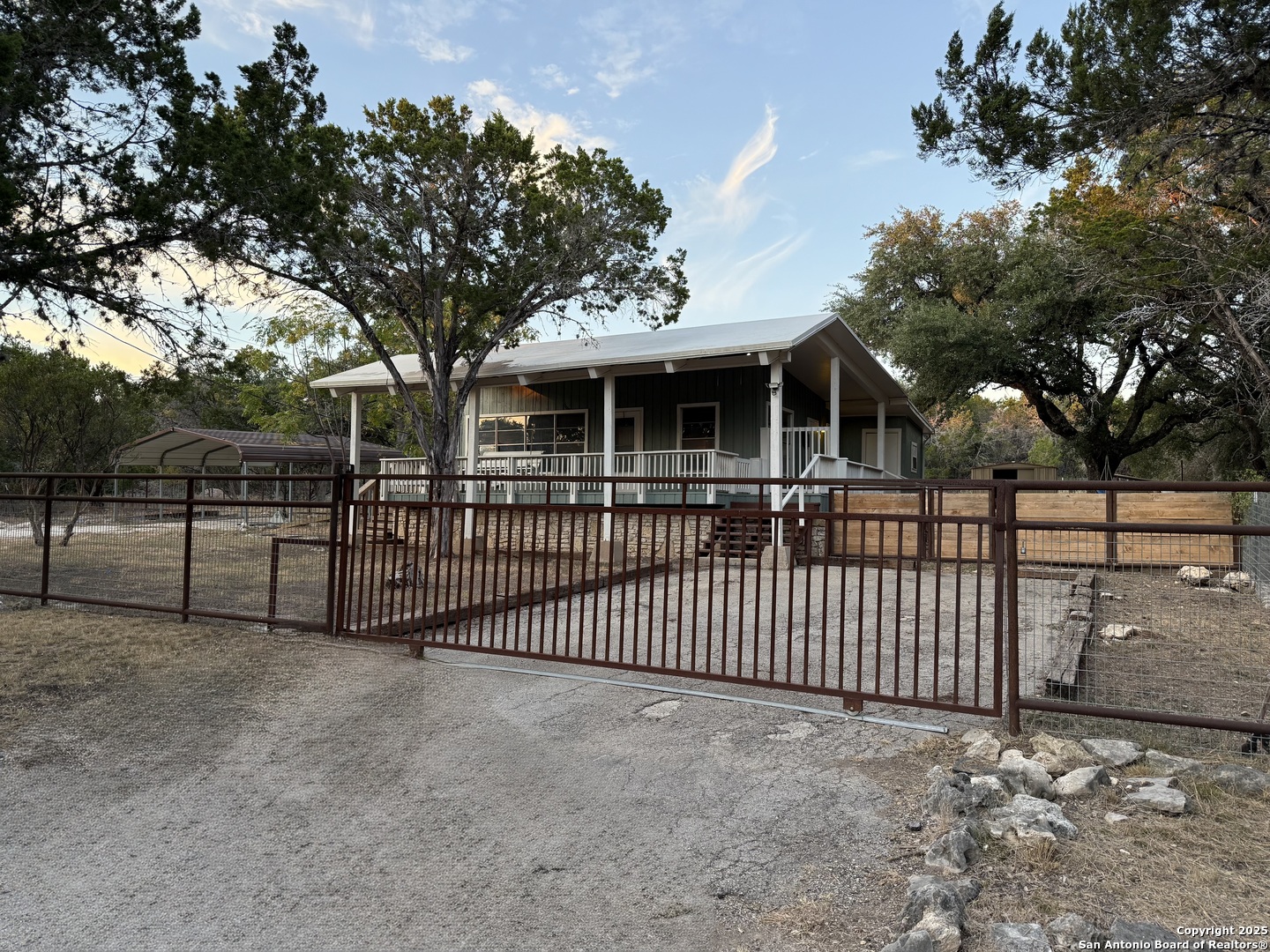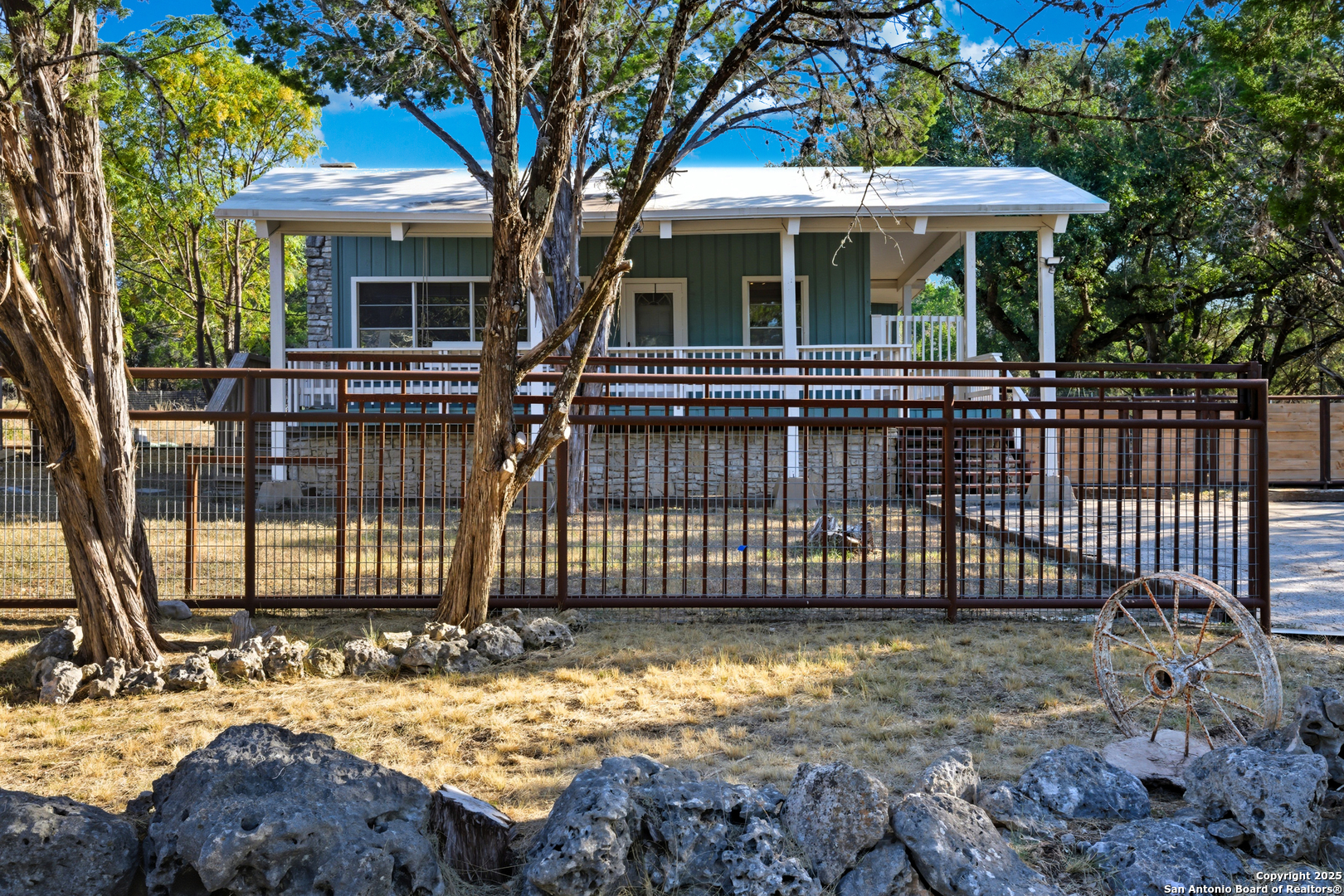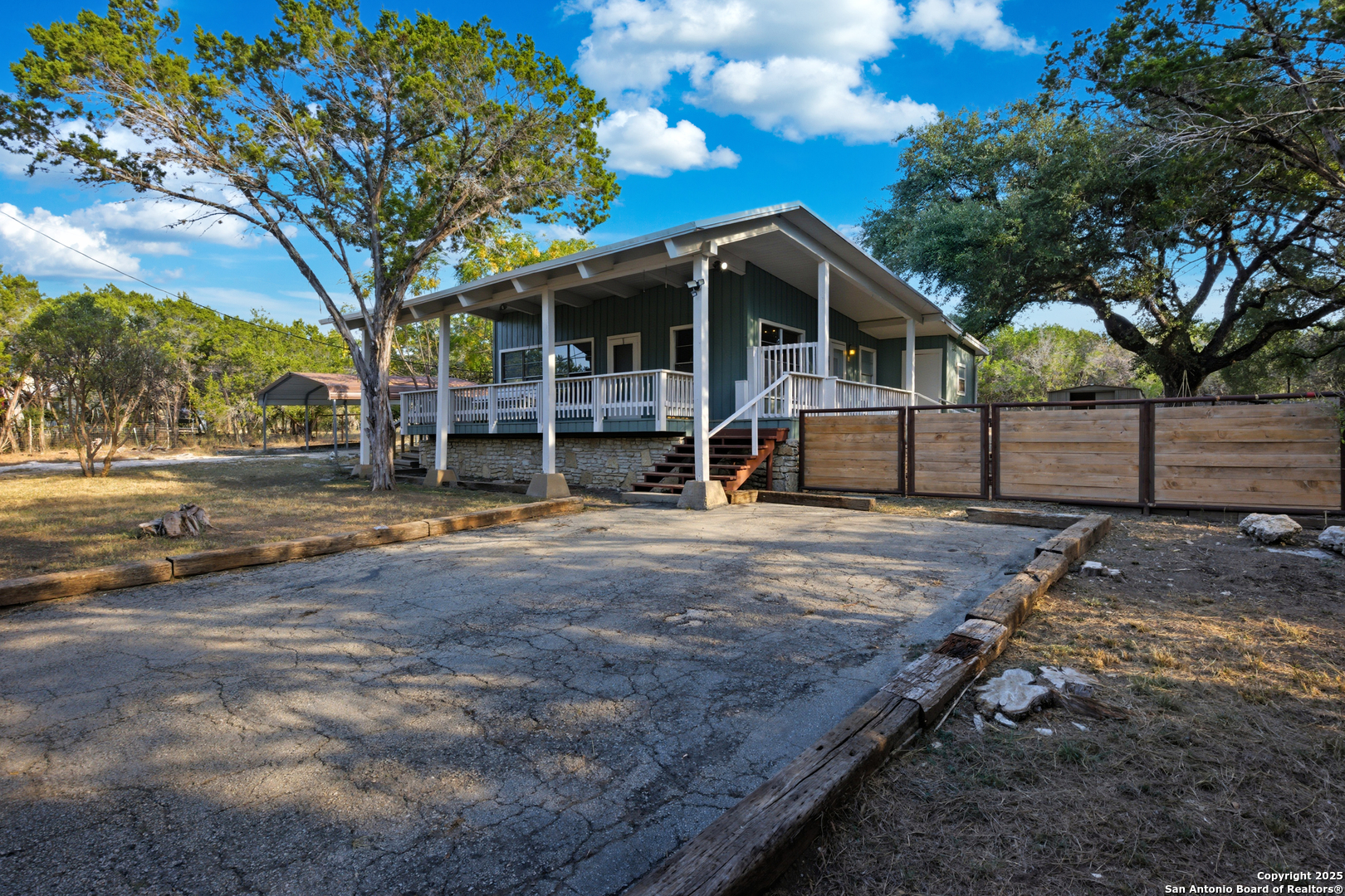 Escape to your own Hill Country retreat beneath the stars, surrounded by mature trees and peaceful privacy on TWO SPACIOUS LOTS in the desirable Cypress Cove community and no city taxes. This charming country cottage blends warmth and character with a tranquil setting just steps from the Guadalupe River. Enjoy a newly painted exterior with a pvc roof membrane that is waterproof and reflects heat with an inviting interior featuring beautiful hardwood floors, tongue-and-groove wood ceilings, and a cozy fireplace that sets the perfect tone. The kitchen offers freshly painted cabinetry, refrigerator included a breakfast bar, and an open-concept layout ideal for entertaining. The newly redone laundry room comes equipped with a washer and dryer, adding convenience to everyday living. The property is fully fenced front and back and includes a storage shed and a covered 2 car carport for added functionality. Located near Boat Ramp 11, you'll have effortless lake access for boating and recreation. Residents of Cypress Cove enjoy a variety of amenities including a private catch-and-release fishing pond, riverfront park, pool, clubhouse, and sports courts for tennis and basketball-all within a short walk where Rebecca Creek meets the Guadalupe River. Conveniently positioned near Highway 281 and IH-35, this home offers easy access to San Antonio, New Braunfels, and Austin, making it the perfect combination of country charm and city convenience. Move in, unwind, and start living the Hill Country lifestyle you've been dreaming of!