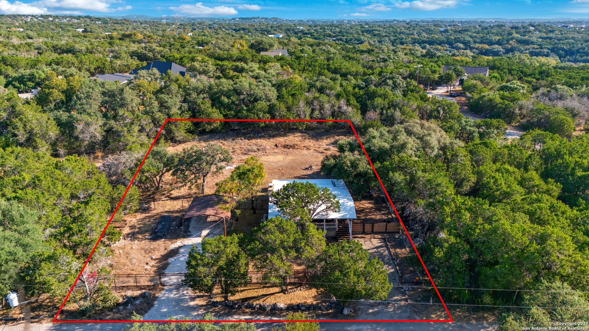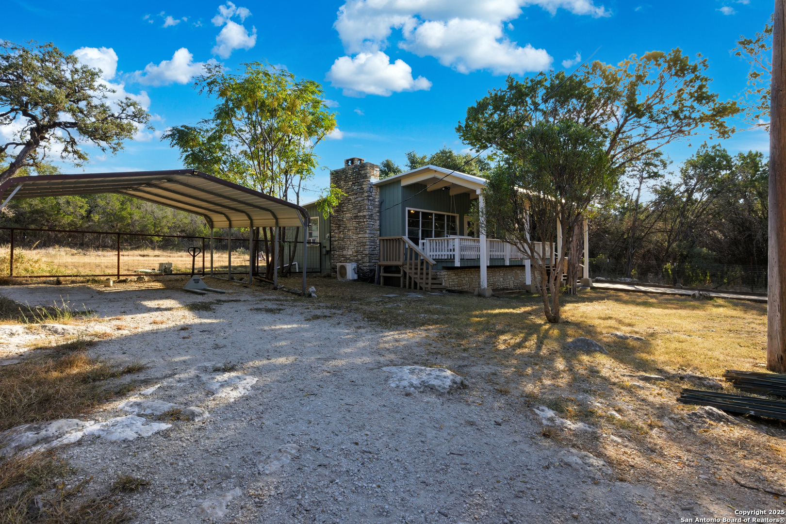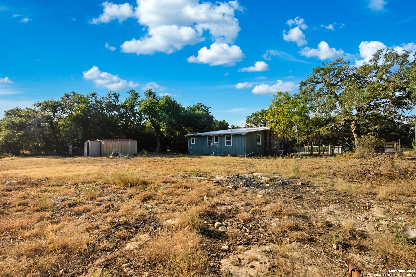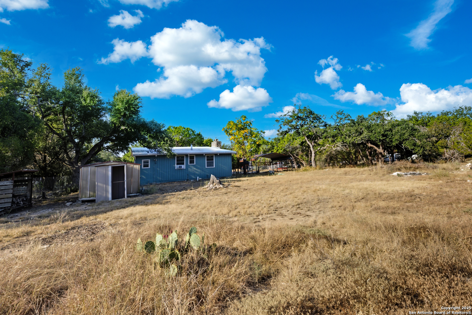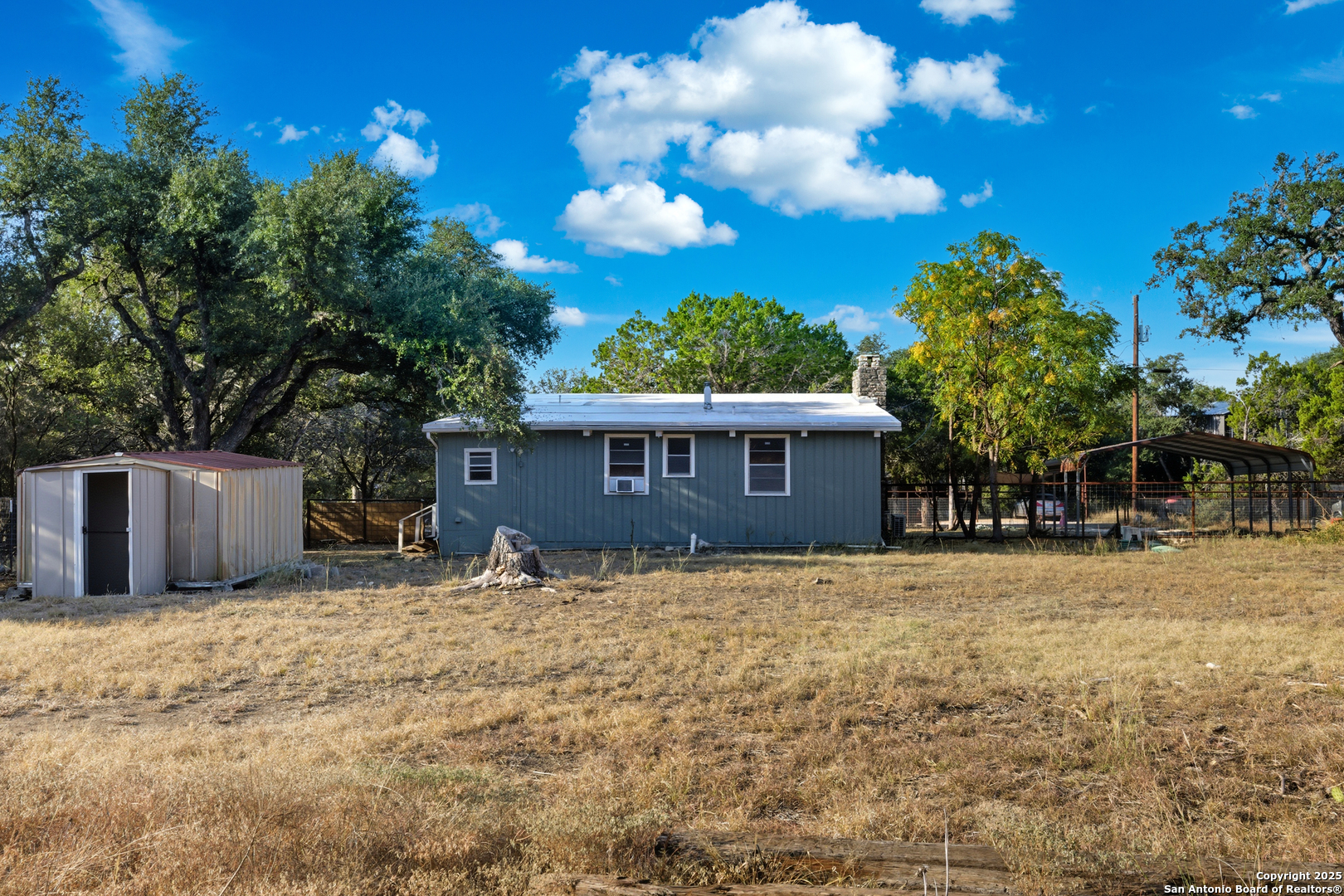 Escape to your own Hill Country retreat beneath the stars, surrounded by mature trees and peaceful privacy on TWO SPACIOUS LOTS in the desirable Cypress Cove community and no city taxes. This charming country cottage blends warmth and character with a tranquil setting just steps from the Guadalupe River. Enjoy a newly painted exterior with a pvc roof membrane that is waterproof and reflects heat with an inviting interior featuring beautiful hardwood floors, tongue-and-groove wood ceilings, and a cozy fireplace that sets the perfect tone. The kitchen offers freshly painted cabinetry, refrigerator included a breakfast bar, and an open-concept layout ideal for entertaining. The newly redone laundry room comes equipped with a washer and dryer, adding convenience to everyday living. The property is fully fenced front and back and includes a storage shed and a covered 2 car carport for added functionality. Located near Boat Ramp 11, you'll have effortless lake access for boating and recreation. Residents of Cypress Cove enjoy a variety of amenities including a private catch-and-release fishing pond, riverfront park, pool, clubhouse, and sports courts for tennis and basketball-all within a short walk where Rebecca Creek meets the Guadalupe River. Conveniently positioned near Highway 281 and IH-35, this home offers easy access to San Antonio, New Braunfels, and Austin, making it the perfect combination of country charm and city convenience. Move in, unwind, and start living the Hill Country lifestyle you've been dreaming of!