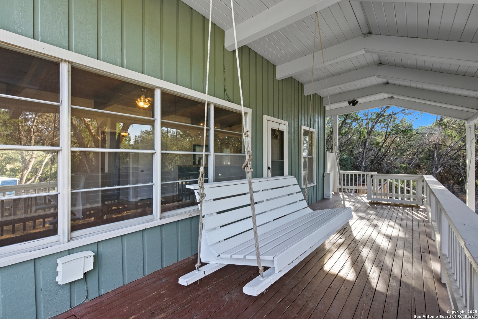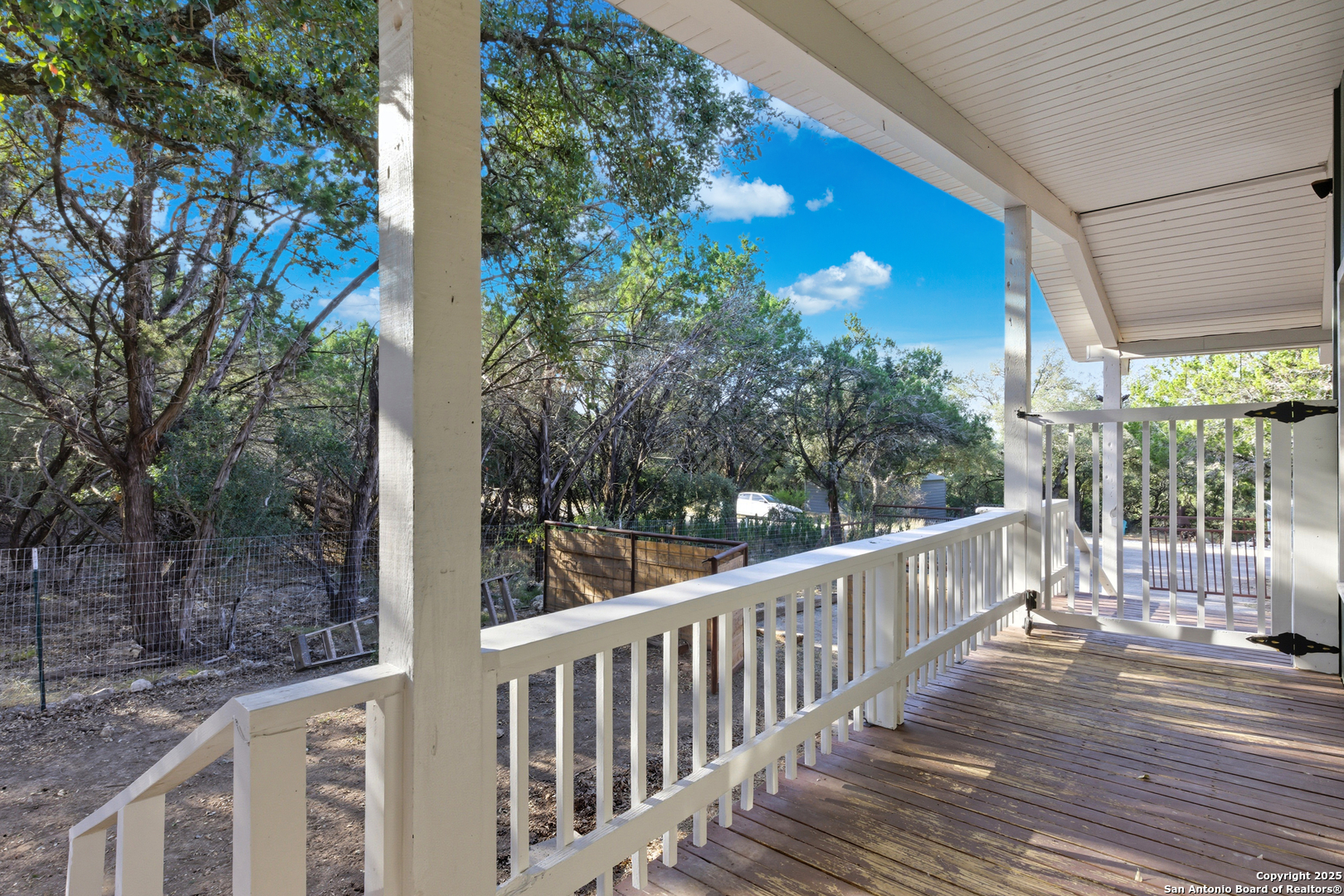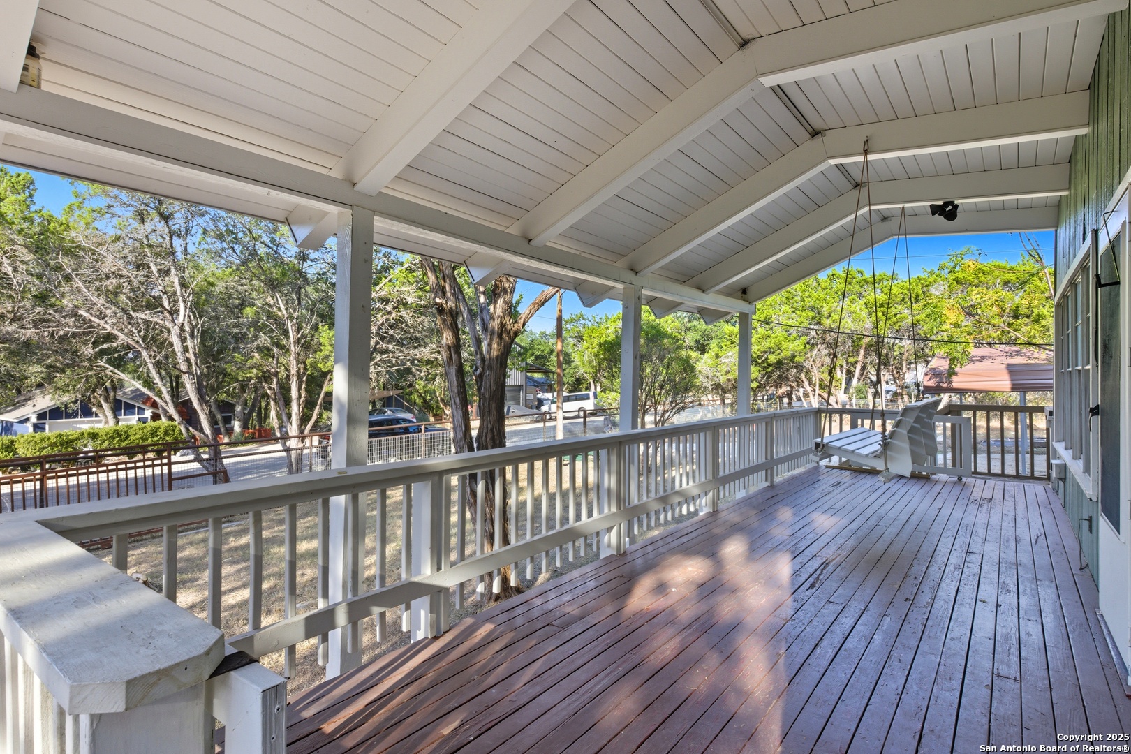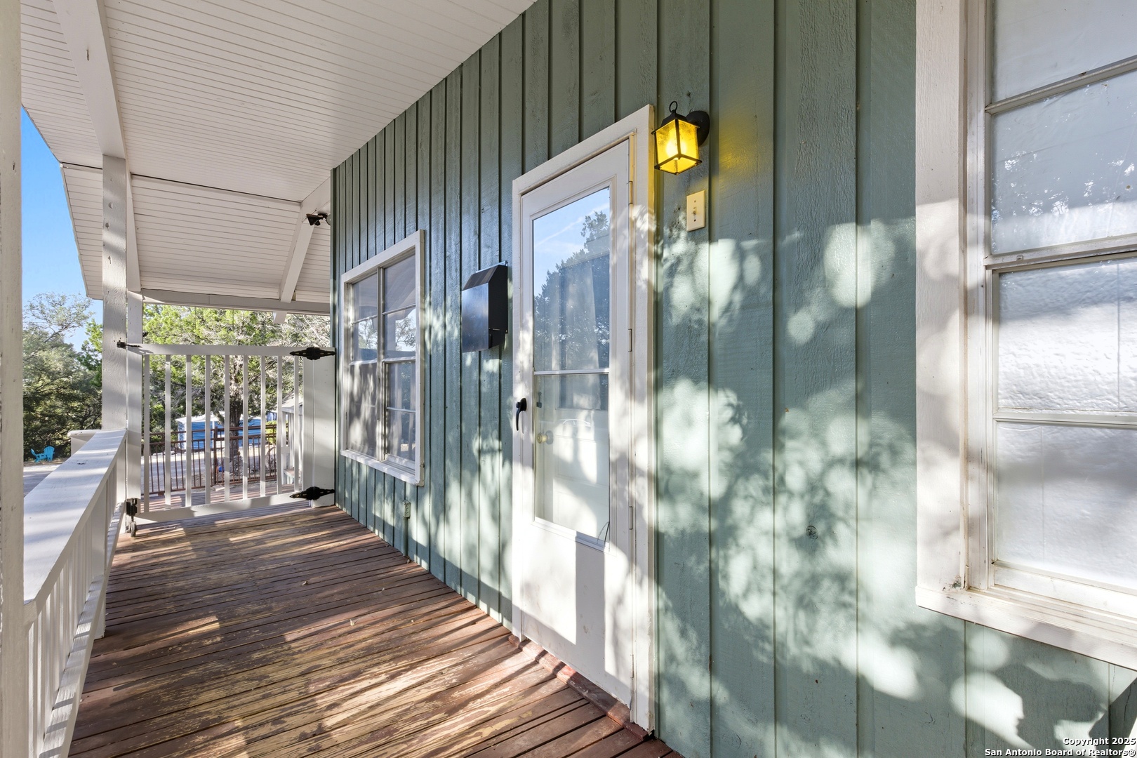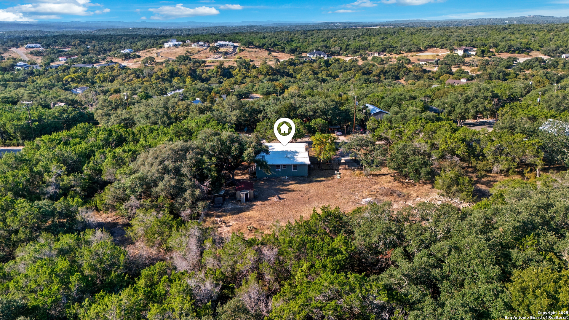 Escape to your own Hill Country retreat beneath the stars, surrounded by mature trees and peaceful privacy on TWO SPACIOUS LOTS in the desirable Cypress Cove community and no city taxes. This charming country cottage blends warmth and character with a tranquil setting just steps from the Guadalupe River. Enjoy a newly painted exterior with a pvc roof membrane that is waterproof and reflects heat with an inviting interior featuring beautiful hardwood floors, tongue-and-groove wood ceilings, and a cozy fireplace that sets the perfect tone. The kitchen offers freshly painted cabinetry, refrigerator included a breakfast bar, and an open-concept layout ideal for entertaining. The newly redone laundry room comes equipped with a washer and dryer, adding convenience to everyday living. The property is fully fenced front and back and includes a storage shed and a covered 2 car carport for added functionality. Located near Boat Ramp 11, you'll have effortless lake access for boating and recreation. Residents of Cypress Cove enjoy a variety of amenities including a private catch-and-release fishing pond, riverfront park, pool, clubhouse, and sports courts for tennis and basketball-all within a short walk where Rebecca Creek meets the Guadalupe River. Conveniently positioned near Highway 281 and IH-35, this home offers easy access to San Antonio, New Braunfels, and Austin, making it the perfect combination of country charm and city convenience. Move in, unwind, and start living the Hill Country lifestyle you've been dreaming of!