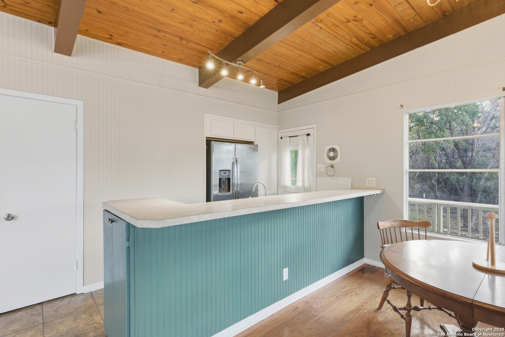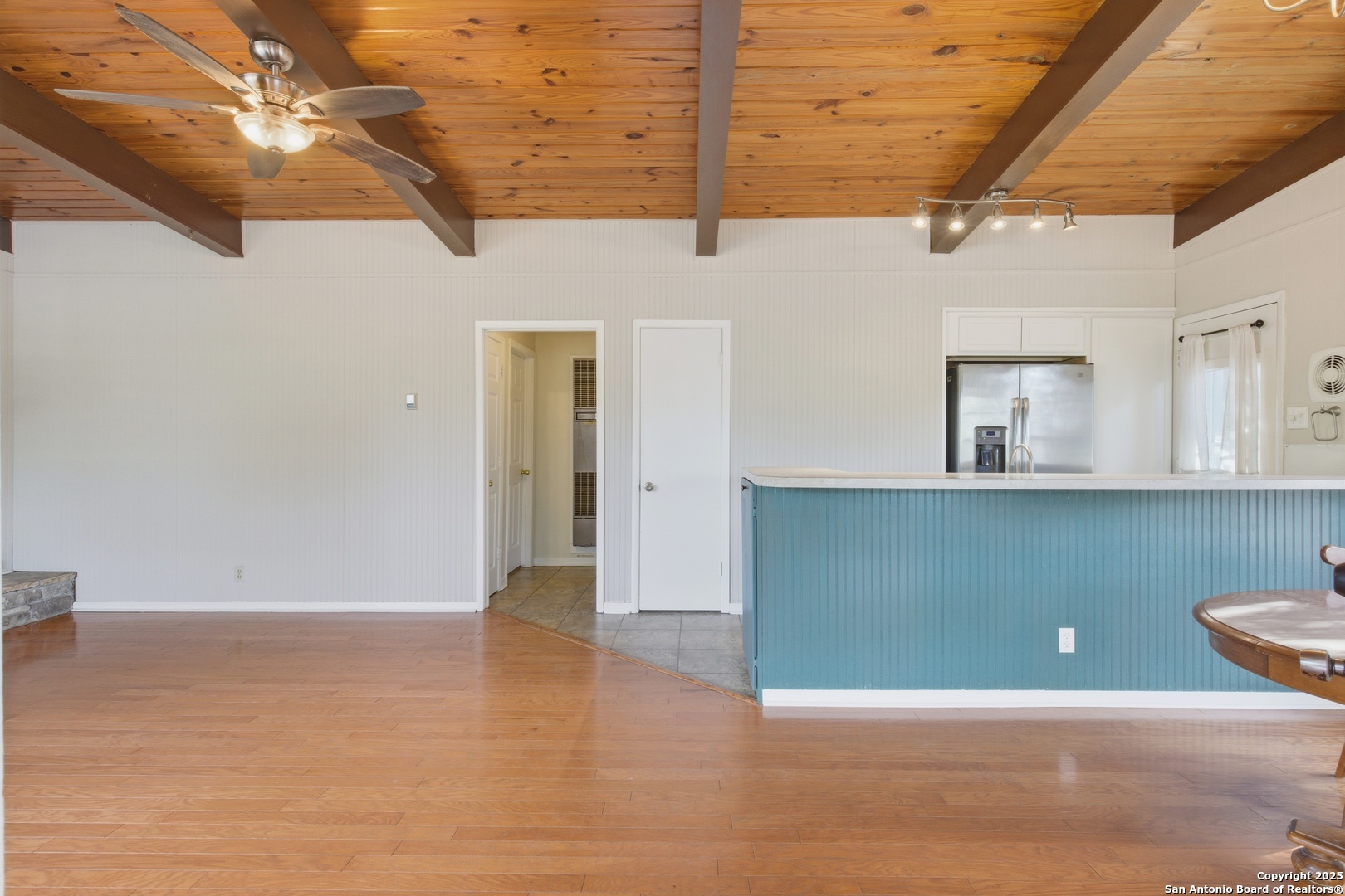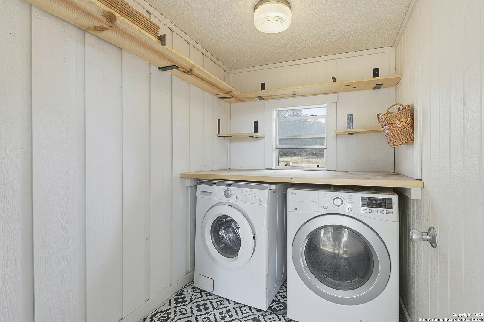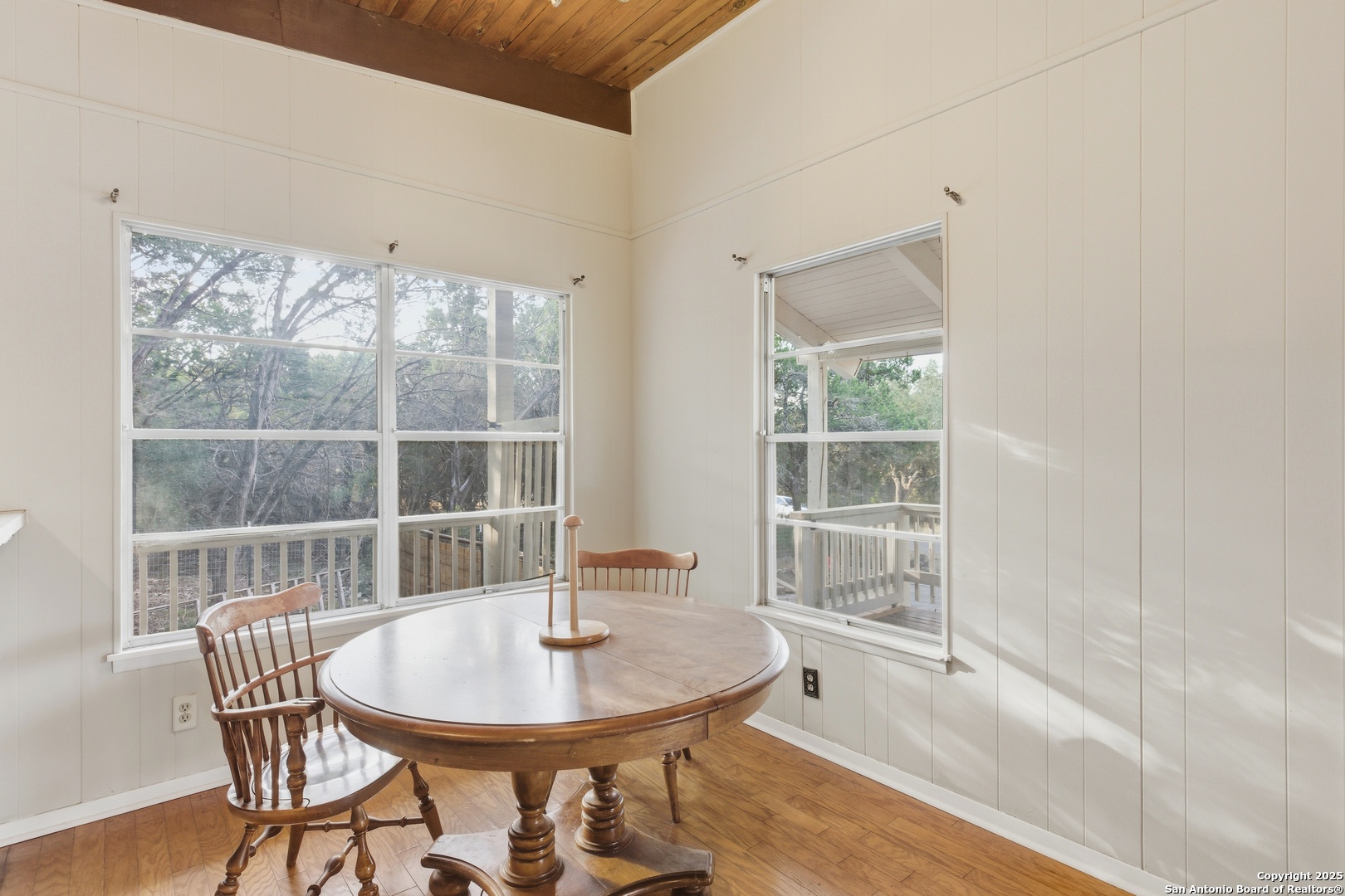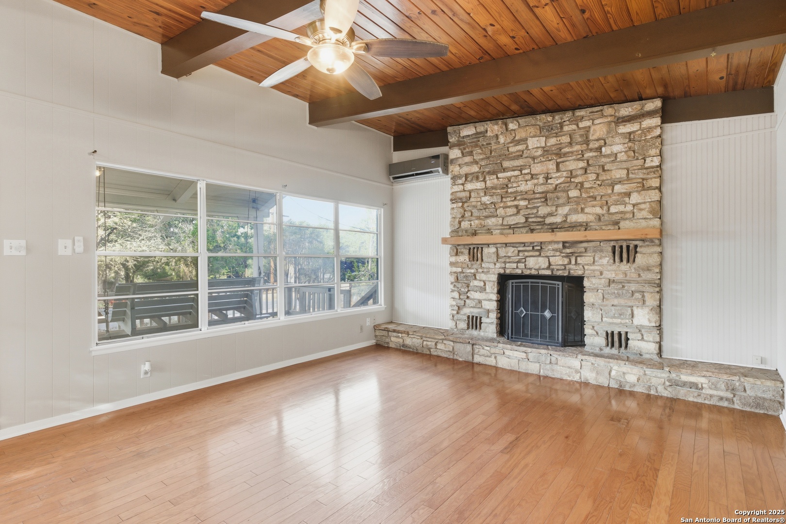 Escape to your own Hill Country retreat beneath the stars, surrounded by mature trees and peaceful privacy on TWO SPACIOUS LOTS in the desirable Cypress Cove community and no city taxes. This charming country cottage blends warmth and character with a tranquil setting just steps from the Guadalupe River. Enjoy a newly painted exterior with a pvc roof membrane that is waterproof and reflects heat with an inviting interior featuring beautiful hardwood floors, tongue-and-groove wood ceilings, and a cozy fireplace that sets the perfect tone. The kitchen offers freshly painted cabinetry, refrigerator included a breakfast bar, and an open-concept layout ideal for entertaining. The newly redone laundry room comes equipped with a washer and dryer, adding convenience to everyday living. The property is fully fenced front and back and includes a storage shed and a covered 2 car carport for added functionality. Located near Boat Ramp 11, you'll have effortless lake access for boating and recreation. Residents of Cypress Cove enjoy a variety of amenities including a private catch-and-release fishing pond, riverfront park, pool, clubhouse, and sports courts for tennis and basketball-all within a short walk where Rebecca Creek meets the Guadalupe River. Conveniently positioned near Highway 281 and IH-35, this home offers easy access to San Antonio, New Braunfels, and Austin, making it the perfect combination of country charm and city convenience. Move in, unwind, and start living the Hill Country lifestyle you've been dreaming of!