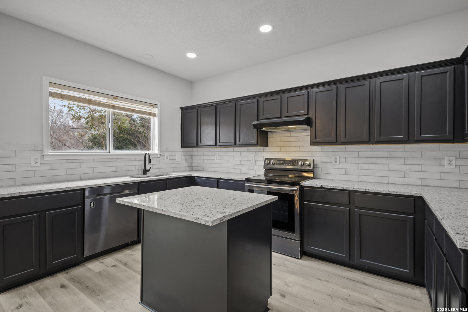 Welcome to 1134 Tetford, a beautifully refreshed two-story home offering 2,866 square feet of comfortable living in one of San Antonio's most desirable areas. From the moment you step inside, you're greeted by a bright entryway that opens to two first-floor living areas, providing flexible space for both formal gatherings and relaxed everyday living. Large windows fill the home with natural light, enhancing the warm and inviting atmosphere. At the heart of the home is the open-concept kitchen, freshly updated with granite countertops, painted cabinets, new flooring, and generous cabinet and counter space. The oversized island makes it ideal for casual dining and entertaining, while the layout flows seamlessly into the adjoining living and dining areas for an open, connected feel. Upstairs, the spacious primary suite offers a private retreat with an en-suite bath featuring a double vanity, separate walk-in shower and soaking tub, and a large walk-in closet. With four total bedrooms, there is plenty of room for family, guests, or a home office. A combined laundry and pantry area adds everyday convenience. The interior and exterior have been freshly painted, giving the home a clean, modern finish. Step outside to enjoy the extended back patio slab, perfect for weekend barbecues or relaxing evenings outdoors. The large backyard offers endless possibilities for play, gardening, or future customization. This move-in-ready home blends comfort, updates, and space in a location that truly stands out. Don't miss your opportunity to make it yours.