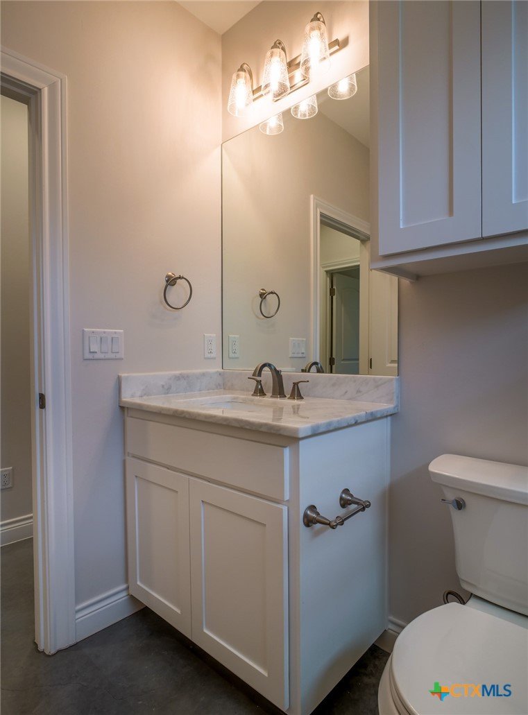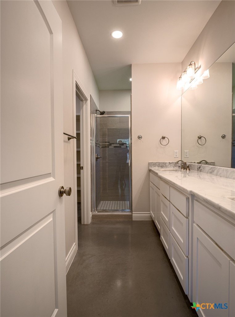 Welcome to this beautiful, well-loved stone home offering 3 bedrooms and 2.5 bathrooms in the heart of Granite Shoals. This thoughtfully designed property features polished concrete floors throughout, delivering both durability and modern style. The split bedroom floor plan provides privacy, while the open-concept living area is highlighted by high vaulted ceilings that create a bright and spacious feel. The island kitchen is perfect for entertaining and everyday living, complete with sleek stainless-steel appliances and ample workspace. The spacious primary suite offers a relaxing retreat with a walk-in shower and generous walk-in closet. Step outside to enjoy a large, fenced backyard, ideal for pets, gatherings, or simply unwinding. The covered back patio extends your living space and is perfect for enjoying the outdoors year-round. Located within walking distance to multiple POA parks with access to Lake LBJ, this home offers the best of lakeside living. Plus, you’re just a short drive to Marble Falls, where you’ll find a variety of shopping, dining, and entertainment options.Don’t miss this opportunity to own a stylish, move-in-ready home in a desirable and growing area!