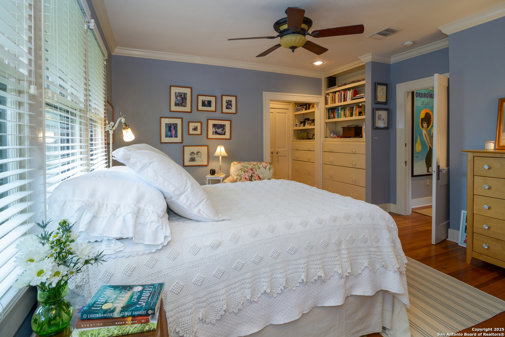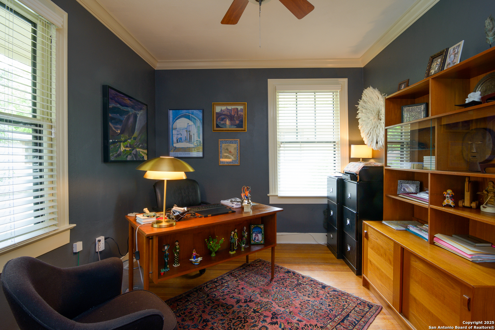 **Fully Furnished 1920s Cottage in Monte Vista Historic District** Located in one of San Antonio's most beloved neighborhoods, this charming home offers all the character of a century-old property with modern comforts throughout. The spacious floor plan features two comfortable bedrooms (one with a walk-in closet), a third room that serves as an office overlooking the garden, a bright sunroom, along with generous living and dining rooms with high ceilings. The renovated kitchen is fully equipped for gas cooking, and one bath even includes a classic claw-foot tub. Outside, enjoy the large front porch with a swing and ceiling fan or relax on the shaded back patio beneath pecan trees. Fully furnished and move-in ready, this home is perfect for a busy professional, a new arrival to San Antonio, or anyone needing a place while searching for their next home. The location offers unmatched convenience-just minutes from the Pearl, downtown, the River Walk, and Alamo Heights, with easy access to Hwy 281 and I-10. You'll also be within walking distance of Trinity University and San Antonio College, five minutes from Incarnate Word University, and less than 15 minutes from the Medical Center. Available for a 6-month minimum lease. Tenant pays all utilities. **NO PETS AND NO CORPORATE RELOCATION SERVICES, PLEASE.**