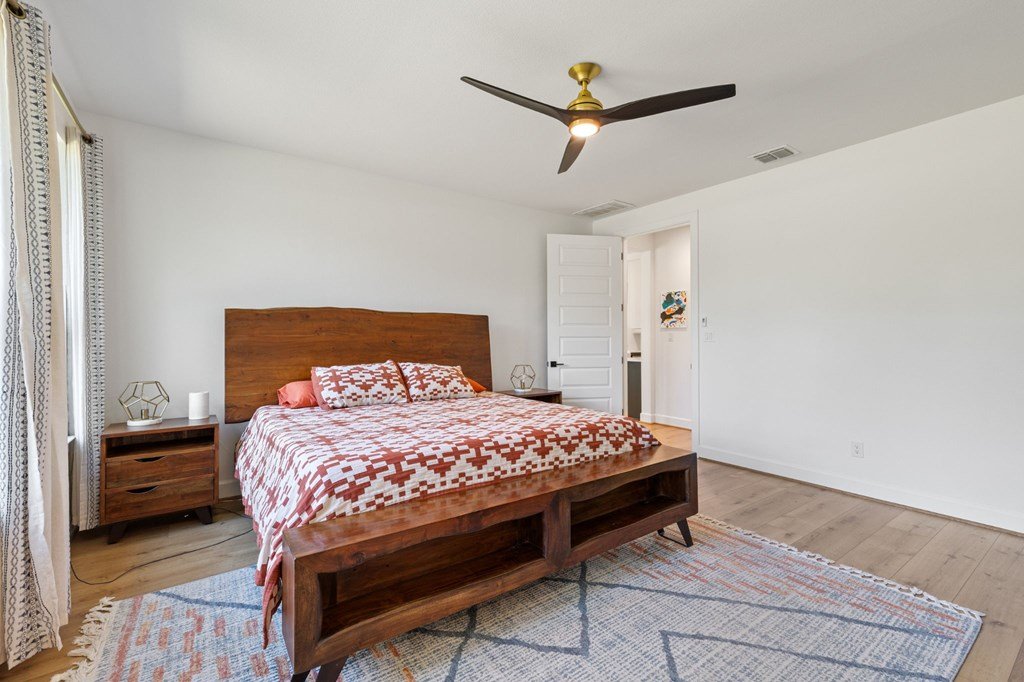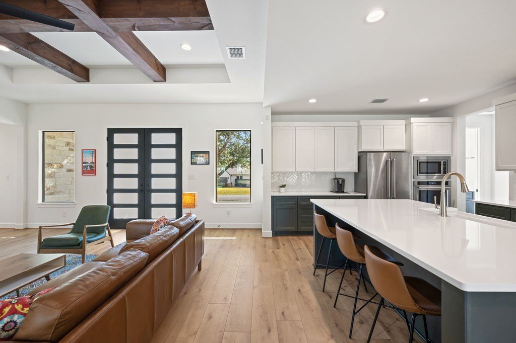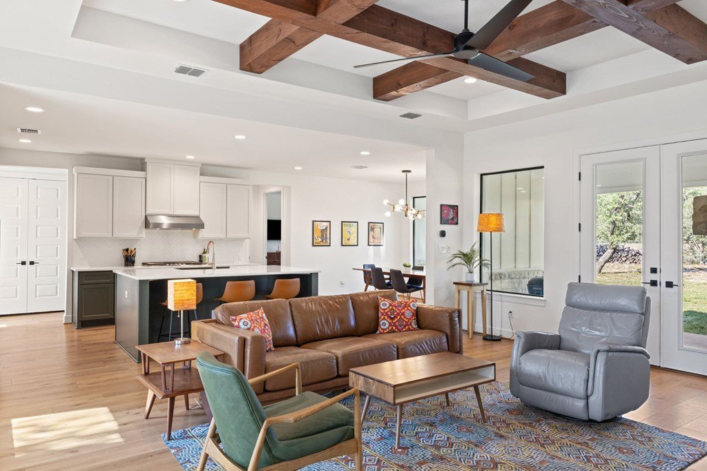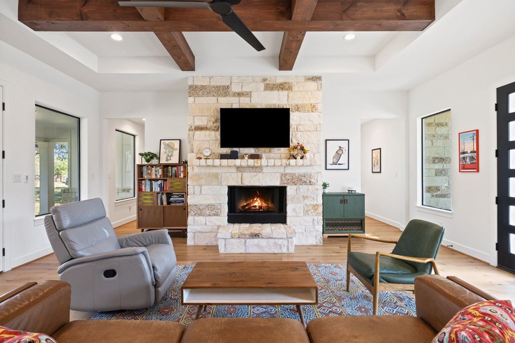 Stunning Custom Hill Country Home – Modern Design Meets Timeless Comfort This 2023 custom-built home perfectly blends clean, modern lines with warm, inviting finishes in the highly sought-after, established Oak Forest neighborhood. Just a short walk from downtown, this property offers the best of Hill Country living. Step inside to find soaring 8-foot doors, abundant natural light from black-framed windows, and an open-concept living space anchored by a stone wood-burning fireplace and decorative wood beams. Beautiful wood flooring runs throughout with no carpet, creating a clean, seamless flow from room to room. The kitchen is a showstopper with a farmhouse sink, white quartz countertops, a raised-height island, and soft-close custom cabinetry. Double front and back doors open the home to the outdoors, inviting natural light and fresh air inside. The private primary suite is on the opposite side of the home and features a spa-like bath with dual shower heads, a generous cabinet and storage space, and a custom-built walk-in closet. A soundproof office provides the ideal work-from-home space, while the oversized laundry room features a mud bench and generous storage. Outside, the home features a metal roof, gutters, a large two-car garage with an extended bay to accommodate a full-size truck, and a climate-controlled storage/workshop/craft room. The peaceful, low-traffic street and canopy of mature oak trees create a serene setting. Every detail was thoughtfully designed in this home—delivering modern luxury, privacy, and an unbeatable location in the heart of the Hill Country.