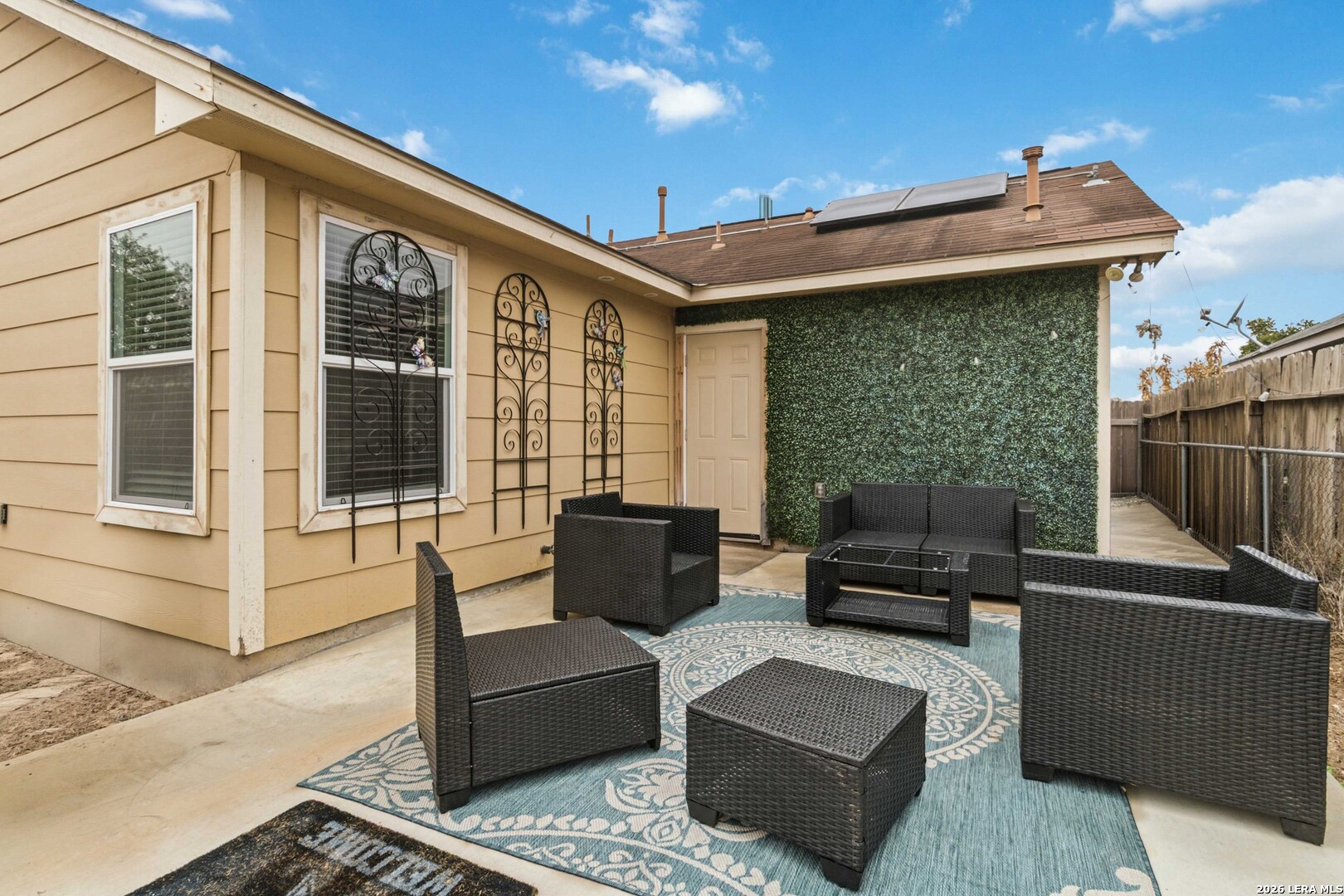 Beautifully, maintained one-story home offering comfort, charm, and easy living! No HOA! This move-in ready gem features a bright, open layout, spacious living area, and a thoughtfully designed floor plan perfect for everyday living. Pride of ownership shines throughout with meticulous upkeep and tasteful finishes. Enjoy a cozy backyard ideal for relaxing or entertaining. A perfect opportunity for first-time buyers, downsizers, or anyone seeking low-maintenance living! Energy-efficient living with owned solar panels included in this cozy home! Enjoy significantly reduced utility bills and long-term savings while embracing sustainable living. A smart investment that adds value and efficiency to this beautiful home. Conveniently located to a park, highly regarded area schools, Palo Alto College and Texas A&M University San Antonio. Easy access to education as well as shopping mall, Toyota Plant and everyday conveniences. A Plus! New roof complete March 2026.
