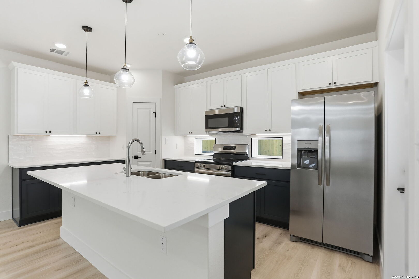 Charming Texas Hill Country-style townhome featuring the popular Cypress floor plan with 1554 sq ft, 2 bedrooms, and 2.5 baths. Downstairs and upstairs primary suites. This beautiful home offers quartz countertops in the kitchen and baths, stainless steel appliances, high ceilings throughout, LVP flooring in the living spaces, a covered back porch, and an attached two-car carport. Located just minutes from downtown Boerne in the desirable Herff Village Townhomes community. Other notable features include: 2X6 exterior wall framing with foam insulation, Low E insulated glass windows, 42 Inch cabinets with hardware, a standing seam metal roof, fire sprinkler system, lever style door hardware, Delta plumbing fixtures, quartz countertops, under cabinet lighting in kitchen with tile backsplash, double racked closet space, tile surround showers with recessed niche, high efficiency Carrier HVAC unit and a privacy fence. Ideal as a primary residence, second home, or investment property. Enjoy close proximity to Main Street, the Cibolo Nature Center, Boerne City Park, and easy access to I-10.