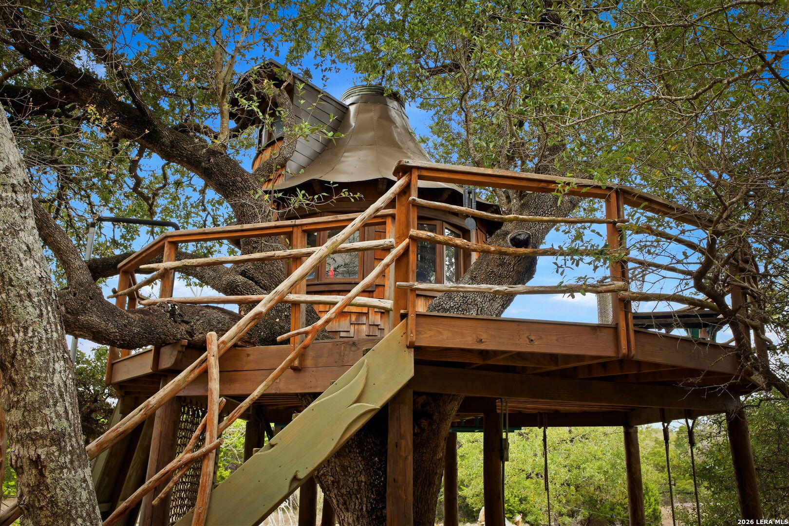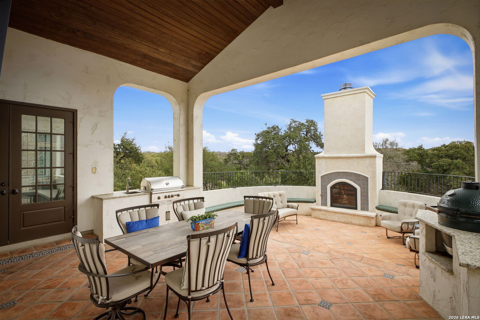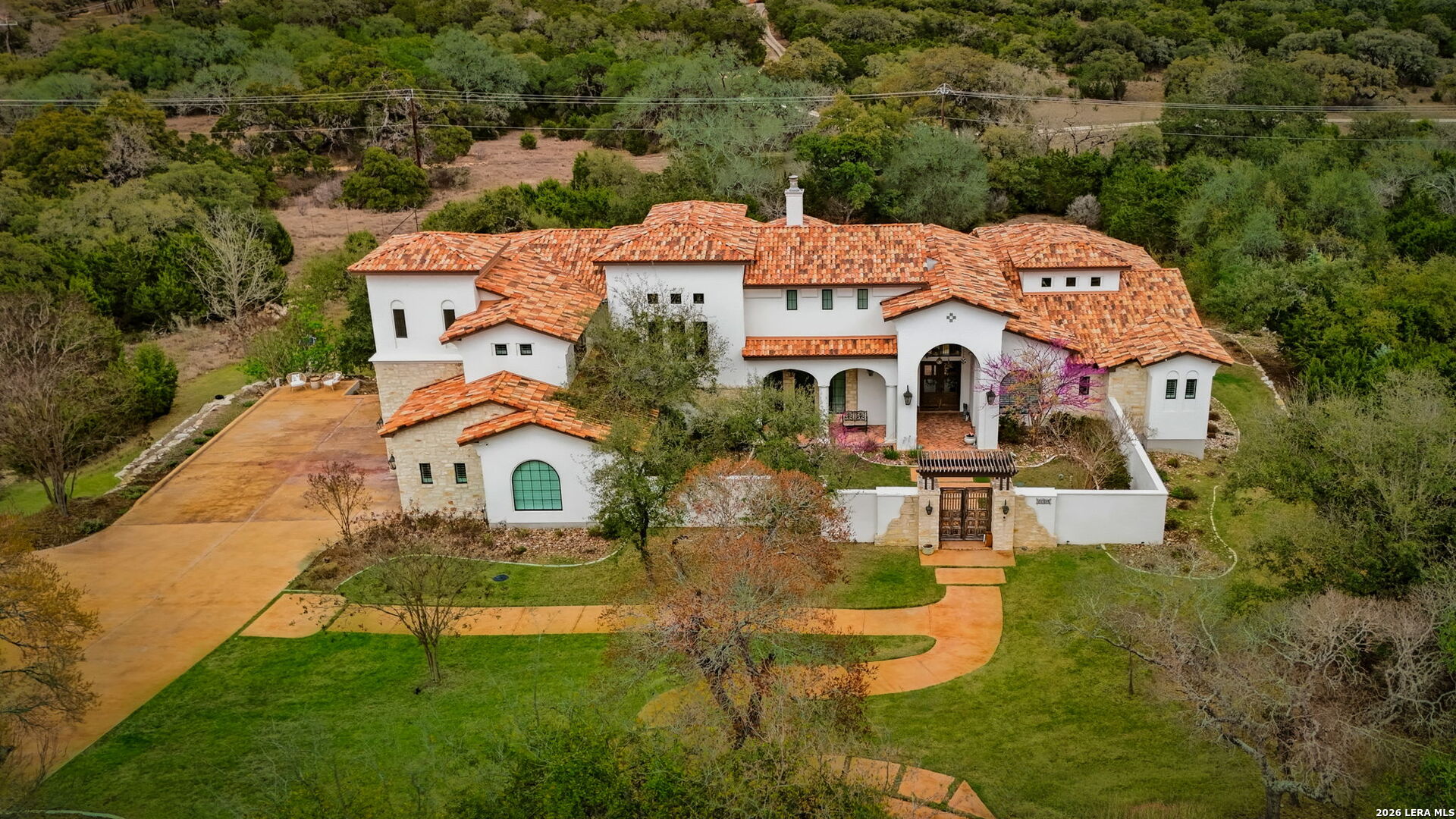Welcome to an extraordinary estate in Anaqua Springs Ranch, one of Boerne's most exclusive guard-gated communities-where privacy, sophistication, and the beauty of the Texas Hill Country converge. Set on over two pristine acres, this exceptional residence reflects refined craftsmanship and intentional design at every turn. The main home offers five spacious bedrooms and six luxurious bathrooms, complemented by a private guest suite with its own bedroom and bath, ideal for extended stays, multigenerational living, or live-in support. The main level is designed for both everyday comfort and elevated entertaining, anchored by a serene primary suite retreat featuring a private sitting area with panoramic Hill Country views, along with an additional guest bedroom offering a generous ensuite bath. A formal dining room, expansive family room, and inviting breakfast area flow seamlessly into the chef's kitchen, appointed with high-end European appliances. A fully equipped secondary prep kitchen enhances functionality-perfect for private chefs or hosting at scale. A curated wine cellar, oversized pantry, and expansive utility spaces further elevate the home's livability. Upstairs, a spacious media room and versatile flex space provide endless possibilities-whether a private gym, game room, or additional lounge. Three additional bedrooms, each with ensuite baths, ensure comfort and privacy for family and guests. Outdoors, the estate transforms into a private resort-style retreat. A covered patio with fireplace overlooks a sparkling pool and sweeping Hill Country views, while thoughtfully curated amenities-including a custom treehouse, children's mud kitchen, and greenhouse-offer a rare blend of luxury and lifestyle. A long, private driveway creates a grand sense of arrival and provides ample parking for residents and guests alike. This is a rare opportunity to own a legacy property in one of the Hill Country's most prestigious communities-where luxury, lifestyle, and location align.