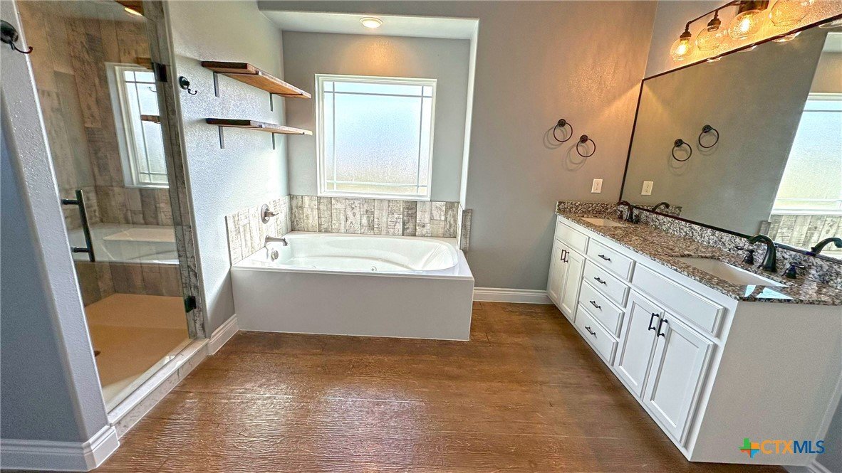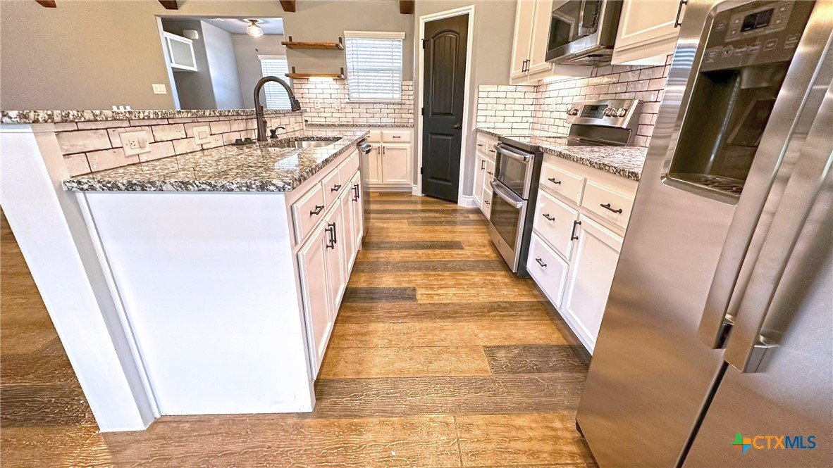 This spacious 4 bedroom 2 and a half bath home sits on 1.8 acres right outside of Copperas Cove city limits. No city taxes!! As you enter this home the open floor plan is nothing but inviting. The kitchen has gorgeous granite countertops with plenty of cabinet space. The center island is huge and can be used as an eating area or extra counter space. The living room has a vaulted ceiling with beams, giving this home a country feel. The spacious master bedroom with a door leading to the back patio comes with a gorgeous master bathroom with a walk-in shower and separate jetted tub. The large walk-in closet comes with plenty of space for two. The rest of the home is a must-see, the home comes with large windows that provide lots of natural light! Sitting on your back porch you will experience the most beautiful sunset imaginable.